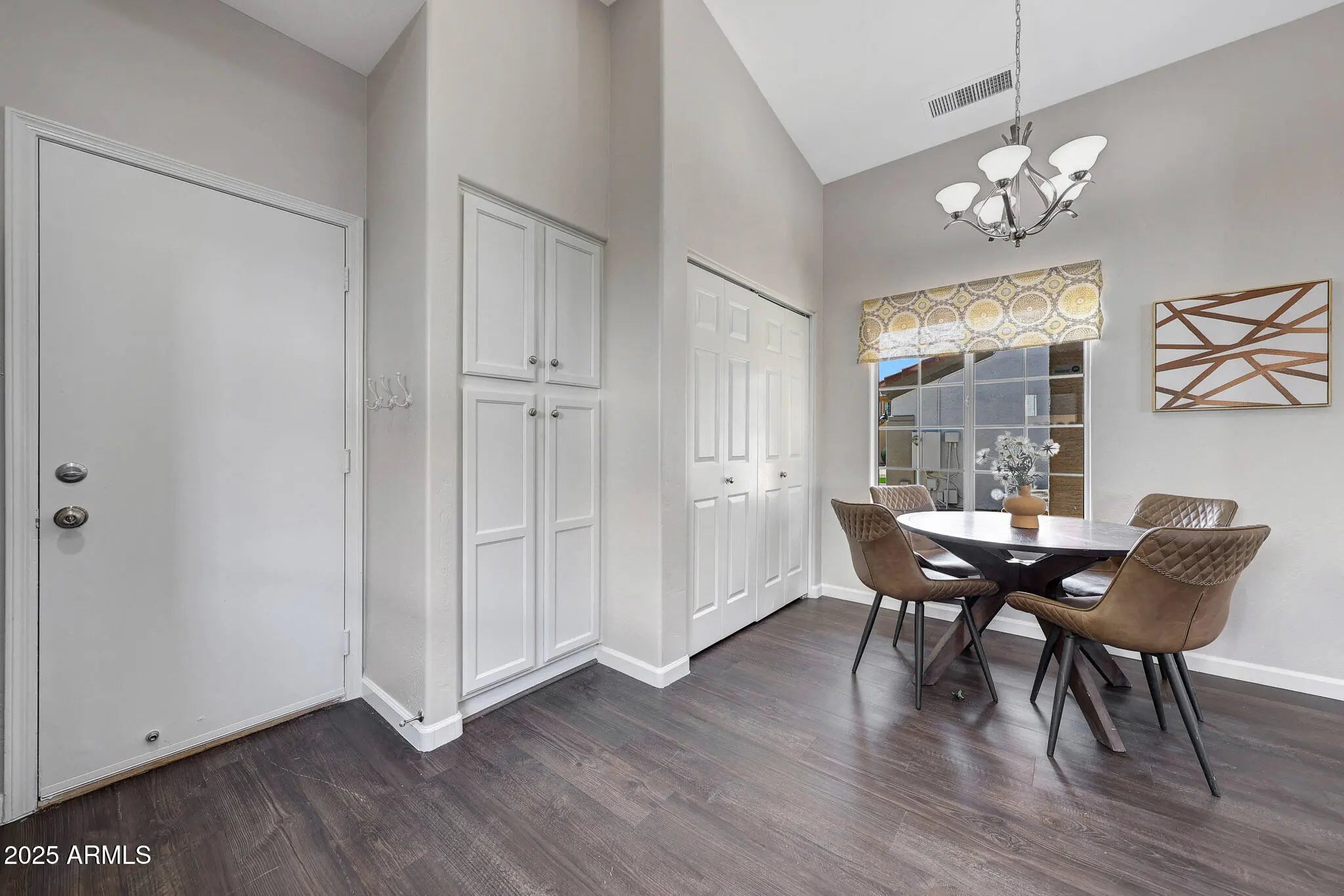 One of the lowest priced homes in the highly desirable Tatum Ranch community! This is your opportunity to get into one of Cave Creek's most sought-after neighborhoods at an affordable price. This lovely home is move-in ready with wood laminate flooring throughout - not a shred of carpet, fresh interior paint from top to bottom, and professionally refinished cabinetry. The vaulted ceilings provide for a spacious feel. One of the spare bedrooms is split from the others, making it perfect for an office or guest bedroom. The primary suite has an Arcadia door with direct access to the backyard, and the primary closet has custom built-in shelving, drawers, and hanging rods to neatly organize your wardrobe. Newer AC unit for peace of mind. Low maintenance front and backyard with pavers and turf in the back. This home is far enough from the hustle and bustle of the city but still within close proximity to anywhere you need to go, including shopping and dining options nearby to enjoy. Tons of scenic hiking trails and a public golf course nearby. Top-rated schools nearby too. Come take a look and you will fall in love with this gorgeous home and community!