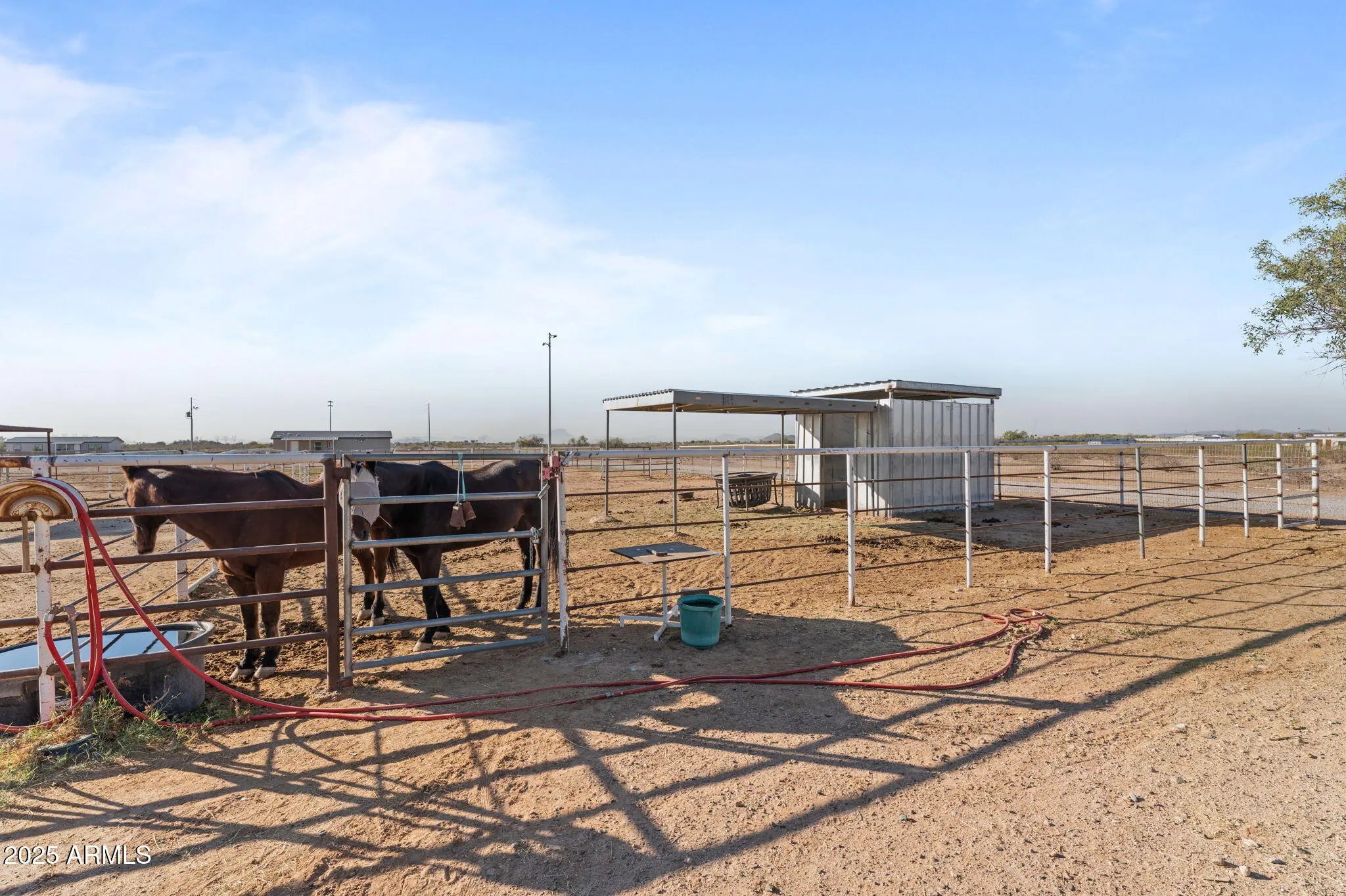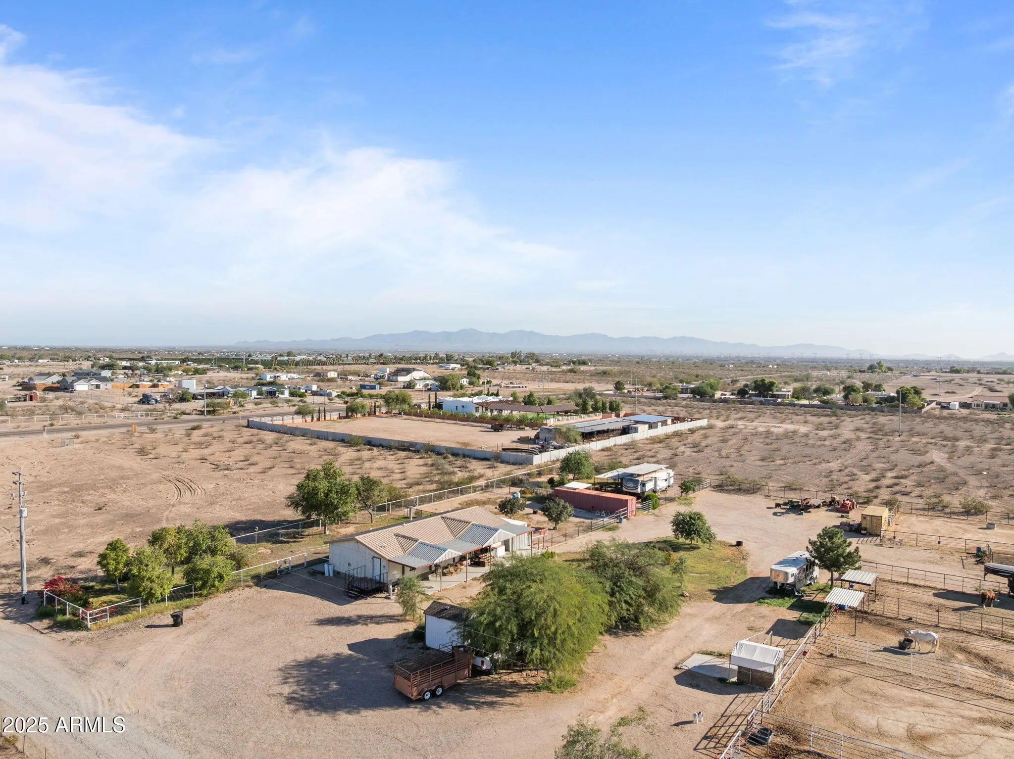 Horse property!!! Welcome to your own slice of Arizona ranch living! Riding Arena!!! home sits on 3 spacious acres and is full of Western charm, warm natural tones, and thoughtful features throughout. Inside you'll find a cozy, welcoming layout with a classic ranch-style aesthetic. The primary suite includes a large soaking tub, walk-in shower, and plenty of room to unwind after long days on the property. Step outside and enjoy everything a true horse property should offer. The acreage is fully fenced with pipe and no-climb wire and includes a well-designed arena, covered corrals, and multiple Connex storage containers. A covered patio offers shade and views, while mature shade trees and a patch of green lawn create a peaceful setting. Additional amenities include an RV carport extra storage options, Fireplace, Dog Run, a durable metal roof, 2 septic tanks, and a private well. As a bonus, this property comes with a beautiful 5th wheel RV, complete with its own washer and dryer and full RV hookups perfect for guests, extended stays, or rental income potential. The RV also has it's own fenced area. This Tonopah gem has everything you need for comfortable country living, equestrian convenience, and plenty of room to grow. Don't miss the chance to make it yours!