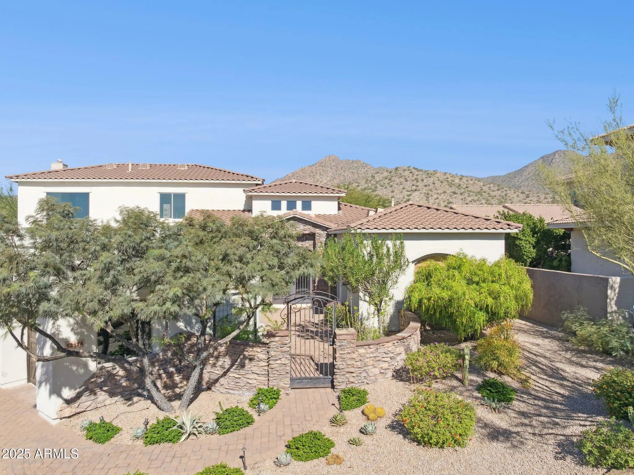 A Neighborhood Gem with a FIRST FLOOR PRIMARY SUITE! Three bedrooms & 3.5 baths on the 1st level, in addition, a formal LR/DR & spacious kitchen open to family room with gas fireplace. The kitchen shines w/ SS appliances, an island with prep sink, double ovens, wine/coffee bar, an oversized pantry closet, breakfast bar & eat-in dining area. The spacious primary suite with luxurious ensuite with dual sinks, a dedicated vanity, jetted tub & a separate shower. On the second level, you will find a spacious loft with breathtaking mountain views & sliding glass doors that lead to a private deck & two bedrooms with a shared bathroom. A backyard paradise awaits with a heated Pebble Tec pool/spa, putting green, & covered patio, all framed by stunning mountain views. All of this within a mile of of top-rated schools (including BASIS), nearby parks, Mayo Clinic and popular hiking trails like Lost Dog & Sunrise.