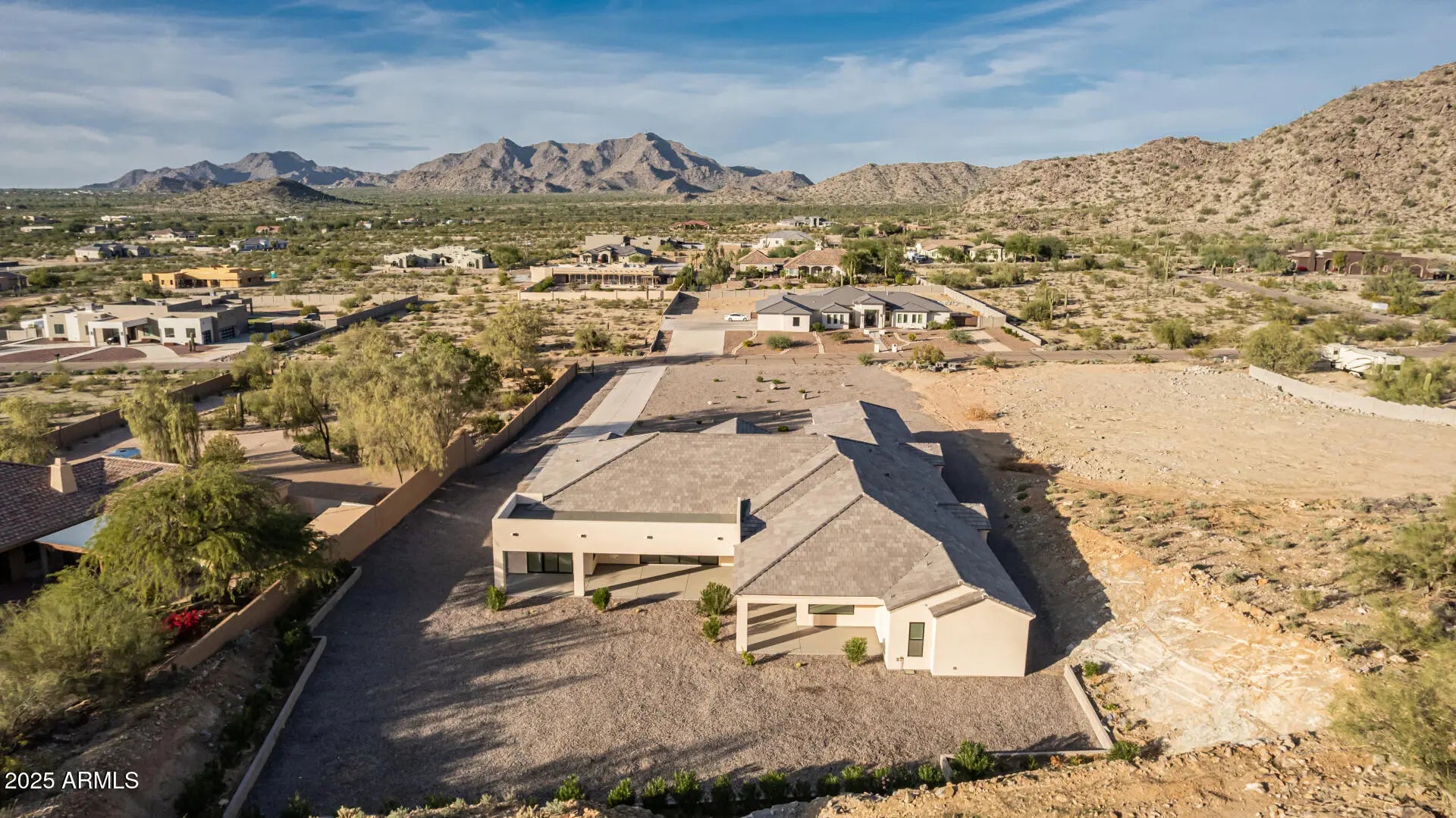 Your DREAM home is here! This stunning estate is situated in the Casa Grande Mountains within La Montanas, showcasing exceptional mountain and city views. Providing 6 beds, 5.5 baths, a low-care landscape, and an oversized 4-car garage with a private long driveway for ample parking & convenience. The interior exudes elegance with high ceilings, stylish light fixtures, a neutral palette, bountiful natural light, and sleek tile flooring throughout. You'll love the formal dining room! The spacious great room and separate family room are each paired with multi-sliding doors merging the inside & outside activities. The gourmet kitchen boasts high-end SS appliances, wine cooler, quartz counters, a plethora of cabinetry, a walk-in pantry, see-through cupboards, and a huge island w/breakfast bar. The 6th bedroom, with a double-door entry, can be an office as well. Sizable laundry room with a sink & cabinetry. The backyard, with a covered patio, offers plenty of room to create your own oasis! Picture your pool framed by desert mountains and native cacti, offering a breathtaking natural retreat. The home enjoys an exclusive & secluded setting, carved into the rocky mountainside to create a peaceful, nature-inspired sanctuary. What a RARE find! Don't miss this opportunity!