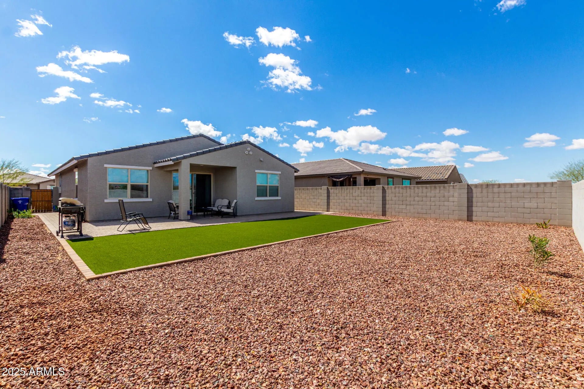 Welcome home! From the moment you pull up, you'll feel that this is where you belong. It's a TRUE move-in ready residence designed for effortless Arizona living. Perfect for full time or part time residents. Step inside and be greeted by sophisticated design and attention to detail; high 9-foot ceilings, upgraded light fixtures, tasteful accent walls, window coverings, all complemented by gorgeous accent painted 8-foot doors. The great room features an open concept kitchen with a large, cozy island-perfect for gathering or entertaining. Embrace the Arizona lifestyle outside where you can relax on the extensive paver patio, enjoy the low maintenance artificial turf, irrigation, plants and ground cover already in place and relax, and take in the mountain views over your back fence. The Desert Oasis subdivision provides residents with a collection of master planned community amenities for active desert living and family enjoyment. Check out the community swimming pool with covered ramada, restrooms, outdoor showers, tables, chairs and loungers. It also features multiple neighborhood parks, greenbelts, a children's playground and several walking paths. Along with that, great access to Loop 303 and then hop on the I-10 or the I-17 to get most anywhere. Lots of local shopping and dining destinations to choose from as well. Check it out soon.