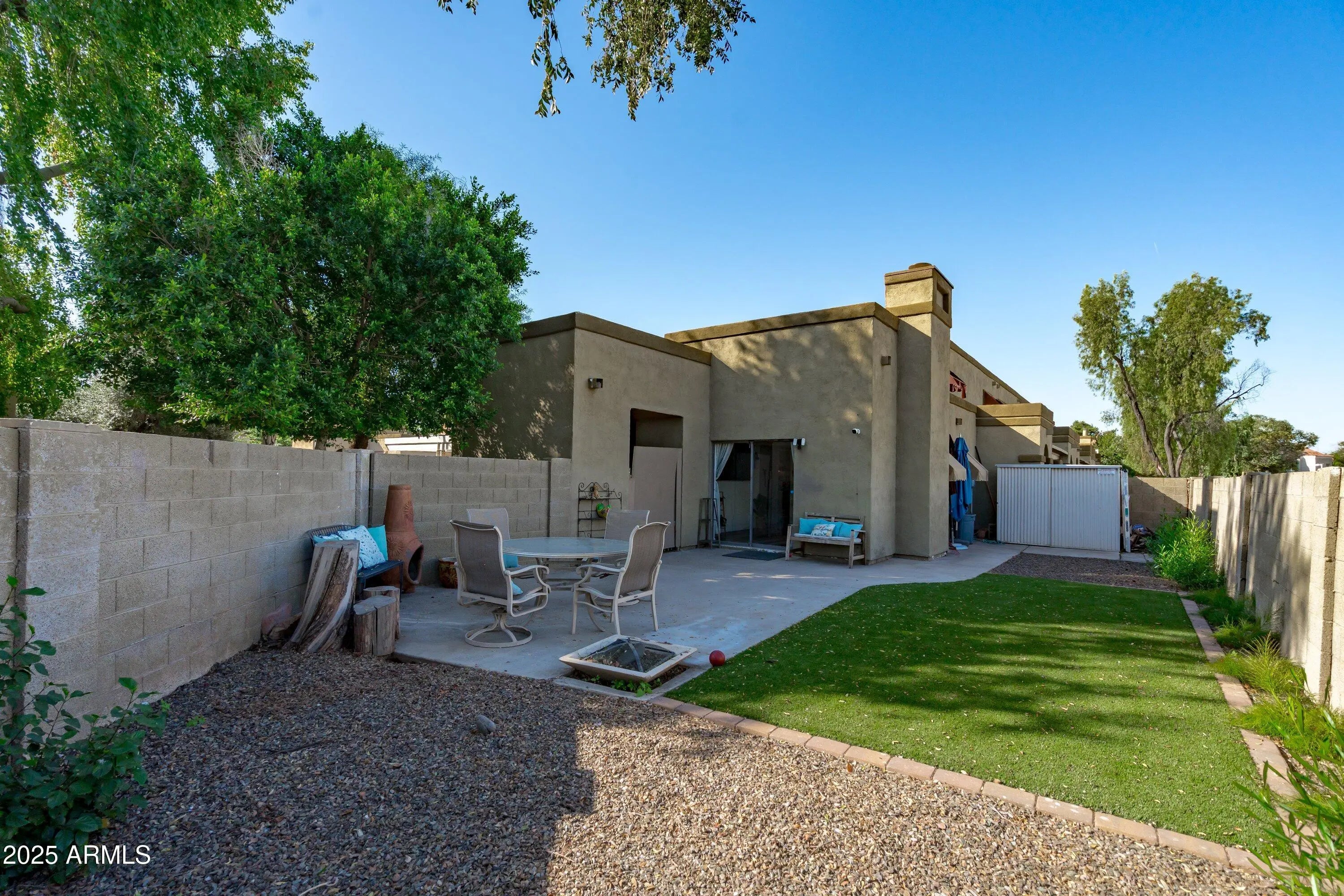Charming and private one-level 2BR/2BA end-unit townhome in a desirable Tempe Spanish Colonial community near freeways, ASU, shopping, dining, and entertainment. This well-maintained home features newer flooring, fresh paint throughout, a newer AC unit, new water heater, new fans, and updated bathroom vanities. The spacious great room offers a wood-burning fireplace and opens to a fenced patio plus a large wrap-around backyard with new artificial turf. The functional kitchen includes a pass-through, and the primary suite has its own bath. Community amenities include a pool and two parking spaces (one covered). HOA covers water, sewer, garbage, pool, roof, and street/parking maintenance. A fantastic opportunity to enjoy low-maintenance living in a prime Tempe location.