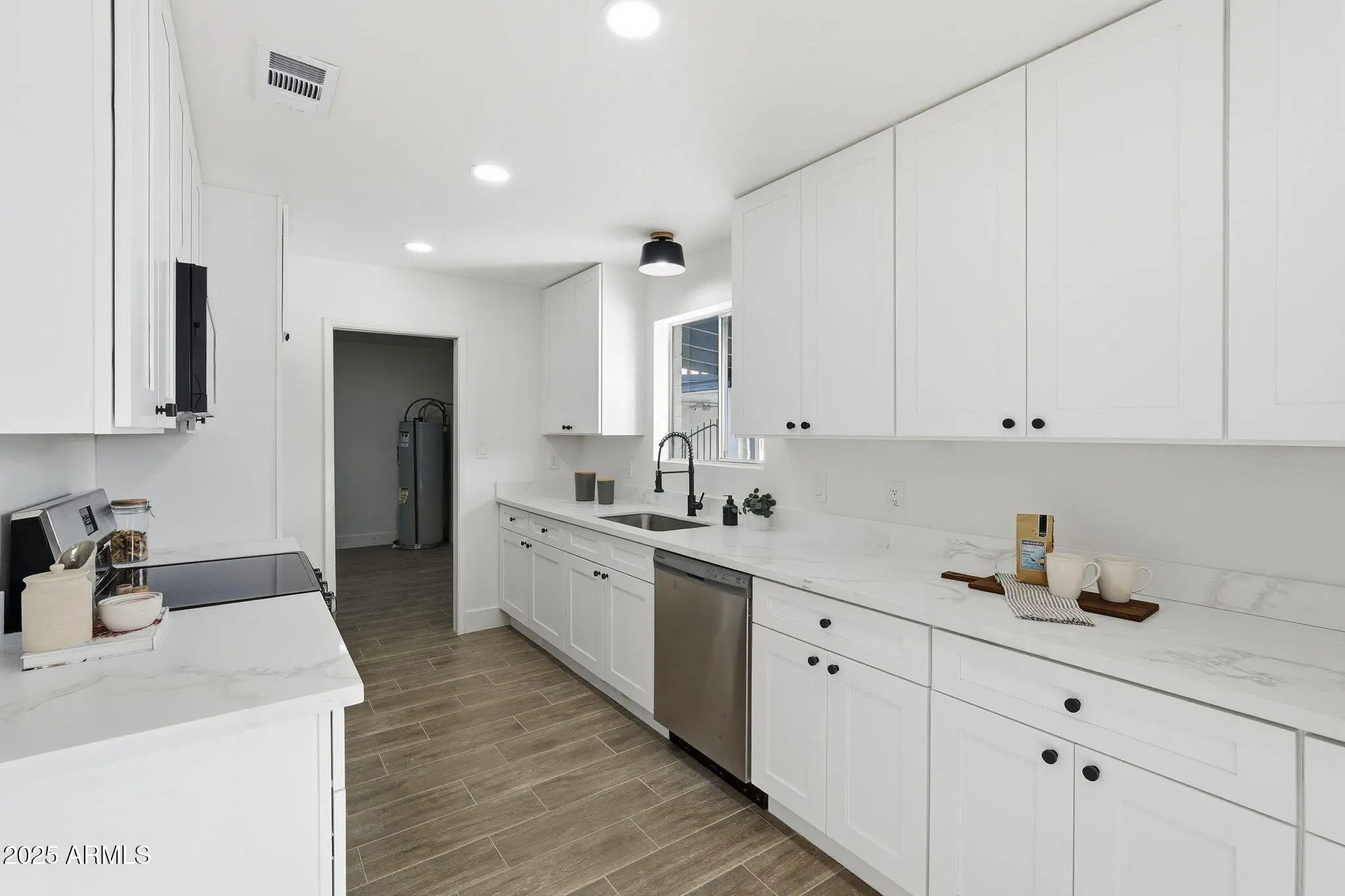 Welcome to this updated 3 bedroom, 2 bath home in Chandler, AZ w/ NEW ROOF!! Fresh paint inside & out creates a crisp, inviting feel, while new wood look tile flooring flows seamlessly through the main living areas. The bright great room is highlighted by a large arched window that fills the space w/ natural light. The updated kitchen is a true standout, featuring custom shaker cabinetry, a stylish tiled backsplash, quartz countertops, & stainless steel appliances. All three bedrooms include new carpet for added warmth & comfort. Retreat to the primary suite, complete w/ a refinished tub/shower surround & a new vanity with a quartz countertop & modern finishes. Step outside to your private backyard oasis, where a sparkling, freshly resurfaced pool awaits.