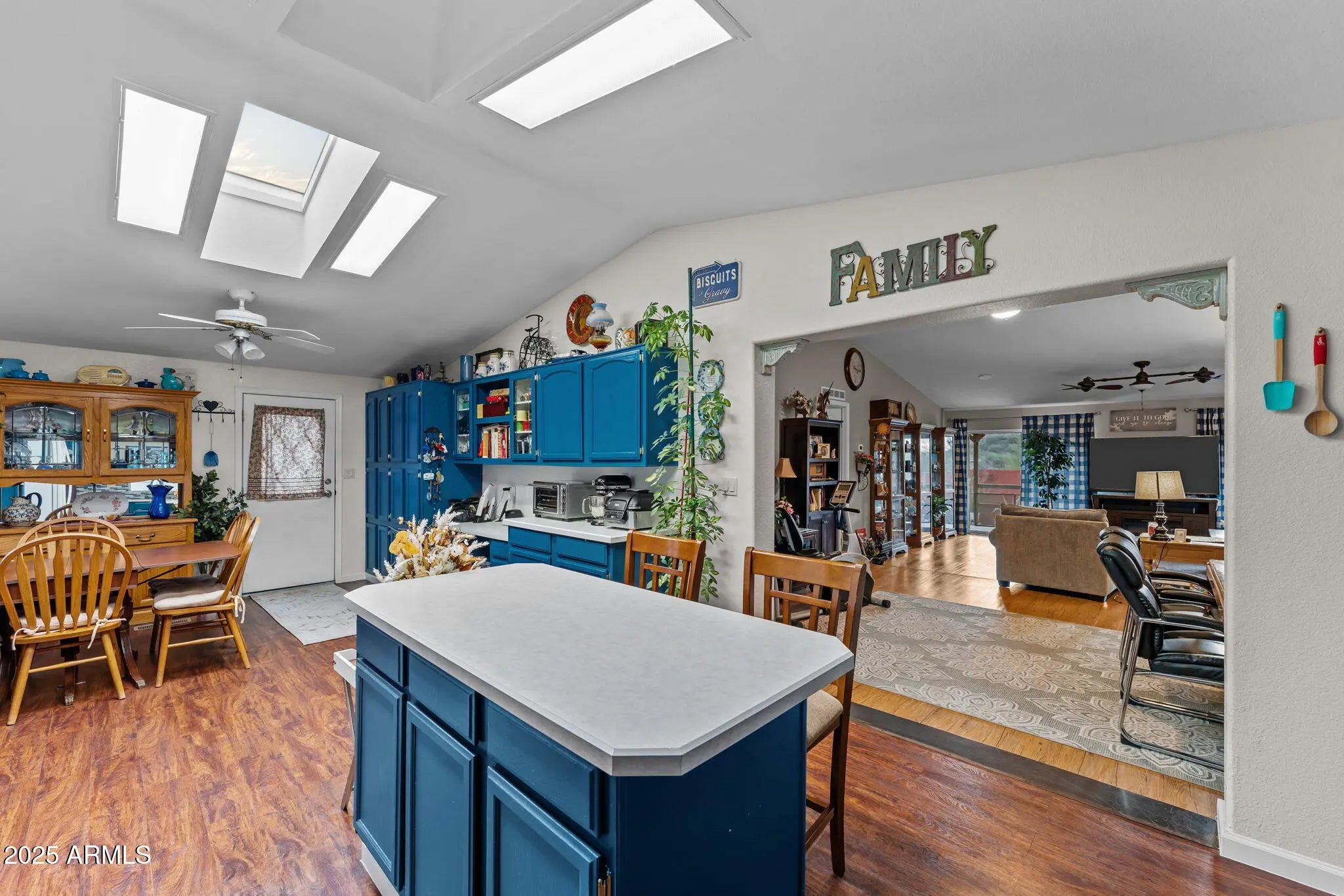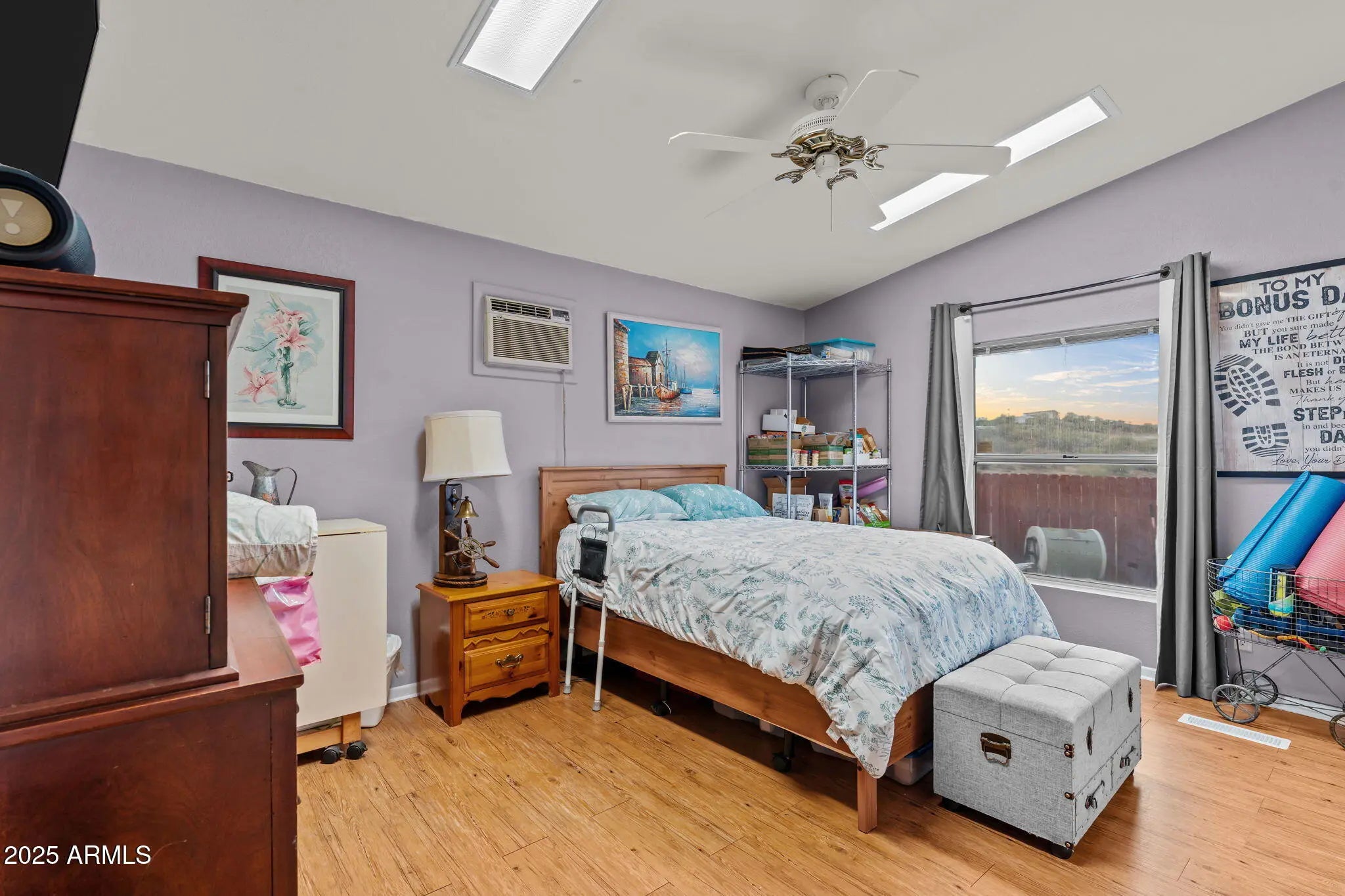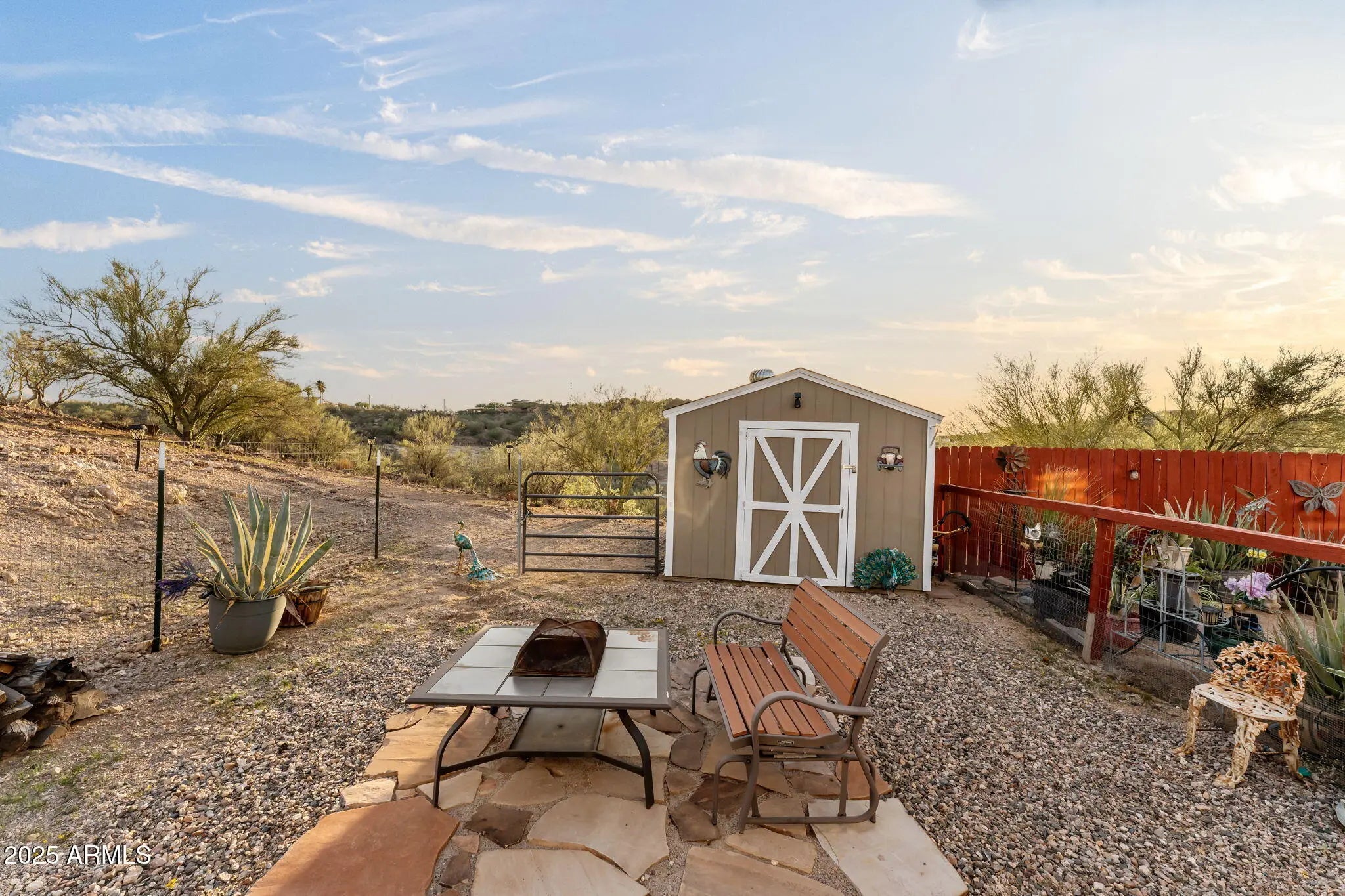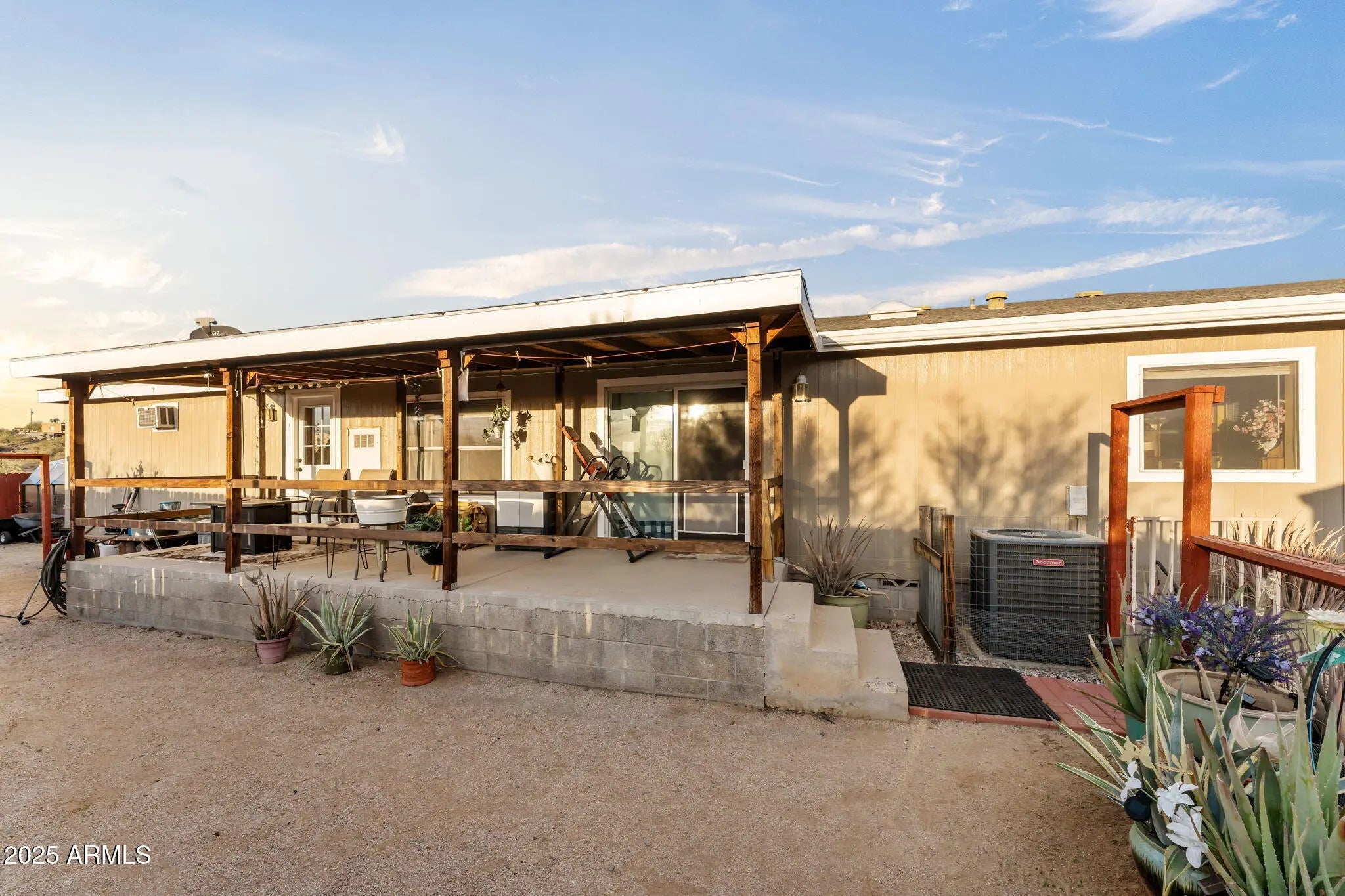 Welcome to this warm and inviting 2002 sq ft home set on 1.6 peaceful acres in the heart of Wickenburg. Bring your horses and saddle up. This property, blends comfort, charm, and wide-open desert living. Step inside to a bright, cheerful interior featuring vaulted ceilings, skylights, and laminate wood-style floors that flow throughout the main living spaces. The kitchen is light and open - perfect for everyday living or entertaining. The spacious primary suite includes a beautifully restored claw-foot soaking tub, a large walk-in closet, and a relaxing atmosphere that feels like your own private retreat. Two additional bedrooms provide flexibility for guests, an office, or hobbies. Outside, enjoy the true Arizona lifestyle. The property features fruit trees, cacti, a covered patio and porch, all spaces for taking in the views, and plenty of room to roam. With RV and car carports, storage sheds, and room for your toys, tools, or even small livestock, this property offers the versatility Wickenburg living is known for. No HOA - just open space, blue skies, and the freedom to make this charming desert home your own.