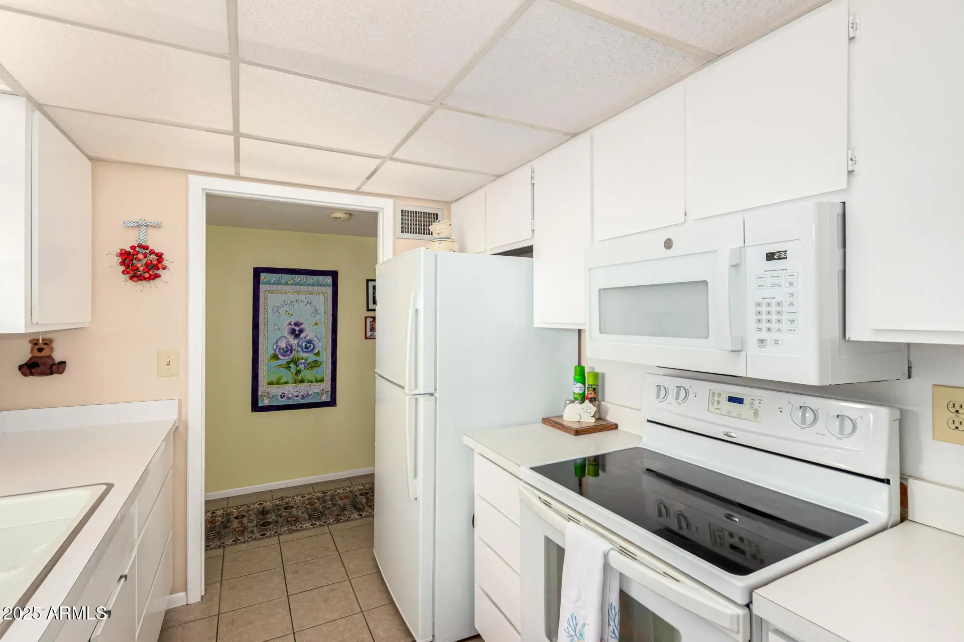 Home, sweet home! This lovely unit in the sought-after Sun City blends functionality and comfort, featuring 2 bedrooms and 1 bathroom, making it ideal for those seeking the freedom of low-maintenance living. Inside, you'll find an inviting living room with tile flooring, abundant natural light, and an earthy palette. Whip up your signature dishes in the galley-style kitchen, displaying ample cabinetry and counter space, with built-in appliances. The tranquil bedrooms are very spacious, and they both have large walk-in closets. One of the bedrooms has a built-in vanity with tons of storage and sliding doors to the patio for convenience. Sun City offers an impressive range of amenities, from multiple golf courses, swimming pools (including heated pools), fitness centers, bowling alley, and sports courts for tennis, pickleball, and softball, to arts and crafts studios, woodworking shops, computer centers, libraries, and a wide selection of chartered clubs. As a resident, you'll enjoy all the features of this welcoming adult communityincluding spas, laundry facilities, golf, tennis, and so much more.