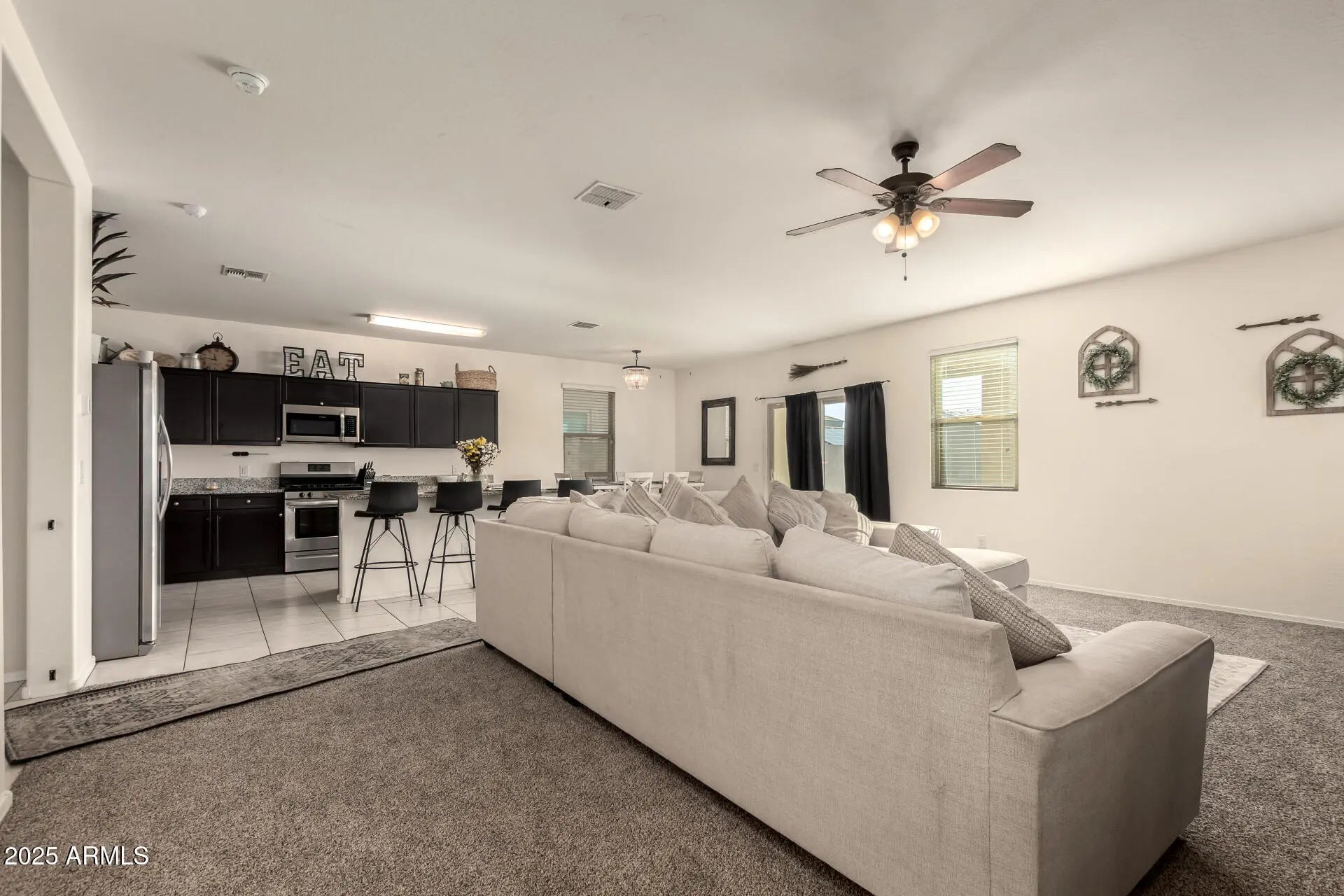 Welcome Home! What are you waiting for? View this home today! Spacious, open-concept home featuring fresh interior paint and exceptionally low electric costs with solar. New carpet downstairs. The kitchen offers ample granite counter space, plenty of cabinetry, a large walk-in pantry, stainless steel appliances, and a newer microwave! Enjoy a bright eat-in kitchen w/ a generous living area filled with natural light. Conveniently, the garage is just off the kitchen for easy access. Downstairs, you'll find a half bath and a roomy family space, perfect for entertaining or relaxing. Upstairs, a spacious loft leads to well-sized bedrooms and a convenient upstairs laundry. Solar panel guards are cleaned every 90 days. Newer Epoxy garage floor. The backyard is ready for your personal touch.