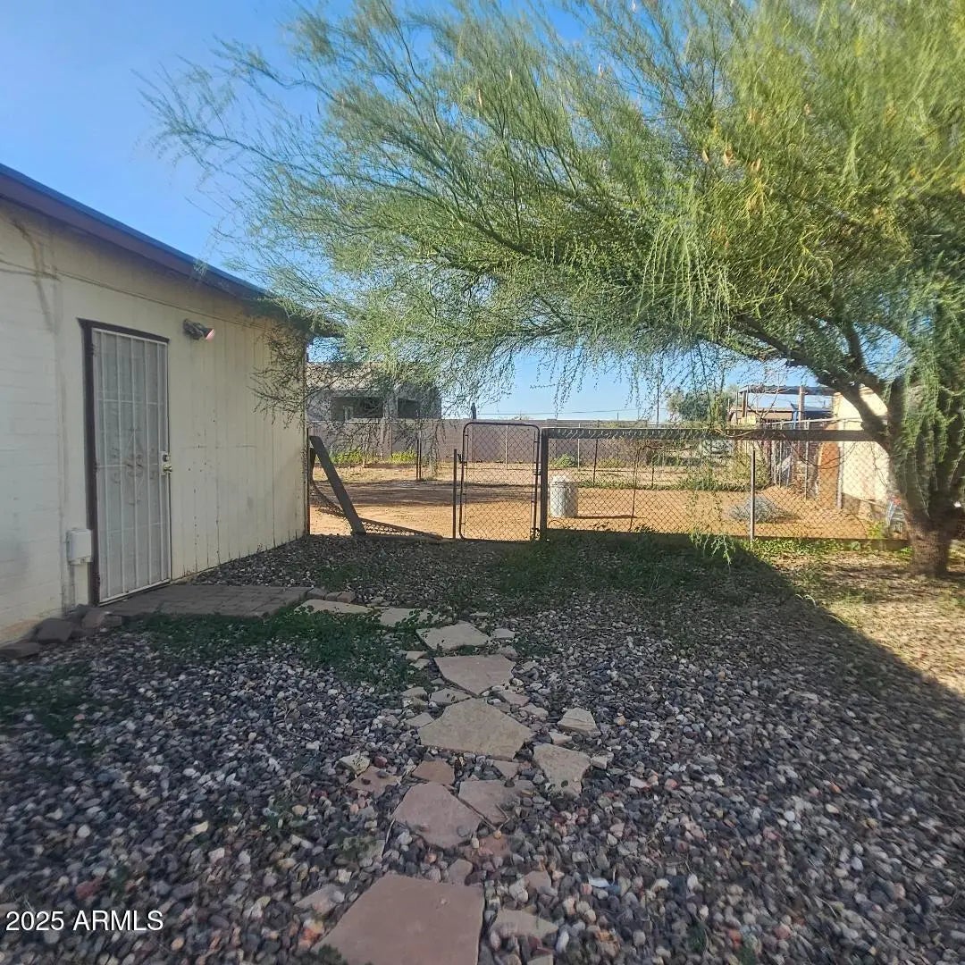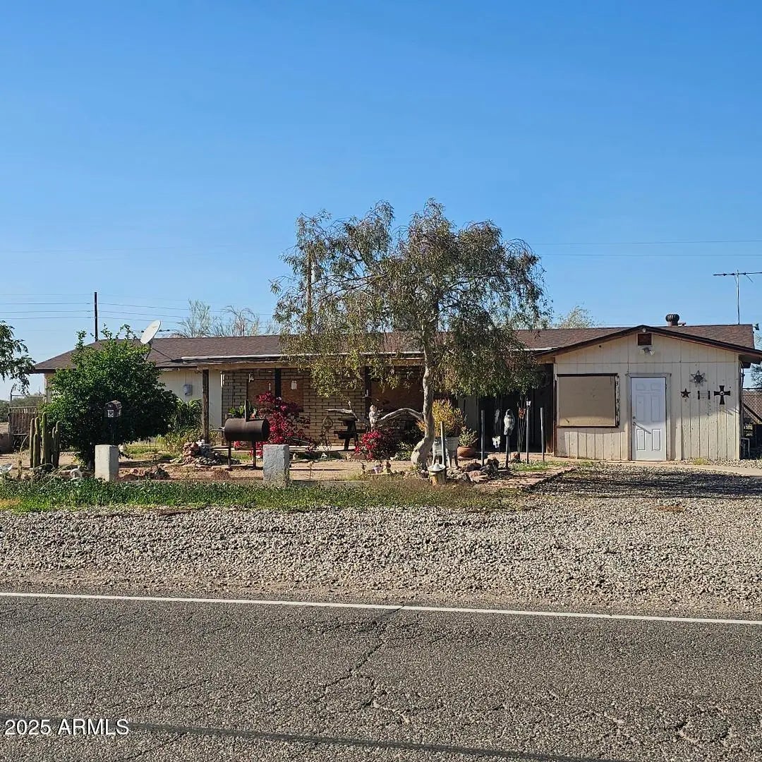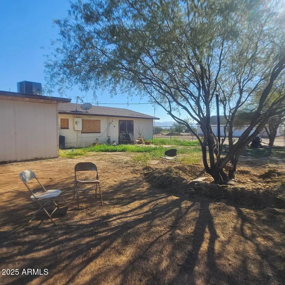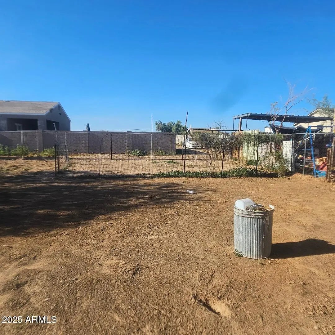 Come take a look! Great family home. Sitting on 2 lots, total of .32 acres. 2609 sq ft. 2.5 bath, 4 bedrooms + 1 office. Add a closet to the office and make it your 5th bedroom. Open floor plan with a spacious kitchen. Lots of cabinet space. 2 pantries. Large master suite with 2 closets and French doors to exit to the back yard. 4th bedroom has a 3/4 bath and door to exit to the side yard. Attached Studio with a separate entrance is a great space for your friends, w/ 1/2 bath and spacious room. Large fenced in backyard to keep your kids and animals in. Separate fenced in area for your garden. Storage shed. Double gate for easy access to back yard. Plenty of room to park. No HOA! Easy access to Hwy 60. Located between Wickenburg & Surprise.
