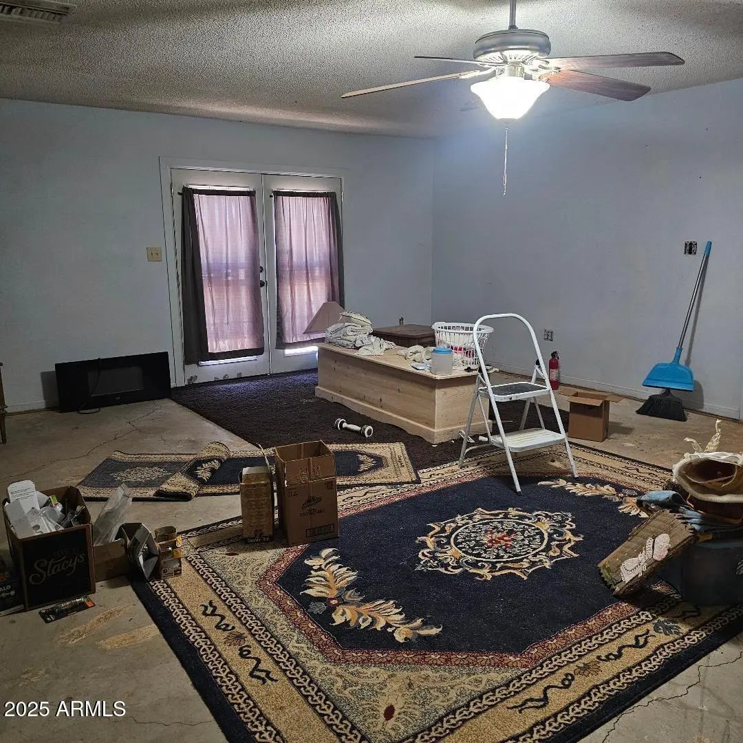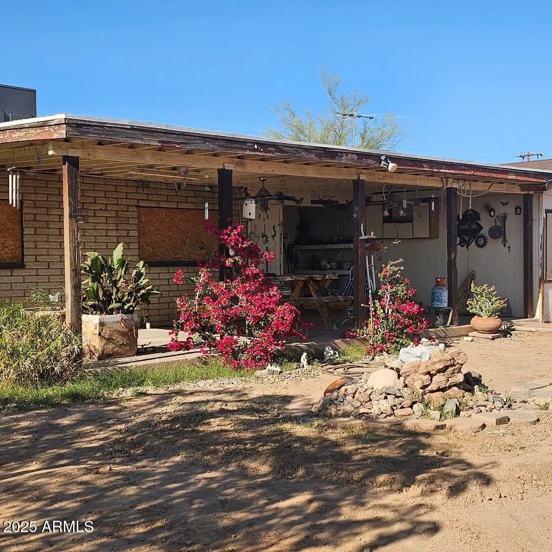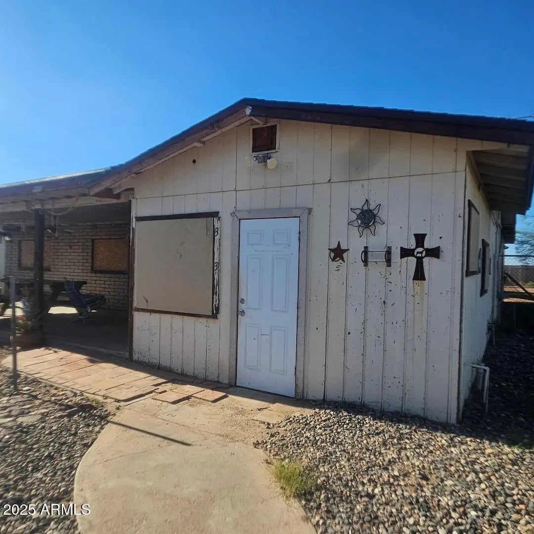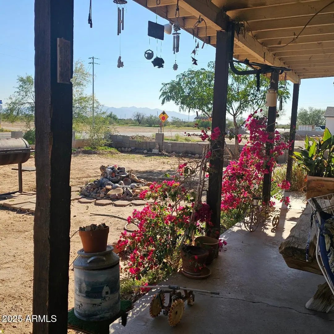 Come take a look! Great family home. Sitting on 2 lots, total of .32 acres. 2609 sq ft. 2.5 bath, 4 bedrooms + 1 office. Add a closet to the office and make it your 5th bedroom. Open floor plan with a spacious kitchen. Lots of cabinet space. 2 pantries. Large master suite with 2 closets and French doors to exit to the back yard. 4th bedroom has a 3/4 bath and door to exit to the side yard. Attached Studio with a separate entrance is a great space for your friends, w/ 1/2 bath and spacious room. Large fenced in backyard to keep your kids and animals in. Separate fenced in area for your garden. Storage shed. Double gate for easy access to back yard. Plenty of room to park. No HOA! Easy access to Hwy 60. Located between Wickenburg & Surprise.