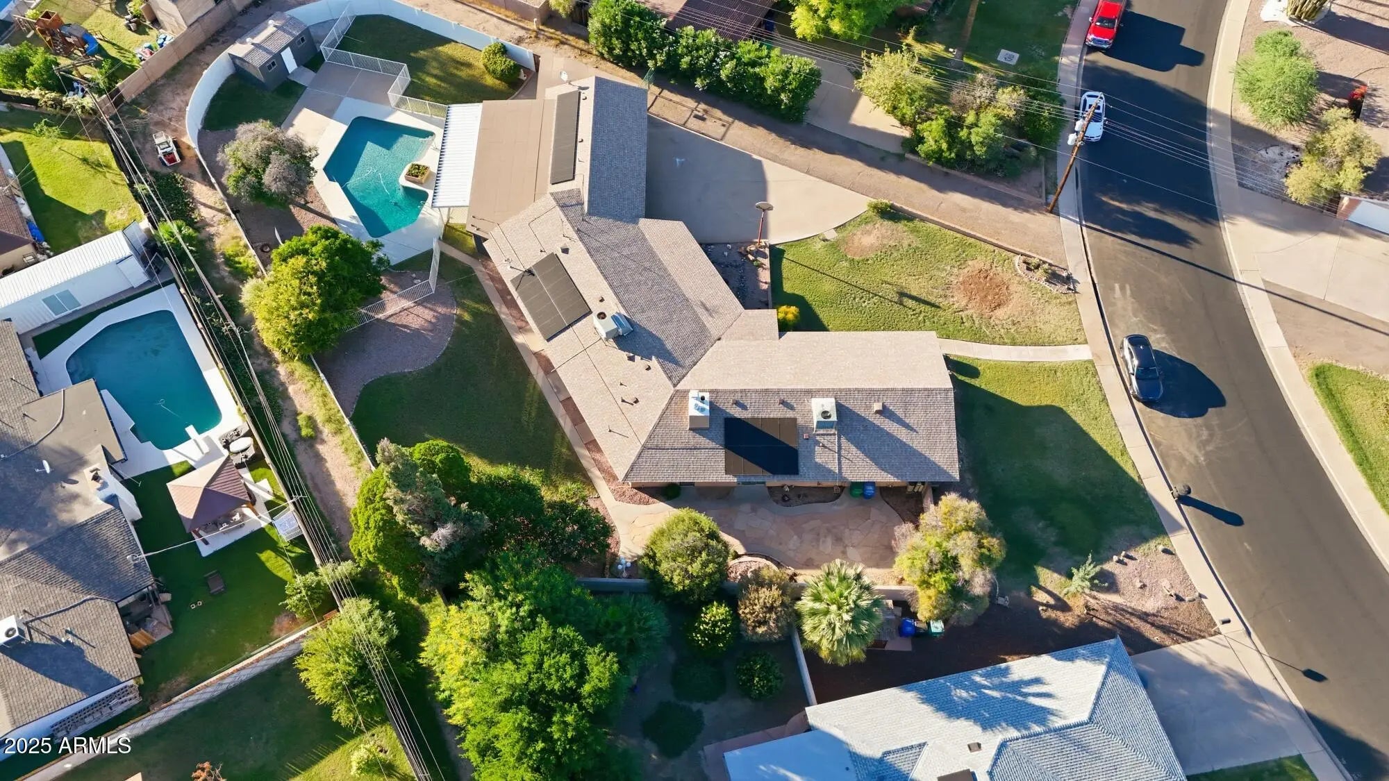 Location, Location, Location! This Multi-generational home on a 1/2 acre in North East Mesa offers the perfect blend of space, comfort and versatility. Located near the 101 and 202 freeways minutes from Tempe, ASU, Sky Harbor, and downtown Phoenix. Multi-generational is an understatement, the home has 2 complete separate self contained living areas. This home has 2 kitchens, 2 living rooms, 2 laundry rooms, 6 bedroom, 5 bathroom ideal for extended family, guests, or rental opportunities. This rare lush green 1/2 acre plus estate nestled in the heart of Mesa has SRP flood water irrigation. Each side of the home has a private patio and grass yard. The common area offers a sparkling Pebble Tech pool and poolside cabana complete with a shower and a toilet. Whether you're seeking a spacious family compound or a flexible investment opportunity this property delivers unmatched potential in a prime location. Don't wait and miss out, come see it today.