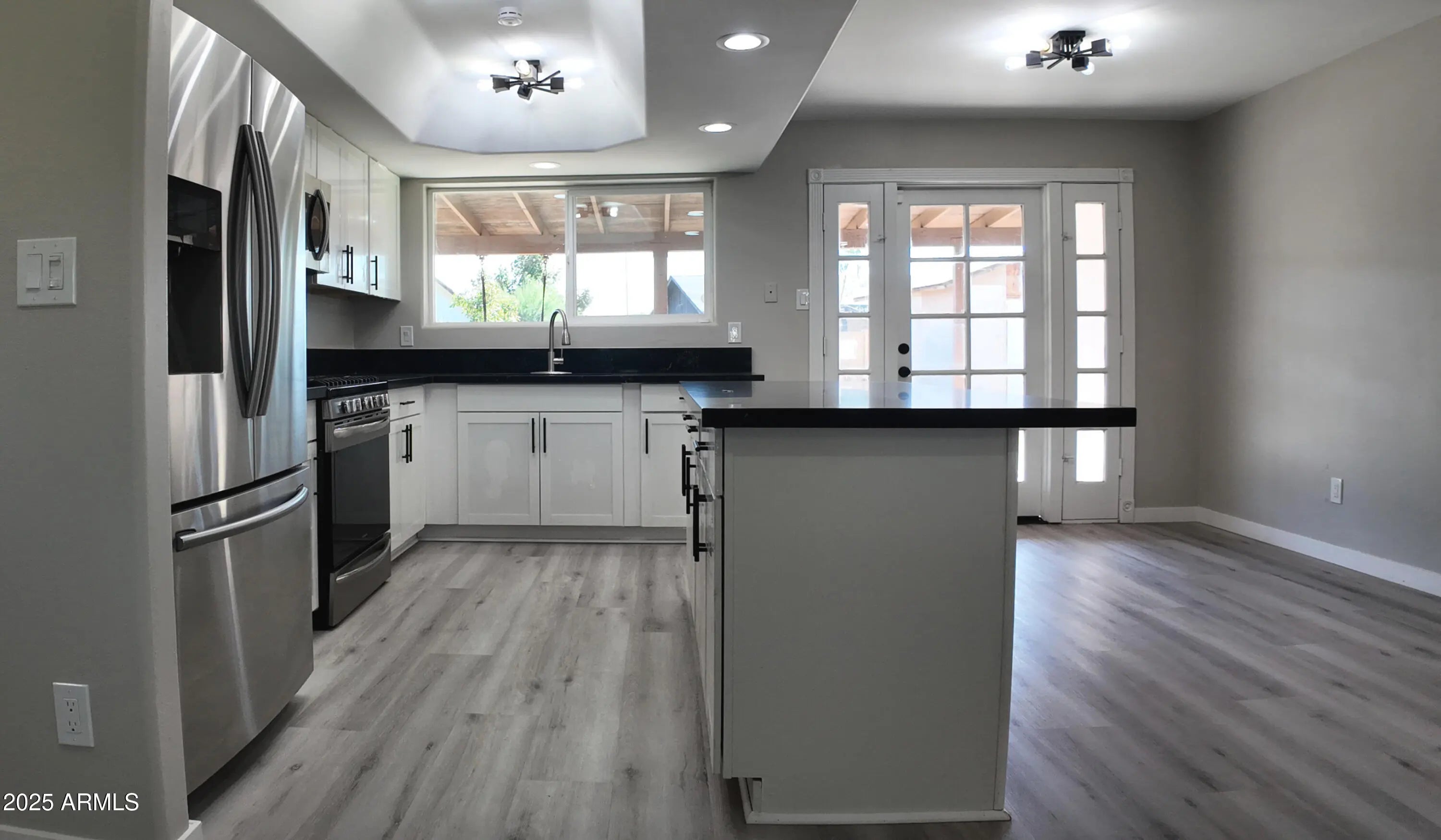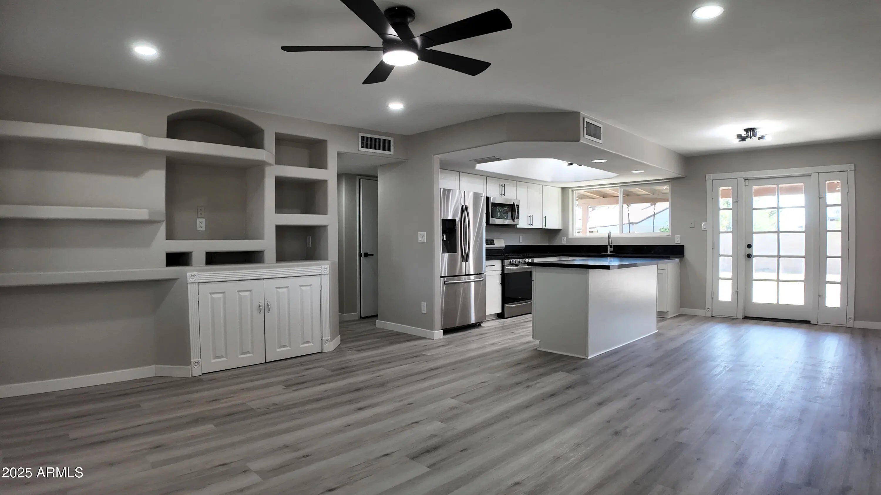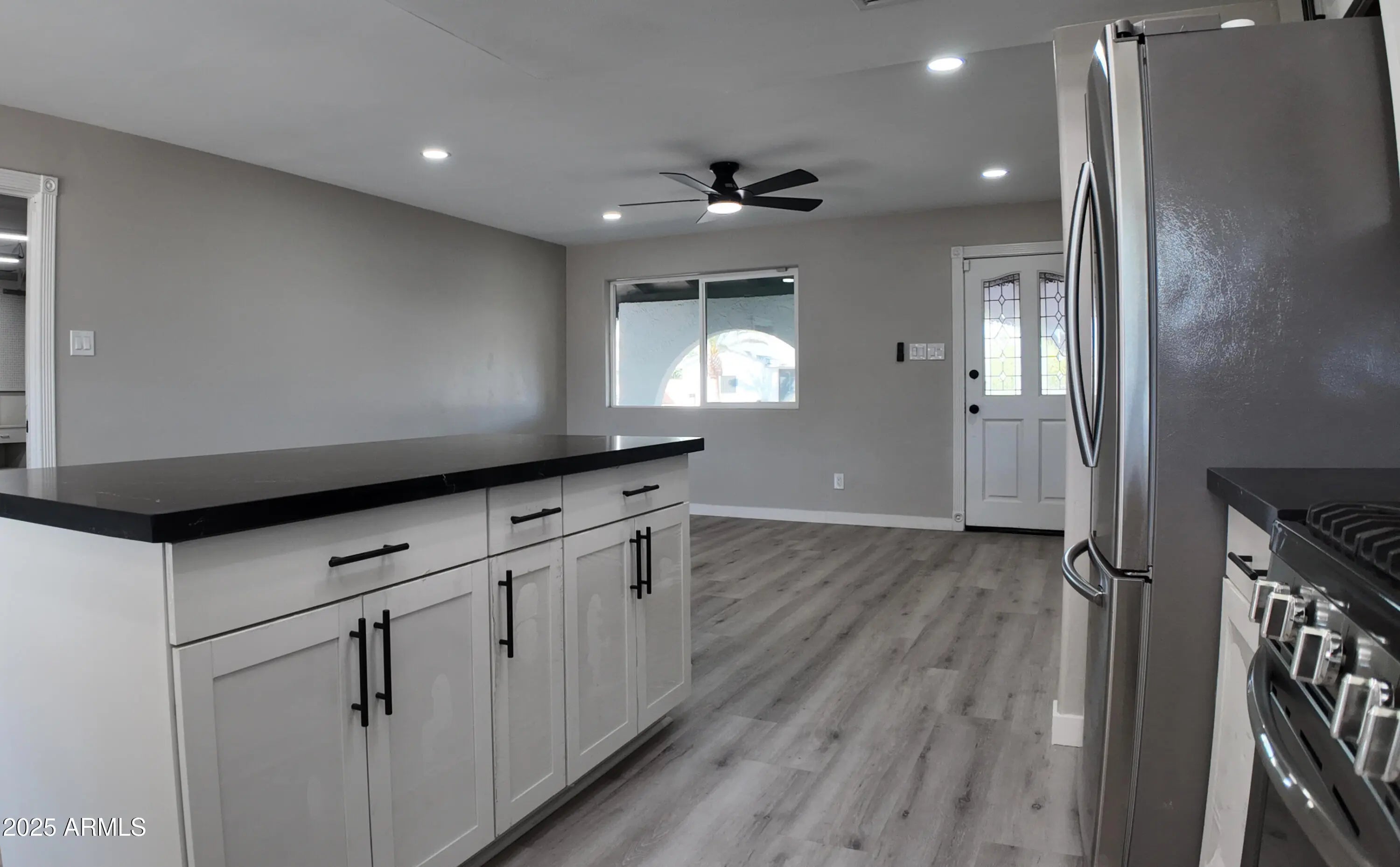 Welcome to this beautifully updated North Phoenix starter home featuring a large workshop, new energy efficient dual pane windows, wood-like vinyl flooring, and modern fans and light fixtures. The remodeled kitchen offers new cabinets, sleek black quartz countertops, and a spacious breakfast bar. Enjoy a 3-car tandem garage, a storage shed, covered patio, and a generous 7,720 sq ft lot with planters ready for your next veggie project —perfect to customize to your liking. Conveniently located near schools, parks, shopping, and I-17 access.