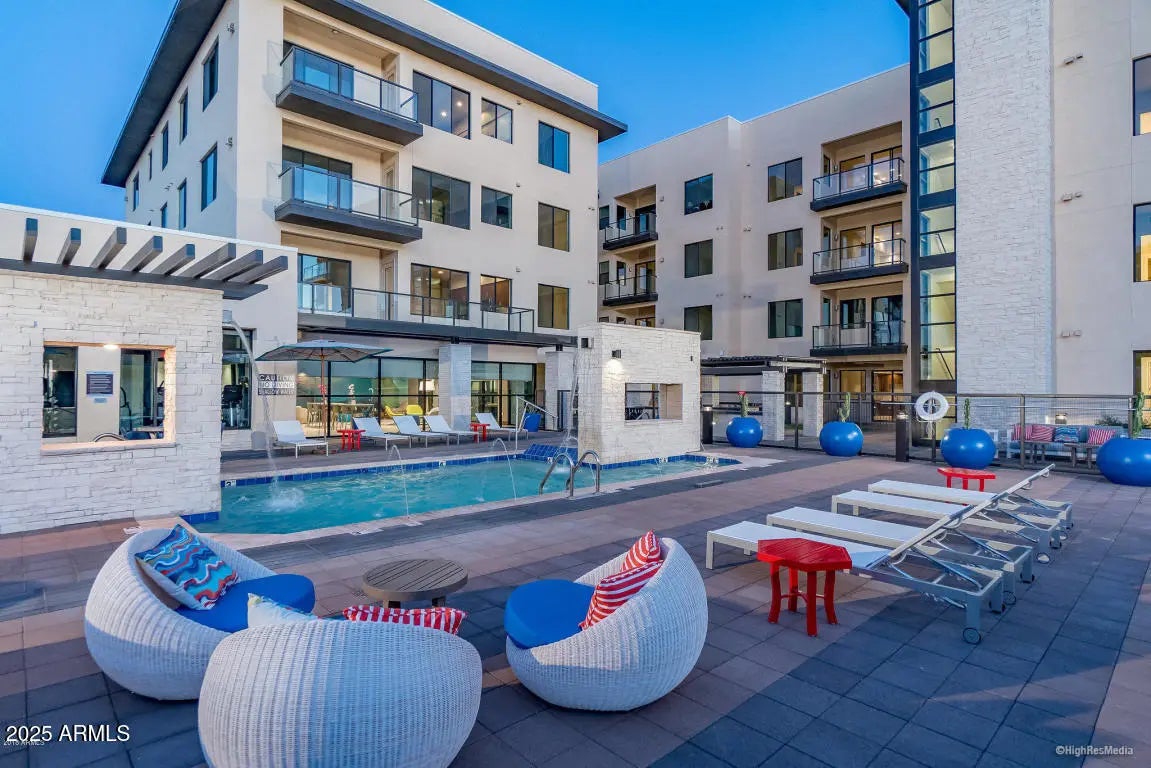Live in the heart of Old Town Scottsdale in this updated 1 bed, 1.5 bath condo with 10 foot ceilings and captivating city views. Recent upgrade improvements include new flooring throughout, fresh interior paint, an upgraded primary shower with a sleek glass door, and a freshly painted balcony floor. The spacious kitchen features quartz countertops ,stainless steel appliances and gas range.The bright living area opens to a private balcony. A spacious bedroom with en-suite bath pairs with a convenient half bath for guests.Community boasts a beautiful pool, spa, and gym. Step outside to a truly walkable neighborhood offering Scottsdale's best in dining, nightlife, entertainment, shopping, and recreation. Move-in ready, low-maintenance living in one of the city's most iconic locations.