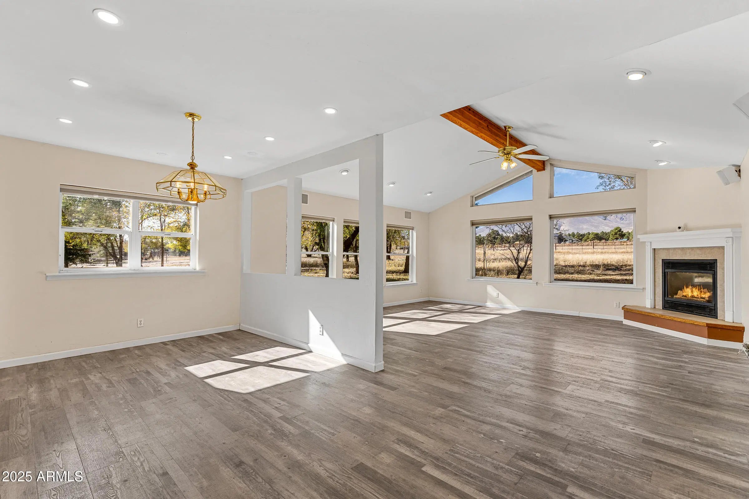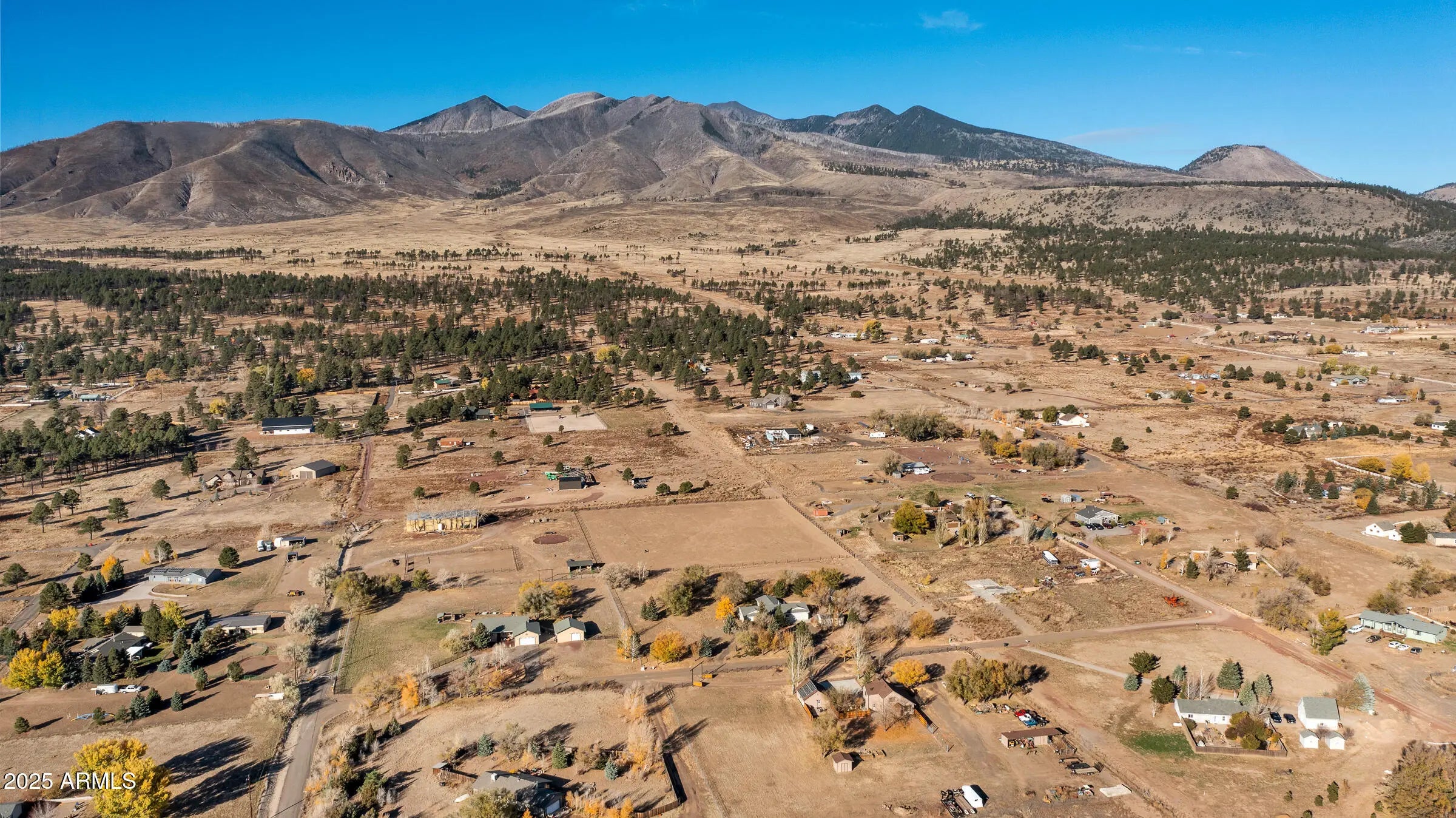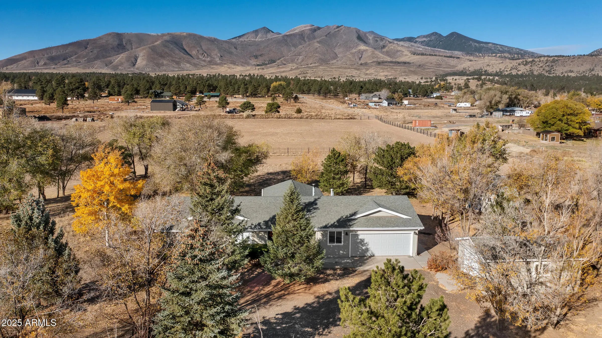 Welcome to this spacious 4-bedroom, 2-bath home set on 2.5 acres of serene Northern Arizona beauty. Panoramic views of Mount Elden and the San Francisco Peaks create a stunning backdrop from sunrise to sunset. Start your mornings sipping coffee while taking in the peaceful mountain scenery, and end your evenings surrounded by quiet, natural surroundings. Inside, the generous layout offers plenty of room to gather, relax, or spread out. A two-car garage, along with two sheds provides ample space for tools, toys, and hobbies. Despite the privacy and wide-open feel, you're still just minutes from everyday necessities, giving you the best of both worlds. With its acreage, views, and tranquil setting, this property offers a rare opportunity to create your own mountain retreat in a truly desirable Flagstaff location.