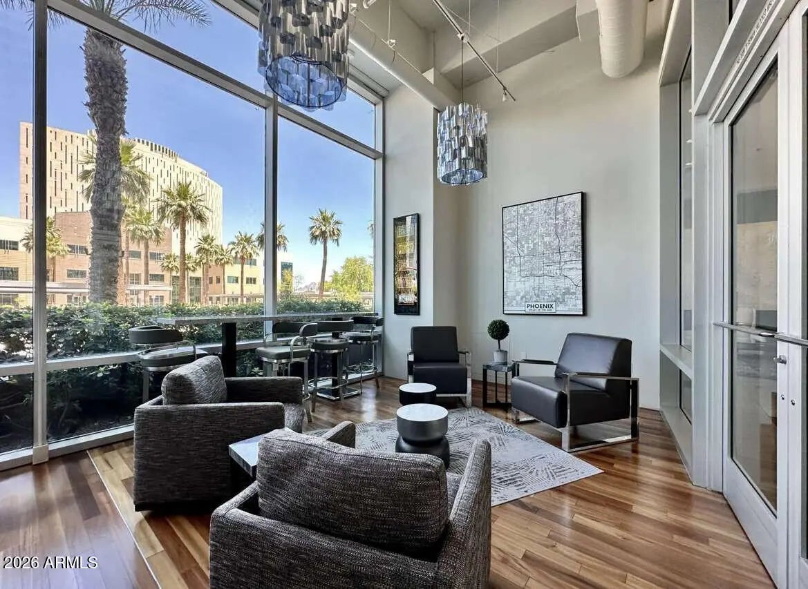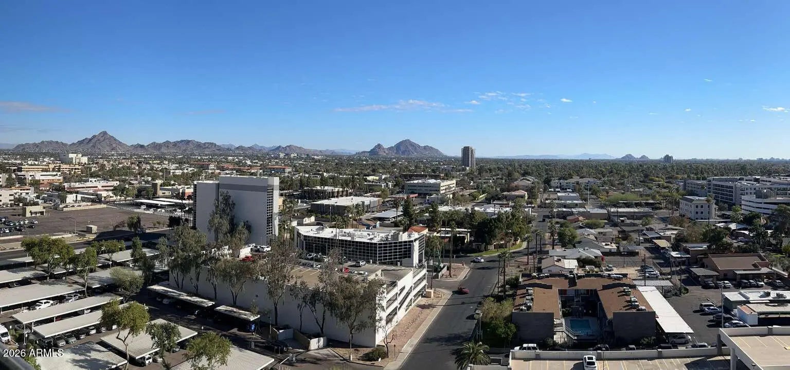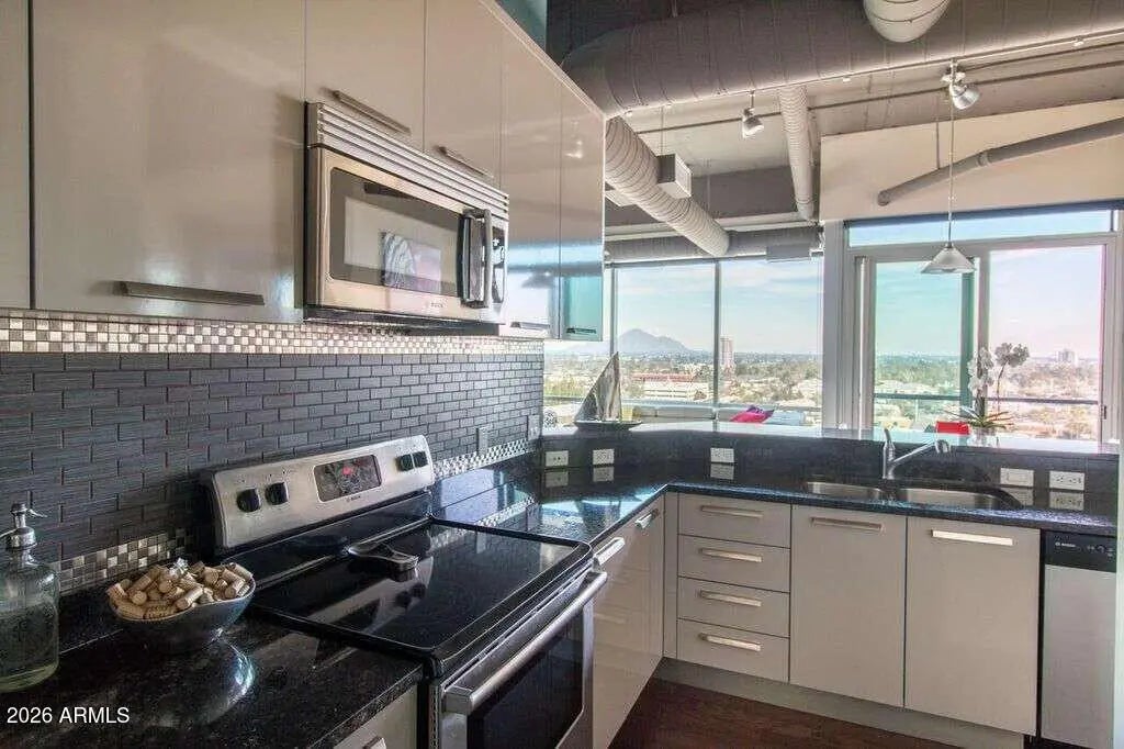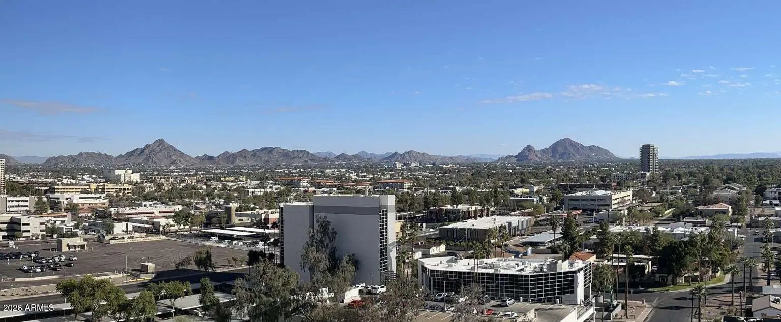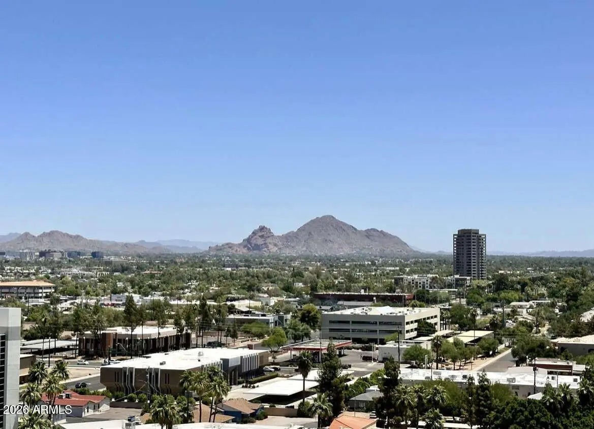 Views, views, views! Premium Northeast Corner high-rise residence! Spectacular view condo with amazing 270 degree views of the city, Camelback Mtn and Piestewa Peak! If you've been searching for a home or 2nd home that combines modern elegance, great location, and effortless lock-and-leave convenience, look no further. Sleek interior features, hardwood floors, granite counters, high end Stainless Steel Bosch appliances and more. 11 ft plus concrete loft style ceilings with exposed duct work, split floor plan, walk in master closet, inside unit Washer and Dryer and floor to ceiling windows with solar shades all the way around. Rarely available Northeast corner exposure, best views with minimum direct sun. Hip, sophisticated community conveniently located only steps from Light Rail station. All the amenities you would expect in an upscale high-rise community--Concierge, full security, garage parking with 2 side by side spaces, EV charging, huge gym, resort like heated Saltwater Pool, Spa & Cabanas, BBQs and firepit. Private community dog walk. Walking distance to Creighton University, St. Joseph Medical Center. Ride the Light Rail to Suns, D'Backs, art museum, and Sky Harbor.