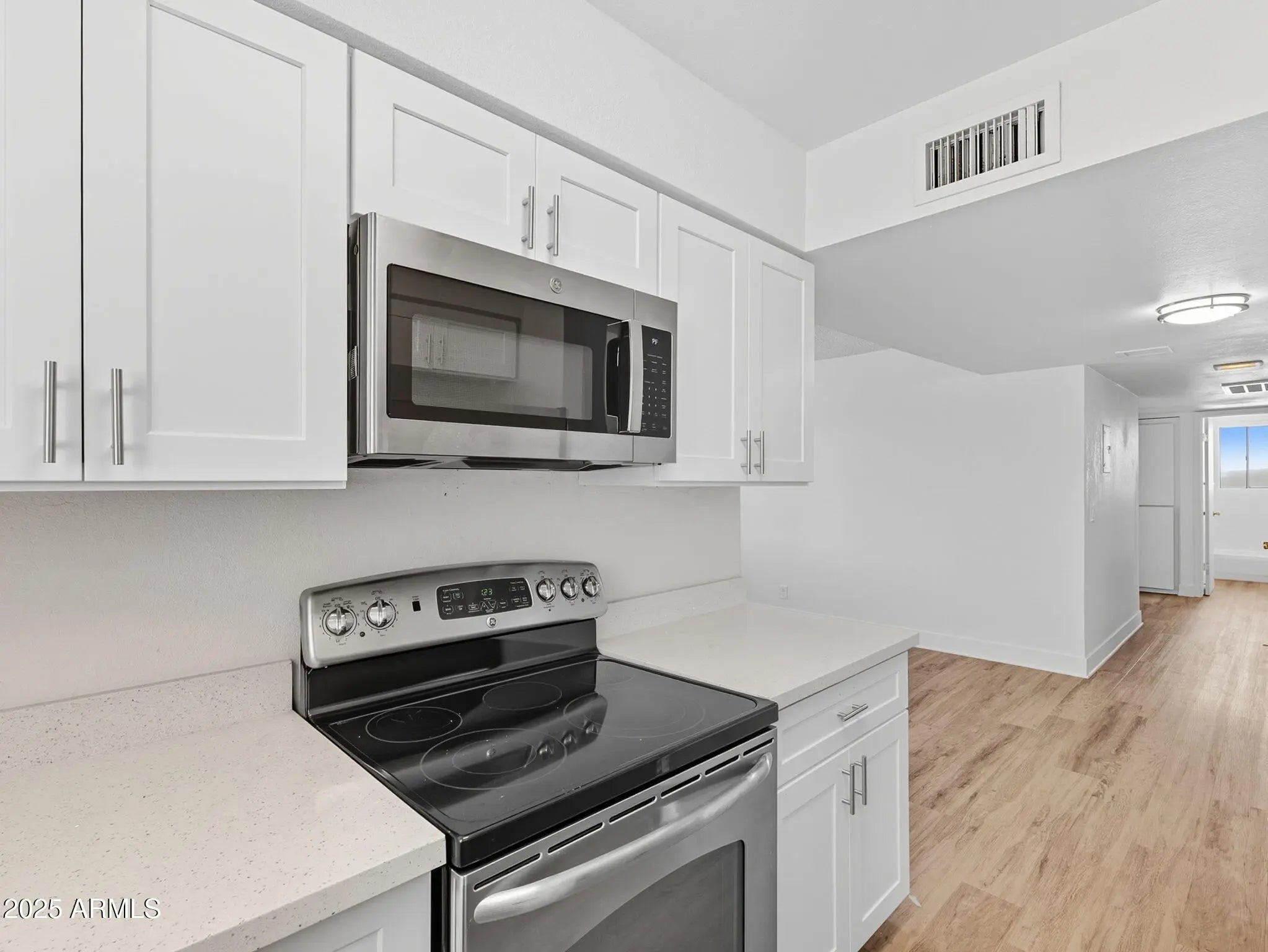 Come see this 2 bedroom, 1 bathroom condo with a 1-car carport, located in a gated community. It has a freshly painted interior and brand-new, neutral wood-look laminate flooring that flows seamlessly through the unit. The updated kitchen is a true highlight, featuring custom shaker cabinetry, quartz countertops, & stainless steel appliances. The bathroom has been thoughtfully renovated with a brand-new vanity, toilet, and has a tub/shower combo.