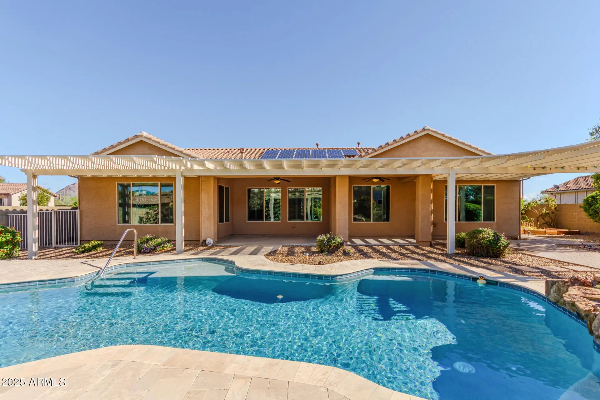 Tucked beyond the ordinary on rare estate-size lots, Arroyo Grande is one of Anthem's best-kept secrets—wide-open desert, mountain views, and true privacy while still part of the award-winning master-planned community. Set on an expansive 0.43-acre homesite, this 2011-built residence offers the setting buyers dream of: quiet streets, room to breathe PAID SOLAR & access to world-class amenities just minutes away. If you've been waiting for a neighborhood that feels like a retreat yet lives close to everything...welcome home. Perfect split floor plan offering spacious primary wing & 2 Bedrooms PLUS Office that can be used as a 4th bedroom! Backyard OASIS offers extended shady pergolas, sparkling pool and garden beds for healthy lifestyle growing! VIEWS to the mountains from your front yard Arroyo Grande combines the serenity of open desert with full access to Anthem's premier amenities. Residents enjoy a 64-acre park with playgrounds, a scenic 4-acre catch-and-release lake, Daisy Mountain Railroad, tennis and pickleball courts, indoor and outdoor basketball, softball and soccer fields, picnic areas, and miles of walking paths. The all-wheel skate park is one of Arizona's largest and recently updated. At the Anthem Community Center, you'll find a state-of-the-art fitness facility, indoor courts, sand volleyball, rental spaces, Adventure Club childcare, and a full outdoor aquatic park with slides, splash bucket, diving tank, lap lanes, and a rock-climbing wall. The 10-court pickleball complex makes the community a standout for active lifestyles. Location is exceptionalacross from miles of BLM land and close to hiking trails, outlet shops, restaurants, and key employment hubs. Just 15 minutes to TSMC, Lake Pleasant, and Ben Avery. Top-rated schools, including Gavilan Peak Middle and Boulder Creek High, are nearby. Easy access to I-17 provides direct routes to Scottsdale, Sedona, Flagstaff, and Sky Harbor. With reasonable HOA fees and the ability to park RVs, boats, and ATVs onsite, Arroyo Grande remains one of the NW Valley's most versatile and desirable neighborhoods. The perfect blend of privacy, recreation, and convenience. Come experience the lifestyle Anthem is known for.