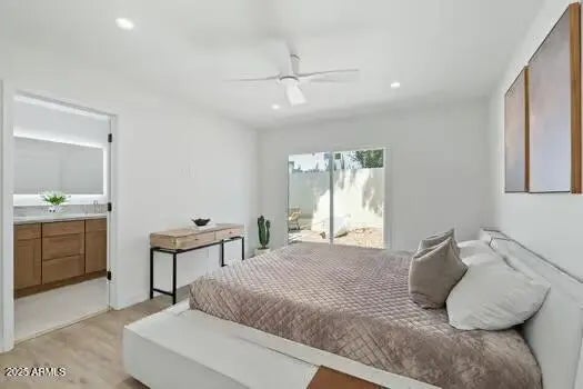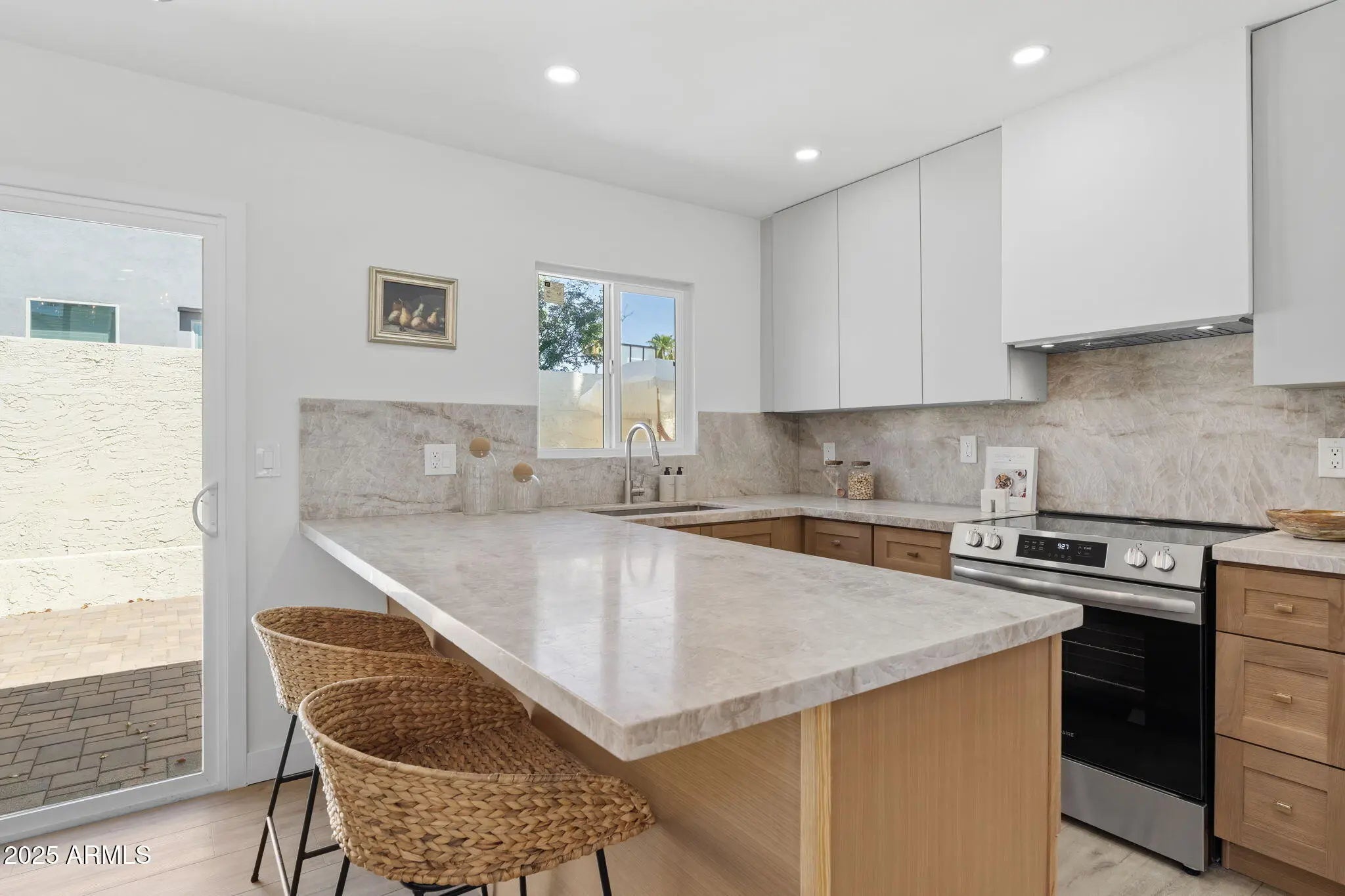 Minutes from the 51 freeway, Sky Harbor Airport, and the Biltmore's top dining and shopping, this fully renovated residence delivers organic luxury living with every detail thoughtfully curated. No expense was spared in crafting a home that feels elevated, warm, and functional in one of Phoenix's fastest-growing neighborhoods. Inside, soaring ceilings and wide-plank flooring set the tone for a bright, modern flow. The designer kitchen is a true showpiece, featuring Taj Mahal quartzite countertops, custom oak + cashmere cabinetry, a statement range hood, and a brand-new stainless appliance package, balancing natural textures with modern performance. A sleek breakfast bar makes entertaining effortless. The private primary suite offers direct patio access, a generous walk-in closet, and a spa-inspired en suite with dual vanities, Delta rain head + handheld, and an LED-backlit mirror; a sanctuary designed for everyday rejuvenation. Beauty meets long-term peace of mind with an upgraded roof, new dual-pane windows, a new water heater. Smooth wall texture, designer lighting, and a limewash-finished guest bath reinforce the cohesive, high-end aesthetic. A rare, grandfathered-in rooftop walking deck extends your living space, ideal for sunrise coffees, sunset cocktails, or stargazing under the city lights. Organic luxury. Elevated living. A location that keeps you perfectly connected.