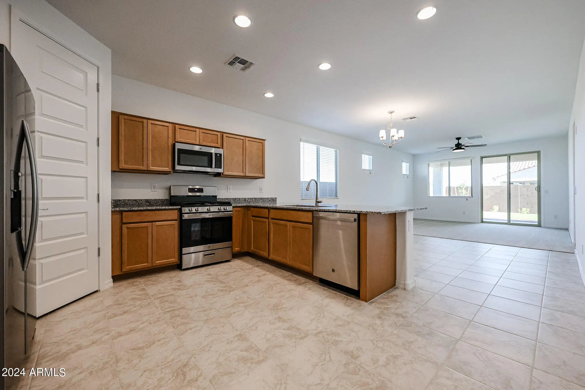 4 bedroom + Den, 2 bathroom home in Stonehaven! Home has open floor plan with upgraded kitchen including granite countertops and stainless steel appliances overlooking large great room and den. Master bedroom has huge walk in closet and plenty of space. Backyard includes covered patio, artificial turf and pavers. Stonehaven includes a beautiful community pool and tons of walking/biking paths and parks. Home is close to Cardinals Stadium, shopping, dining, entertainment and 101 freeway.