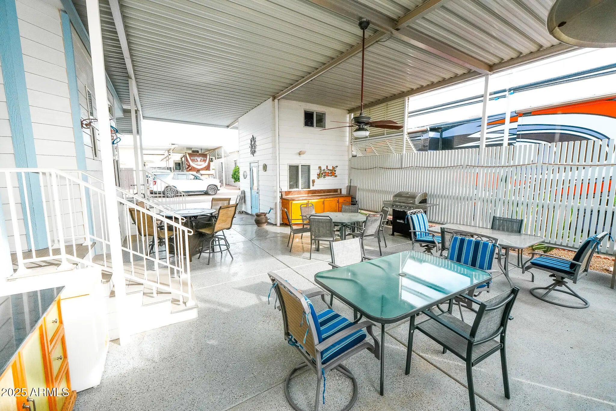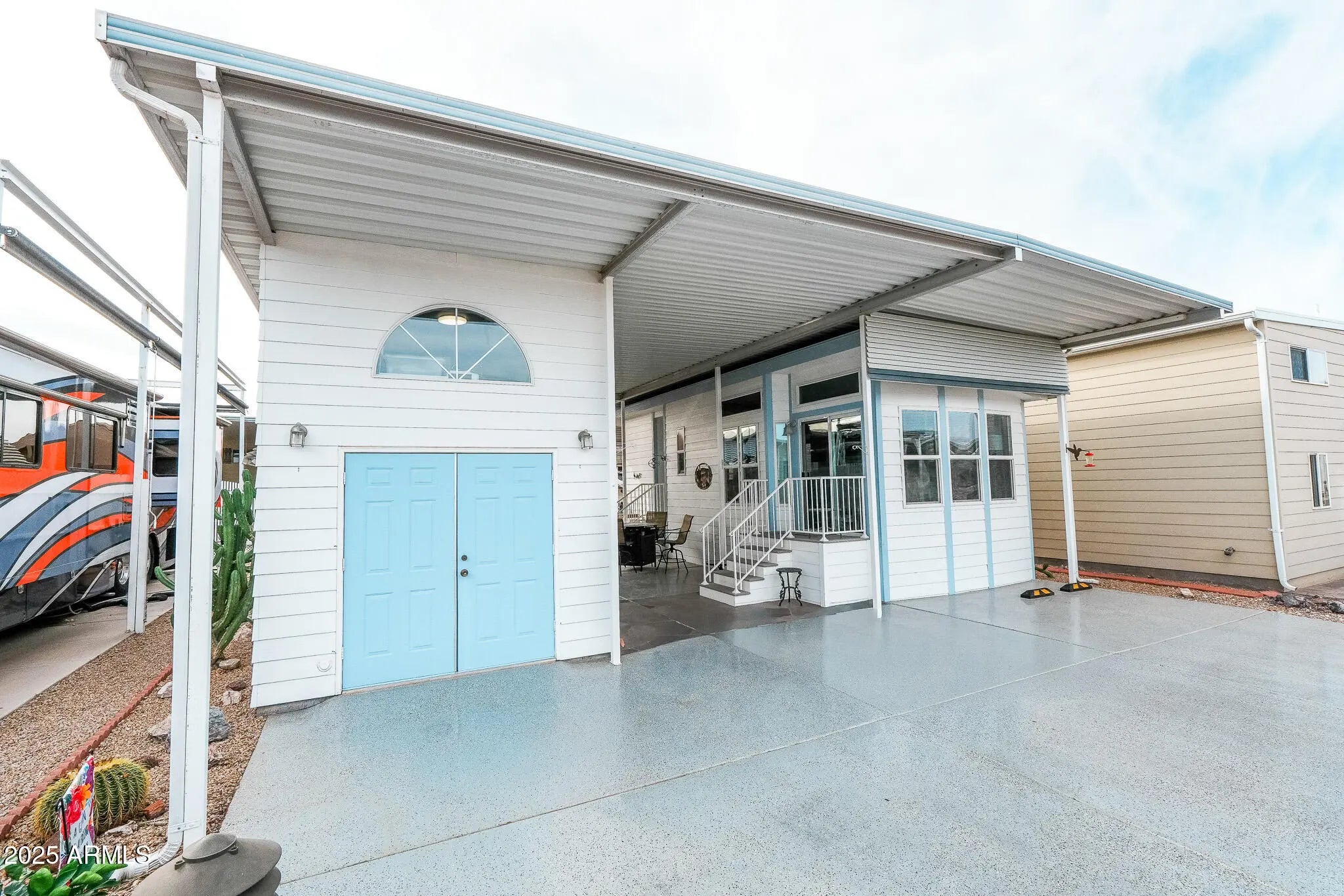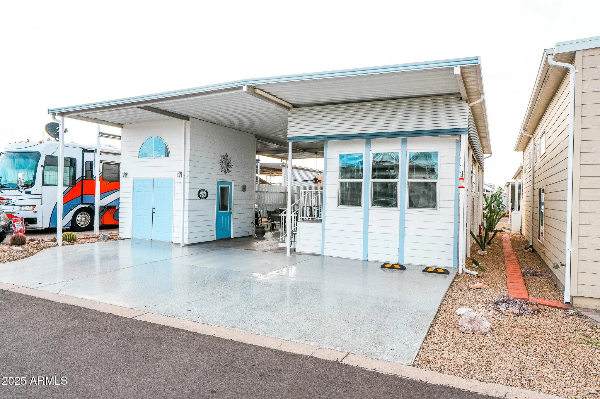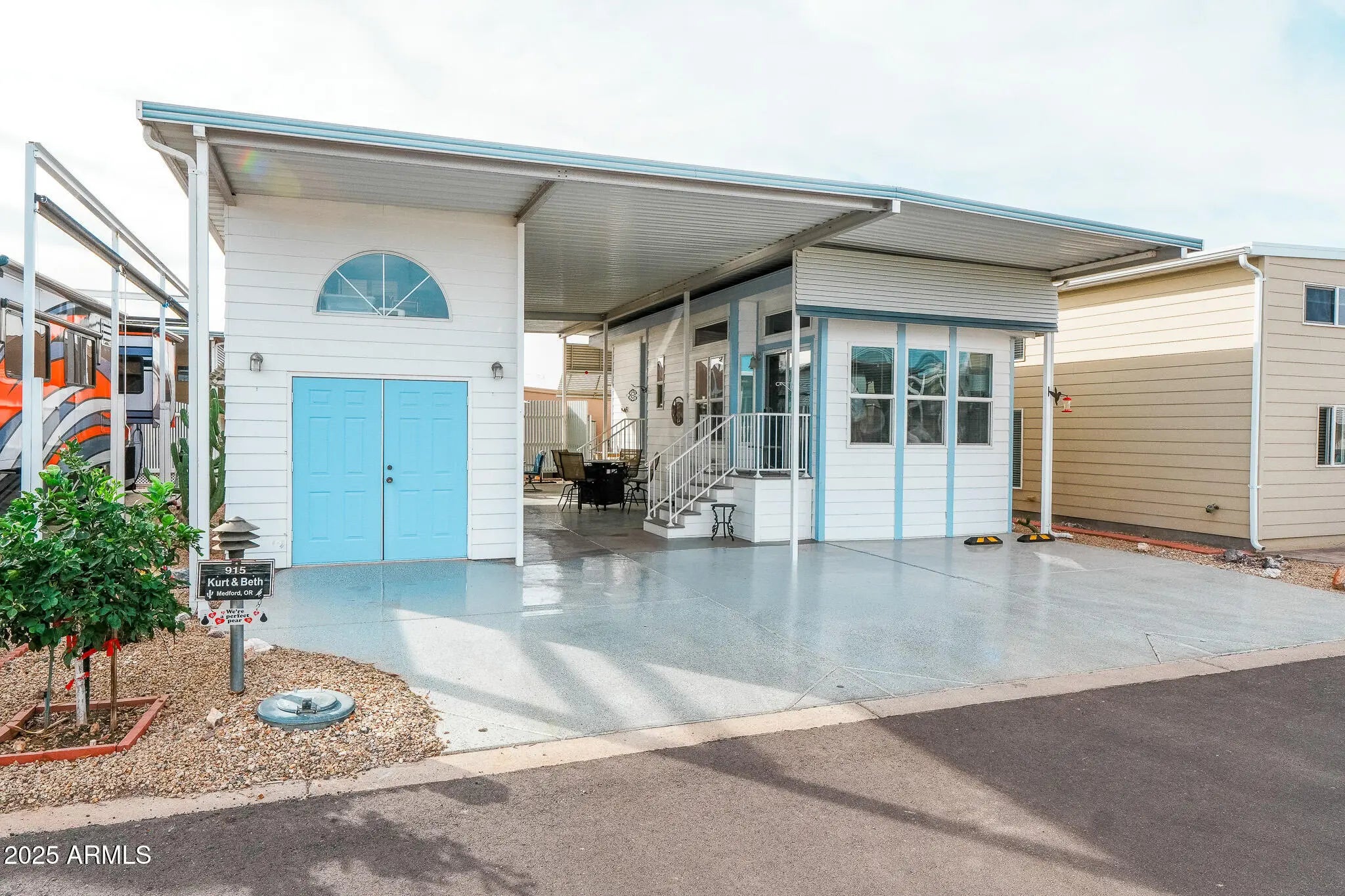 Own your lot with no lot rent and forget everything you thought a park model couldn't offer. This beautifully maintained 2014 home includes all the necessities for living the good life—1 bed/1 bath, beautiful cabinetry, updated countertops, dishwasher, neutral flooring, and a step-in shower. The fully covered lot adds two standout features: a two-story casita with washer, dryer, WC, and sink, plus a large private entertainment area with cabinets and counter space perfect for hosting all your friends. Extras include ample parking, your very own orange tree, and low HOA fees that include water, sewer, trash, and full resort amenities. Plus, tons of storage inside and out for the golf clubs, pool noodles, happy-hour chairs, and seasonal golf-cart decorations. Note to self: bring sunscreen