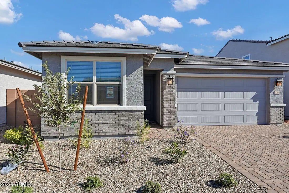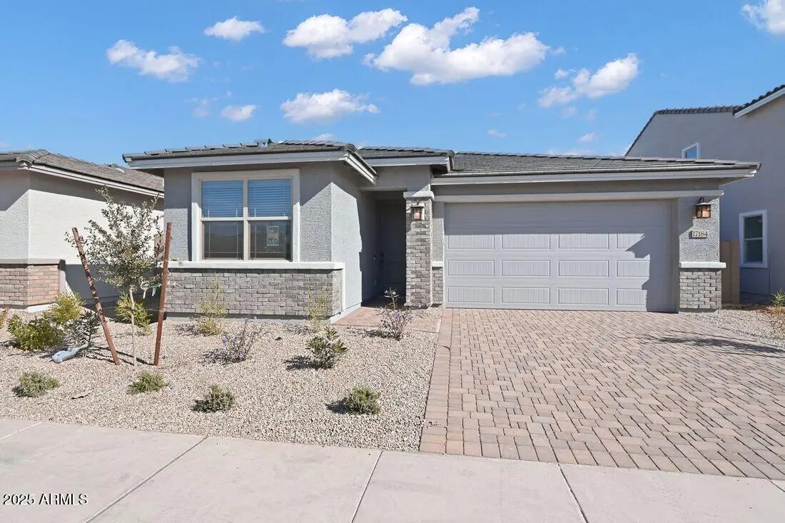 What's Special: Deep Backyard | Close to Amenities | South Facing Lot | Dedicated Study | Covered Patio | Single Level Living. New Construction - Ready Now! Built by America's Most Trusted Homebuilder. Welcome to the Quartz at 17184 W Saddle Horn Trail in Asante Discovery! Step onto a welcoming porch and enter a bright foyer leading to an open dining area, spacious great room, and stylish kitchen with a large island. Enjoy easy access to outdoor living, a private primary suite with serene bath and walk-in closet, plus a guest room, study, and two-car garage. Additional Highlights include: study, pavers at entry and driveway, quartz countertops, gas GE appliance package, upgraded carpet and padding, window treatments, upgraded crown molding and upgraded baseboards. MLS# 6948697