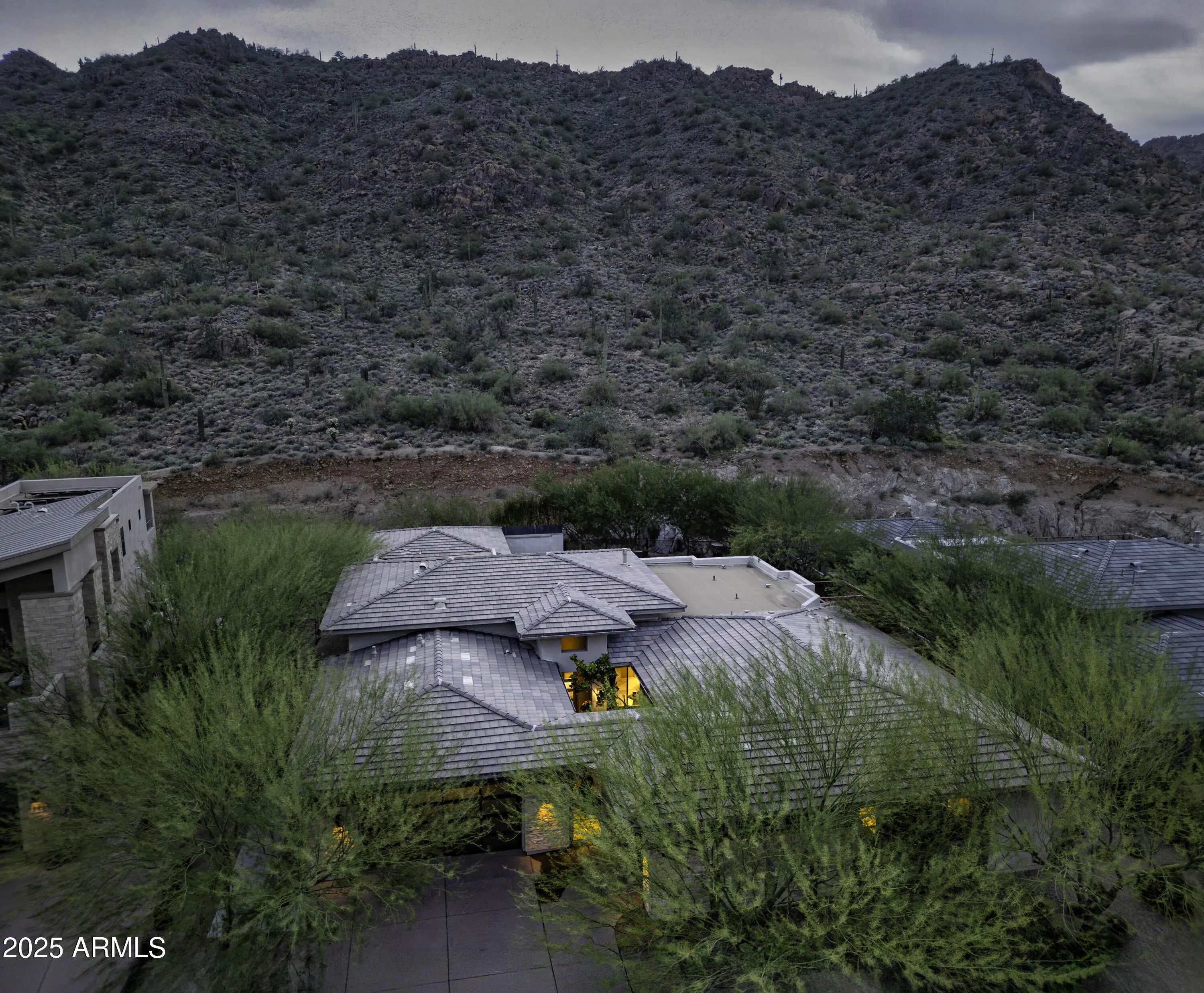 Exquisite Parker model backs to the mountains creating a private, serene & tranquil surrounding. Enter the courtyard & step into your new home w/soaring ceilings, tons of natural light, wall to wall windows & pocket doors creating indoor/outdoor living at its finest. Main home has 3 bedrooms, 3 1/2 baths plus office & upgrades galore from designer light fixtures, quartz waterfall kitchen island. La Cornue gas range & rotisserie, Wolf appliances, Espresso machine, SubZero, 3 wine refrigerators, surround sound, Control 4 system, motorized shades, multiple accent walls & under cabinet lighting throughout. Casita w/add'l bedroom & bath & walk-in closet. Resort style backyard w/artificial lawn, heated pool w/ waterfall & raised sun deck. Primary retreat & bath w/a private patio w/spa AND... and outdoor shower. Separate family room features built-in cabinets w/open shelves & sliding doors to front courtyard. It can also create a separate guest area for privacy. Secondary bedrooms are both en-suite and split from primary bedroom. 3rd bedroom currently used as a 2nd in-home office. Laundry room with sink. 3 car garage with built in storage closets. 3624 Square feet includes a 374 square foot guest casita. Gated community. All this and more. A Must See! Show & Sell.