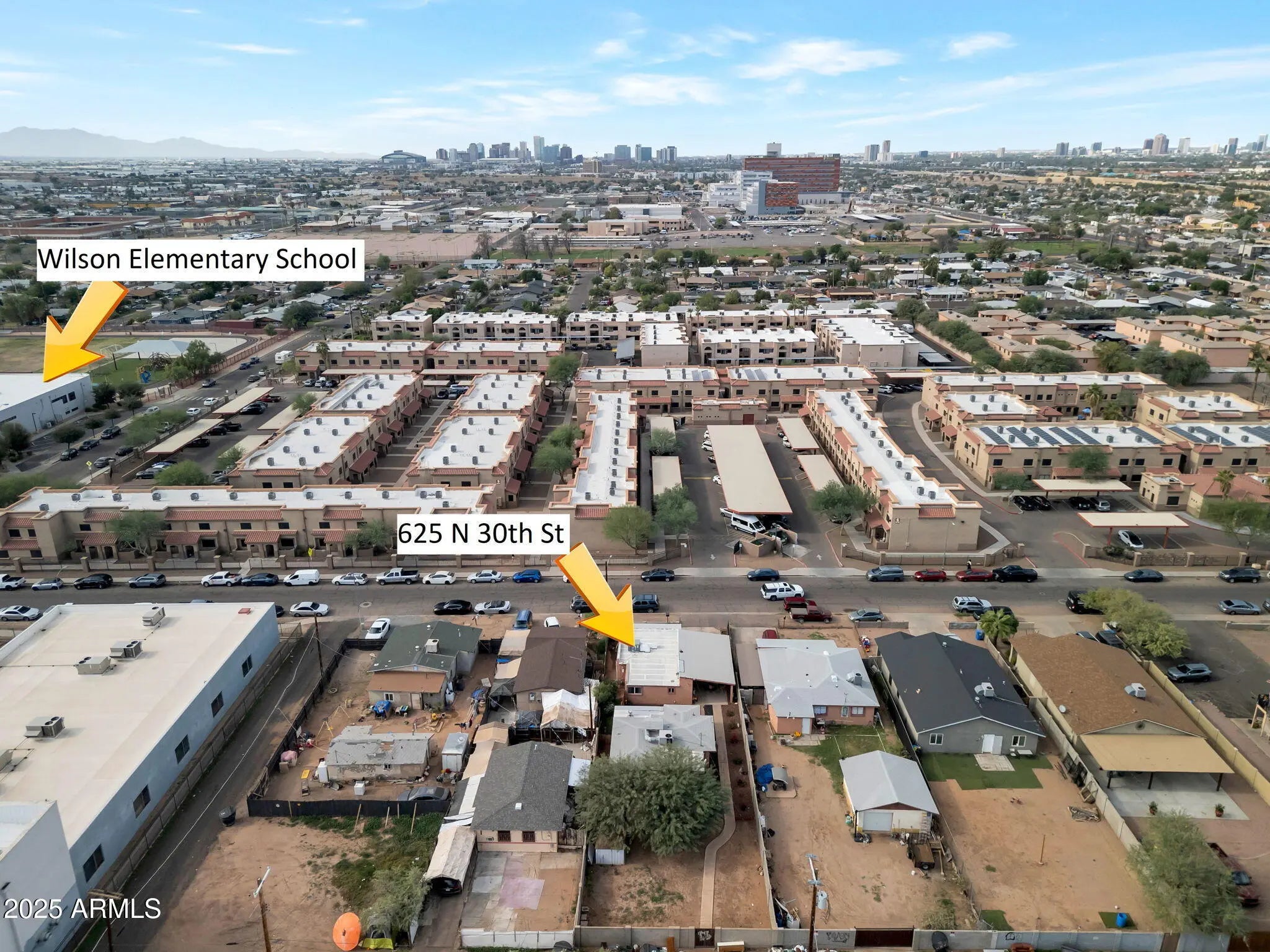 Oasis in the City. Duplex includes Main House & Guest House with beautiful gardens only 1 mile from 202 Freeway & 32nd Street exit. Each home has 2 BR, 1 Bathroom with private laundry rooms w/d included in main house), separate patios with shared gardens & lawn. Main house also has a fully enclosed and locking front porch. Main house 733sf + guest house 719sf = 1,452sf total per owner, w laundry room expansions & past enclosure (Buyer can verify sf). Covered Carport for 2 cars & slab parking for 2 extra cars making 4 car private parking. Upgraded private block walls surrounding the property with new plantings in gardens for a private serene atmosphere for both of these nice well-maintained homes. Close to downtown Phoenix, Suns, Diamondbacks, Airport, Hospitals & ASU (continued)... ...Wilson primary, middle and college prep schools are only 1 block south of home (see marked pictures) with each school's white buildings on both sides of 30th St. Celebrity Theater and the VA Clinic are close and 2 blocks to the East on 32nd St.. Zoned R3 Multi Family. Great income potential. You may live in 1 home & rent the other. or rent both, or use both for the family. Large backyard to expand, if desired, maybe a third unit. Two pleasant and peaceful homes waiting for new owner.
