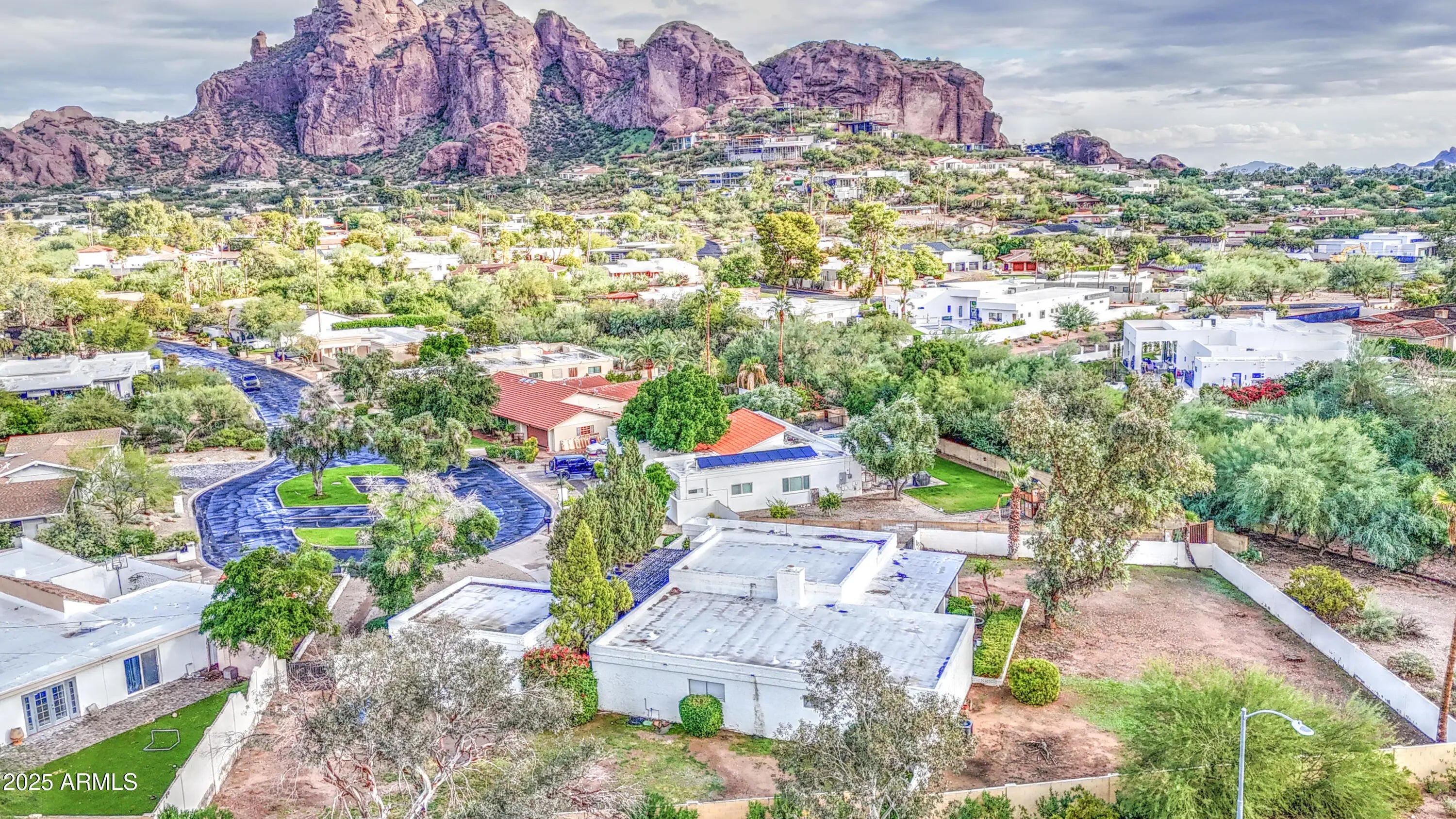 SELLER CARRYBACK! Perfectly situated between the desirable neighborhoods of Arcadia and Paradise Valley with views of Camelback Mountain and the Praying Monk. Located in the coveted Hopi, Ingleside + Scottsdale School District. ZONED RE-24! This incredible home can be move-in ready with updating but its best opportunity is for buyers to build their dream home. NEW BUILDS in this subdivision sell for 3 to 5 million. This is the largest lot in this subdivision and has a unique layout including a lovely secluded cul-de-sac with special guest parking. The home has a great floorplan with an incredible split master suite and bath, long counters and double sinks. The living room, dining and family rooms are open and spacious! Potential is Endless!