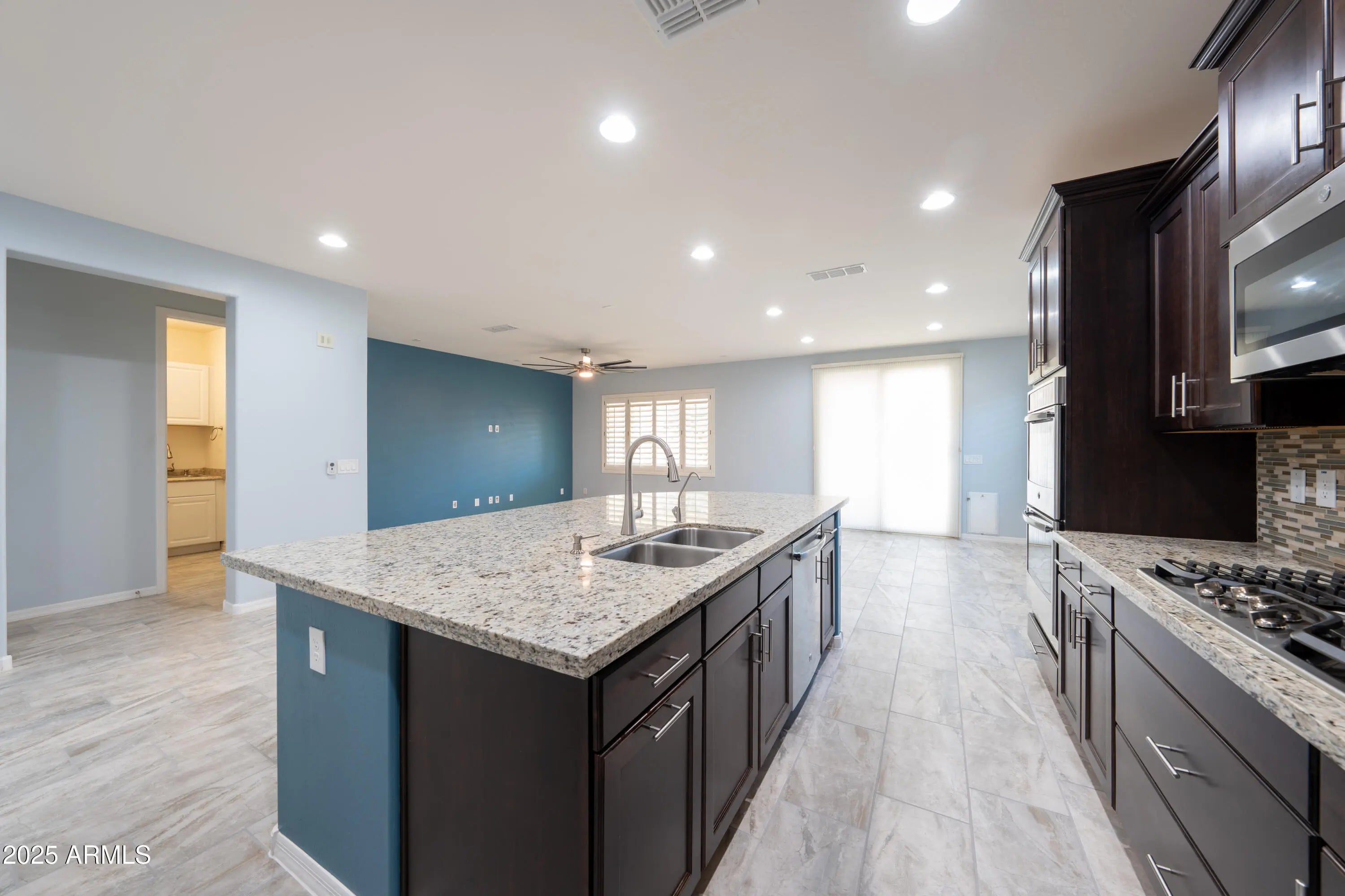 Tucked into the scenic and sought-after community of The Bridges at Gilbert, this inviting single-story home blends comfort, function, and style. A bright, open layout welcomes you with abundant natural light, fresh interior paint, new bedroom carpet, and tile flooring throughout the main living areas truly move-in ready. The spacious kitchen is perfect for both everyday meals and entertaining, featuring granite countertops, double ovens, a gas cooktop, walk-in pantry, and generous cabinet space. Need a quiet corner? A dedicated office/den provides a peaceful workspace. The oversized primary suite offers a luxurious retreat, complete with a soaking tub, separate shower, and dual-sink vanity. The 3-car garage is pristine and practical, boasting epoxy floors, built-in storage cabinets, an EV charger, and a tankless water heater. Additional features include a laundry room with utility sink and a whole-home soft water system. Outside your door, enjoy the exceptional amenities The Bridges is known for lakes, walking trails, splash pads, sports courts, catch-and-release fishing, and lush neighborhood parks.