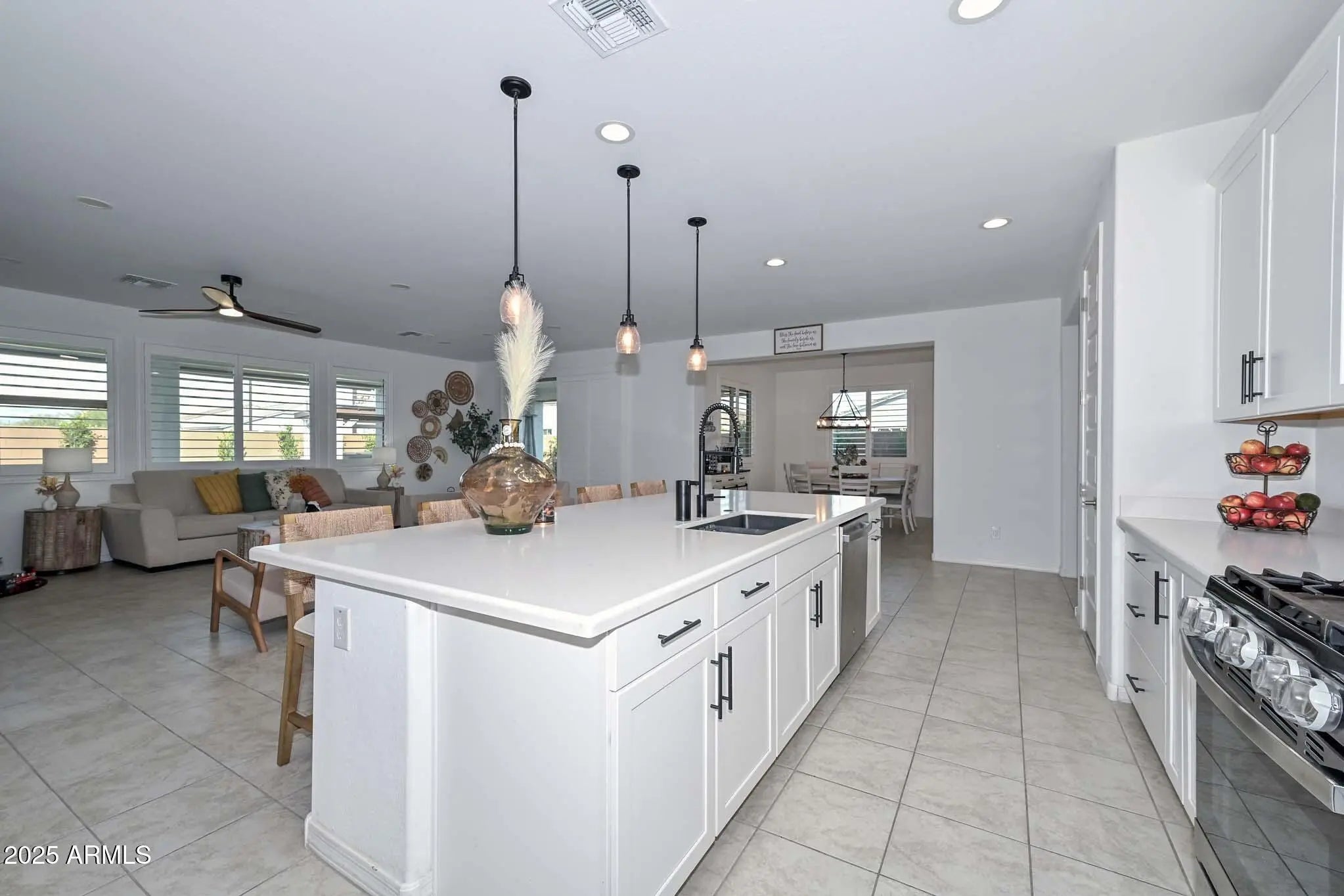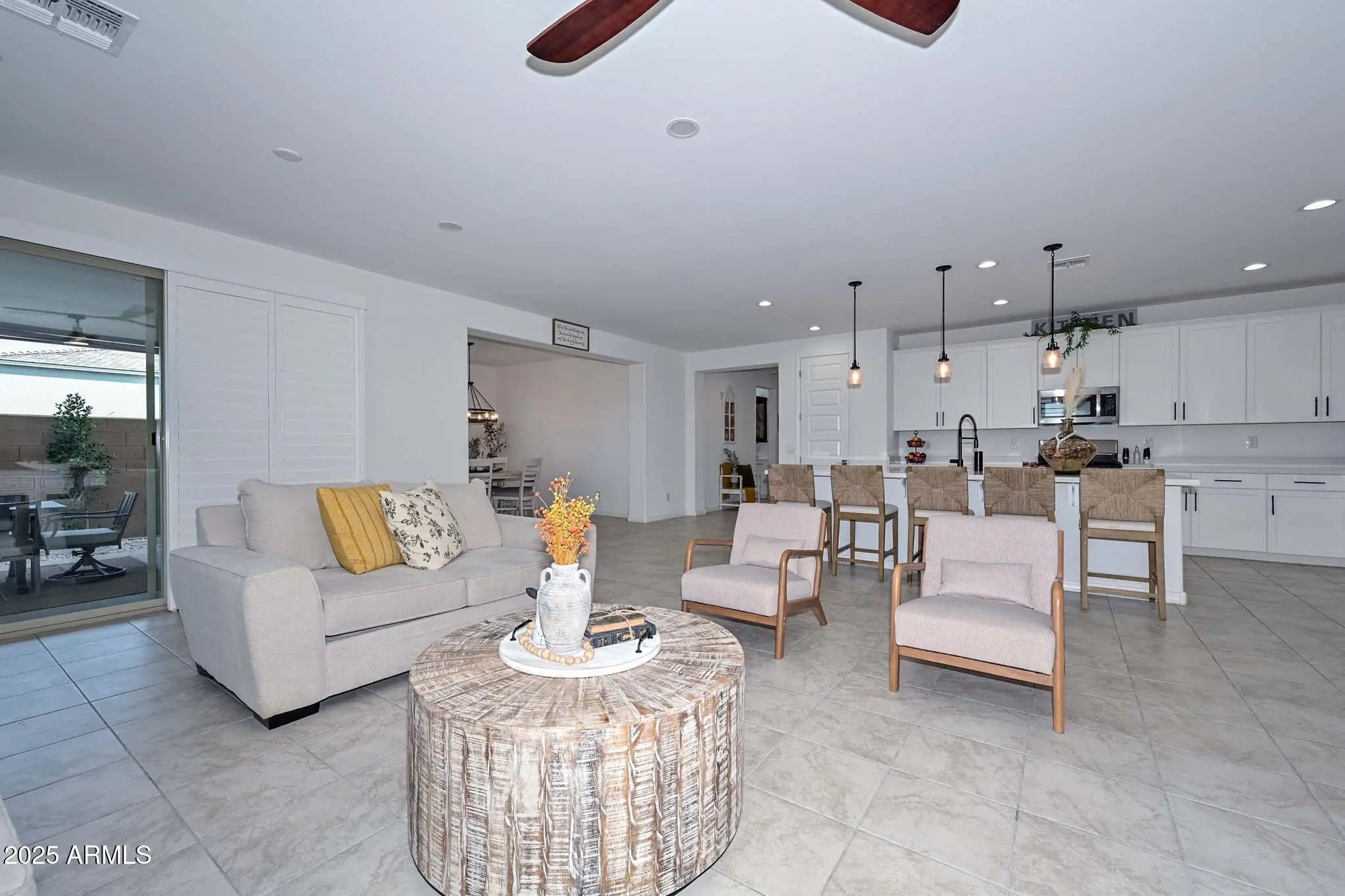 Gorgeous RV Garage Home! This pristine property feels like a model the moment you walk in. Guest bedrooms sit at the front of the home, and one offers its own bath—perfect as a second primary suite. An open den and a spacious formal dining room sit off the foyer. The dream kitchen features quartz countertops, abundant white cabinetry, a walk-in pantry, a large island with breakfast bar, and a beautiful butler's pantry. The Great Room is ideal for gatherings and opens to a backyard with covered patio, grilling ramada, firepit seating area, and lush grass. The huge RV garage stores your RV and all your toys. Must see the photos to appreciate this BEAUTY!