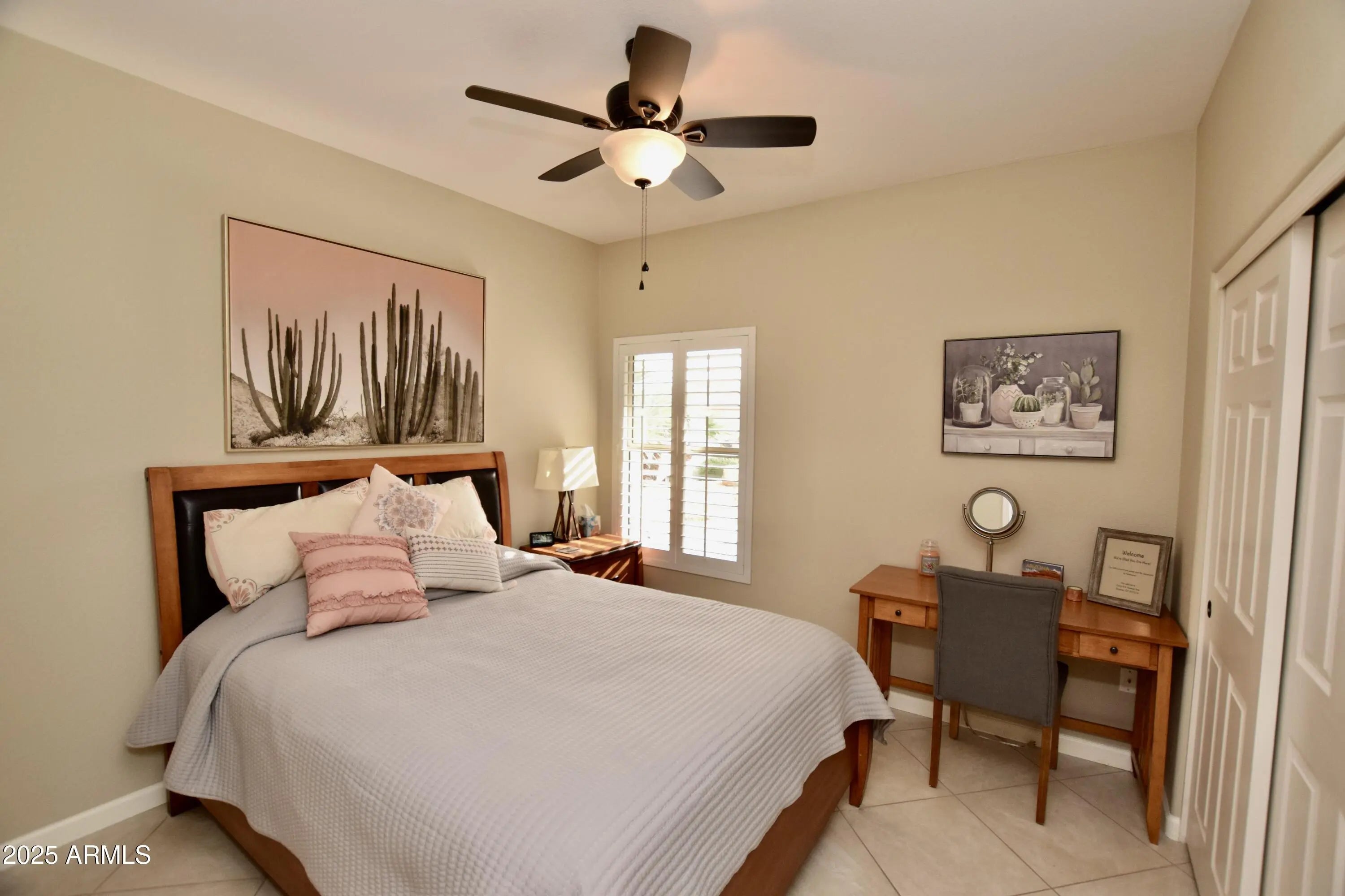 RARE OPPORTUNITY 3 BED 3 BATH WITH DUAL PRIMARY SUITES. Gorgeous primary suite permitted addition to the property creating a very spacious room, multiple closets & a fantastic primary bathroom with a large shower. The original primary also features a large bathroom and shower making two of the three bedrooms en-suite. THIS MOVE-IN READY home is updated and features an open floor plan, granite countertops, plantation shutters, and more. RESORT STYLE PRIVATE BACKYARD with no immediate neighbors behind the house with golf a few blocks away. Enjoy heated spa, mature lemon tree & beautiful pineapple palm. 4 championship golf courses, 5 swimming pools, pickleball, tennis, 2 great fitness centers, softball field, over 40 exciting special activities clubs, great restaurants, and more. ACT QUICK!
