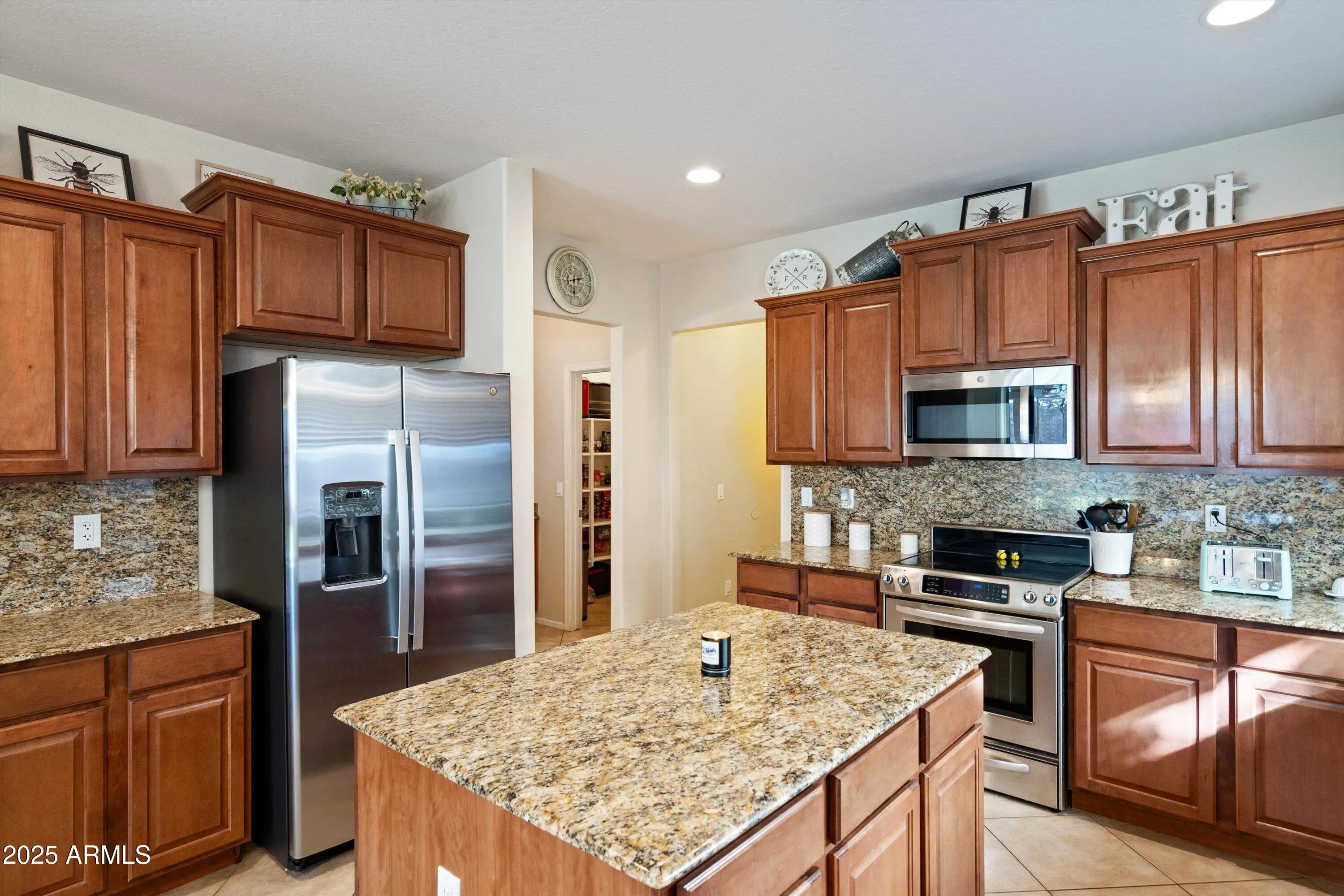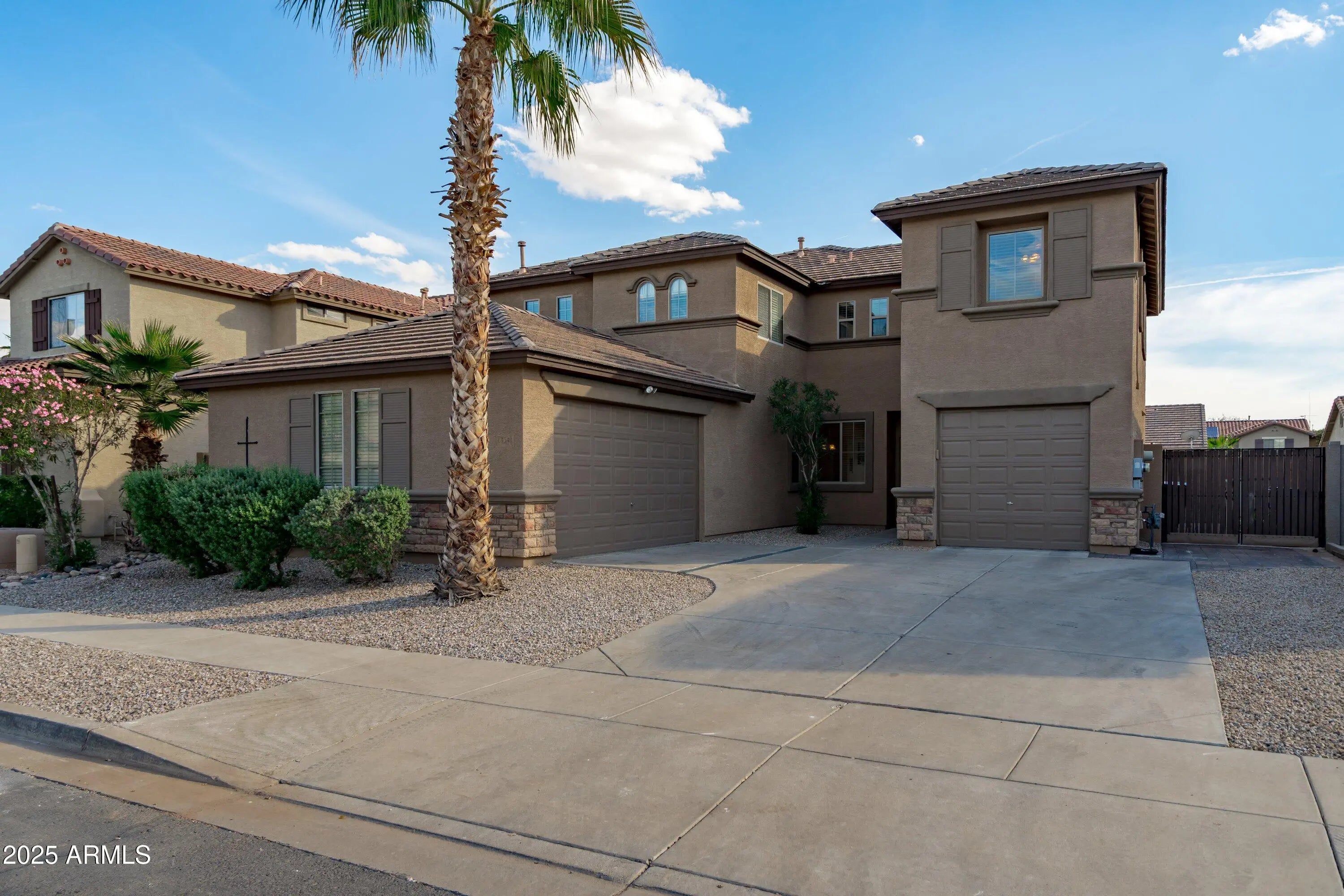 Beautifully cared for 4-bedroom + loft, 2.5-bath home located in the highly sought-after gated Copper Canyon community in Surprise (85379). Enjoy a spacious open-concept layout that seamlessly connects the kitchen, dining area, and family room, all enhanced by elegant diagonal tile flooring on the main level. The impressive eat-in kitchen features custom cabinetry, stunning slab granite countertops and backsplash, a center island, stainless steel appliances, under-cabinet lighting, a built-in desk, and a generous walk-in pantry—perfect for storage and organization. Upstairs, the primary suite offers a full bath with split double vanities, a separate soaking tub and shower, and a large walk-in closet. Step outside to a serene backyard complete with an extended covered patio, raised planters, fruit trees, a vegetable garden, mature landscaping, and an RV gate with paved access. Plus, enjoy energy savings from the leased Tesla Solar System. Conveniently located near schools, shopping, and major freewaysthis home truly has it all.