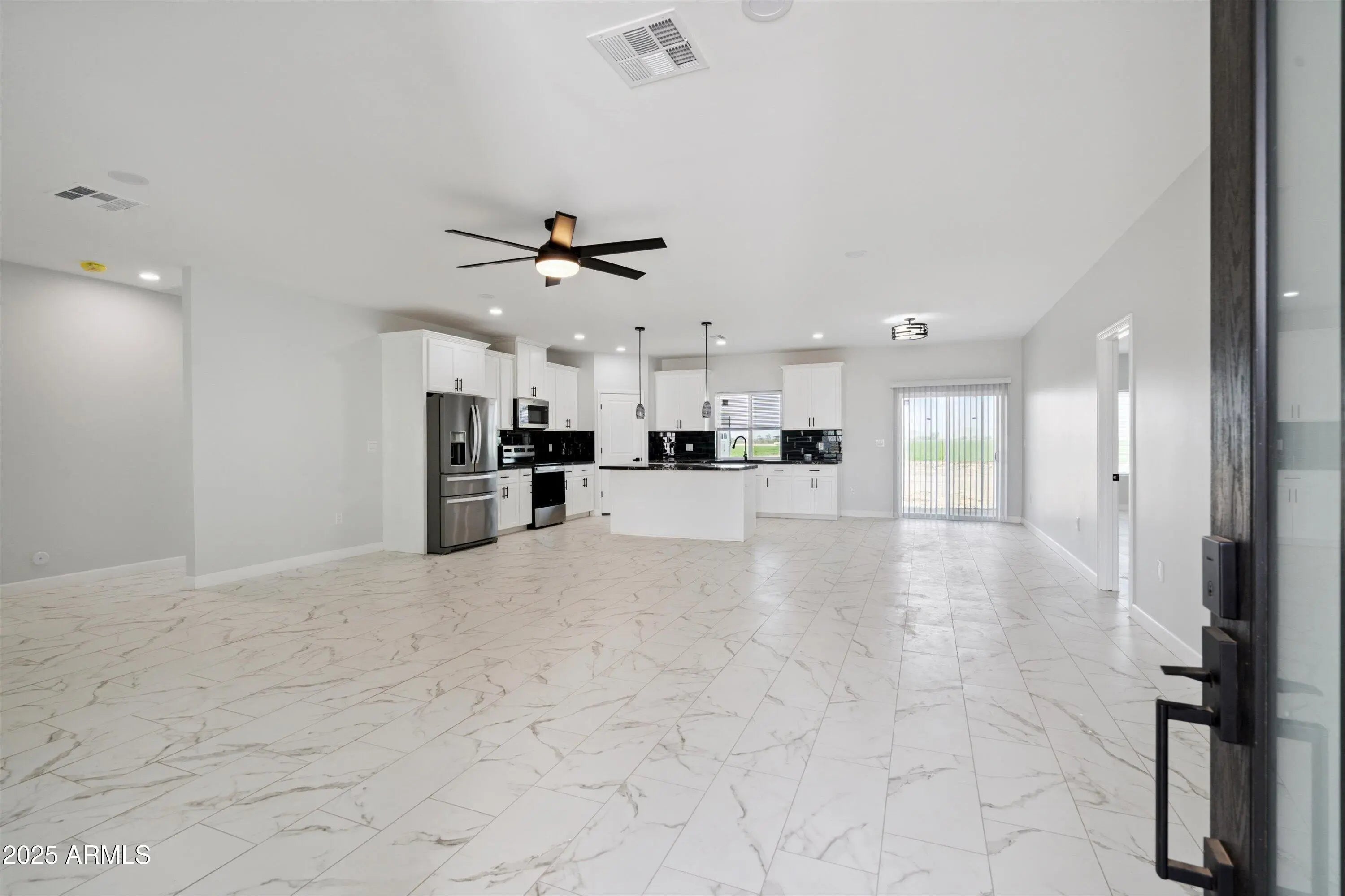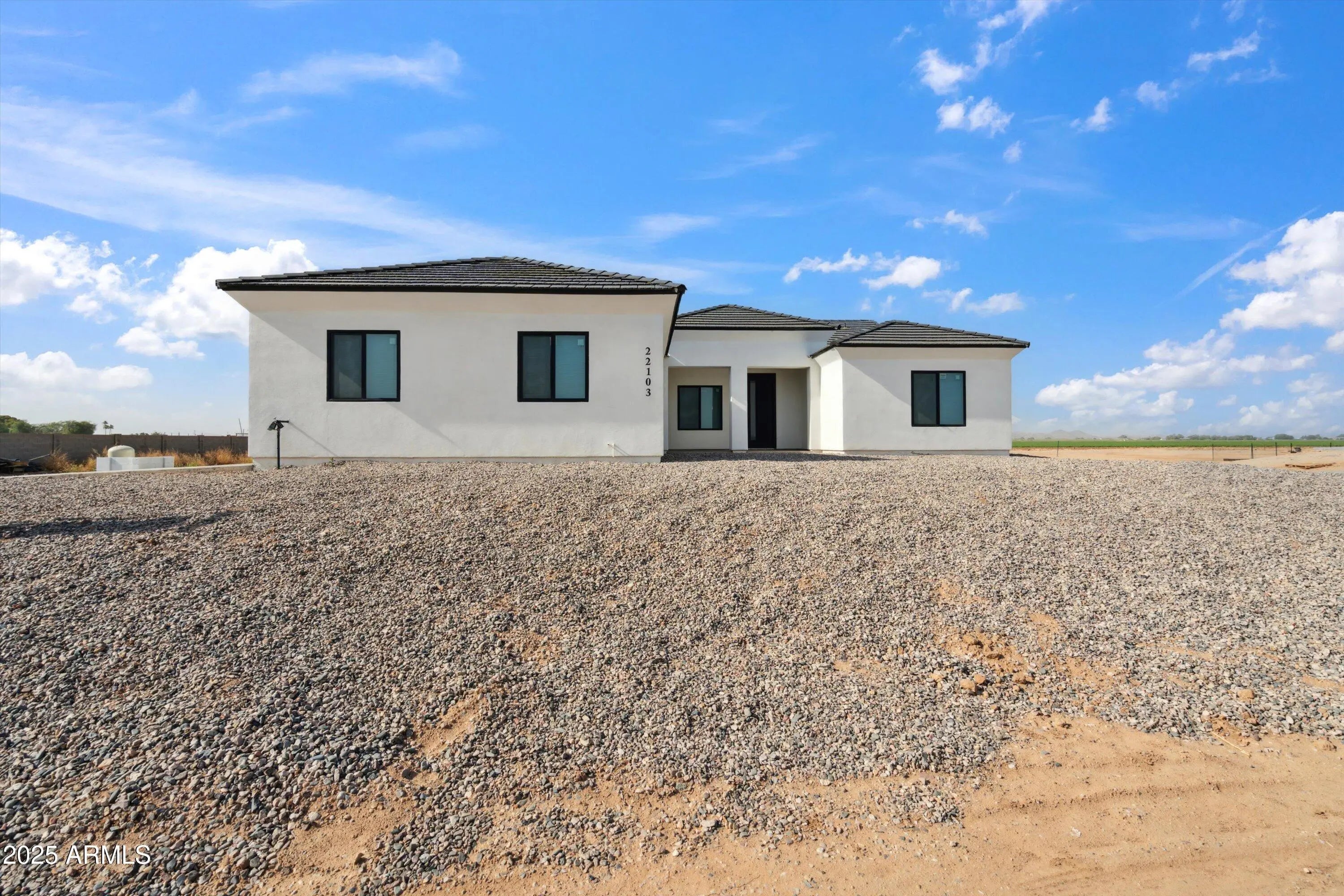 This thoughtfully designed 4-bedroom, 3.5-bath home features two spacious primary suites, making it ideal for multigenerational living, guests, or extended family. The split floor plan provides both privacy and functionality, while a Jack-and-Jill bathroom adds everyday convenience. Inside, enjoy soaring ceilings, elegant tile flooring, and a bright open-concept layout perfect for entertaining. The chef's kitchen showcases quartz countertops, stainless steel appliances, and a large center island—a gathering place for family and friends. Expansive sliding glass doors open to seamless outdoor living & showcasing wide-open desert & mountain views that define AZ living. Outside, the possibilities are truly endless. With ample space horses, a workshop, RV parking, a pool, or corrals.