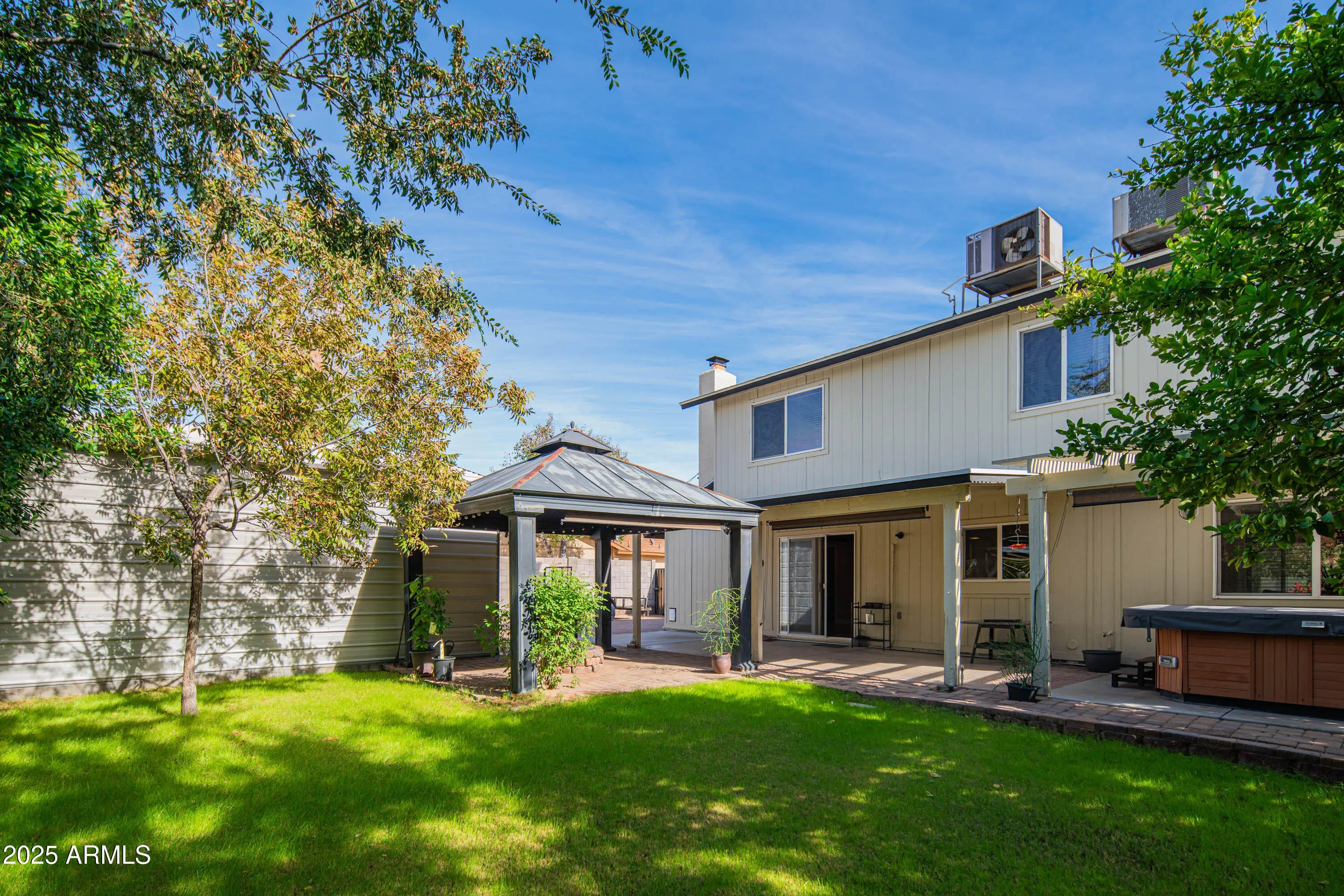 Enjoy this meticulous four-bedroom, two and 3/4 bath home with a 768 square foot workshop/RV garage and (2) 10+ foot RV gates for recreational vehicles, storage, over-sized RV, or large events. Private paradise with covered hot tub with lush grass, mature fruit trees, and a charming gazebo, perfect for outdoor relaxation. From 35th Avenue, go east on Marconi Avenue, then north on 33rd avenue, house is on west corner.