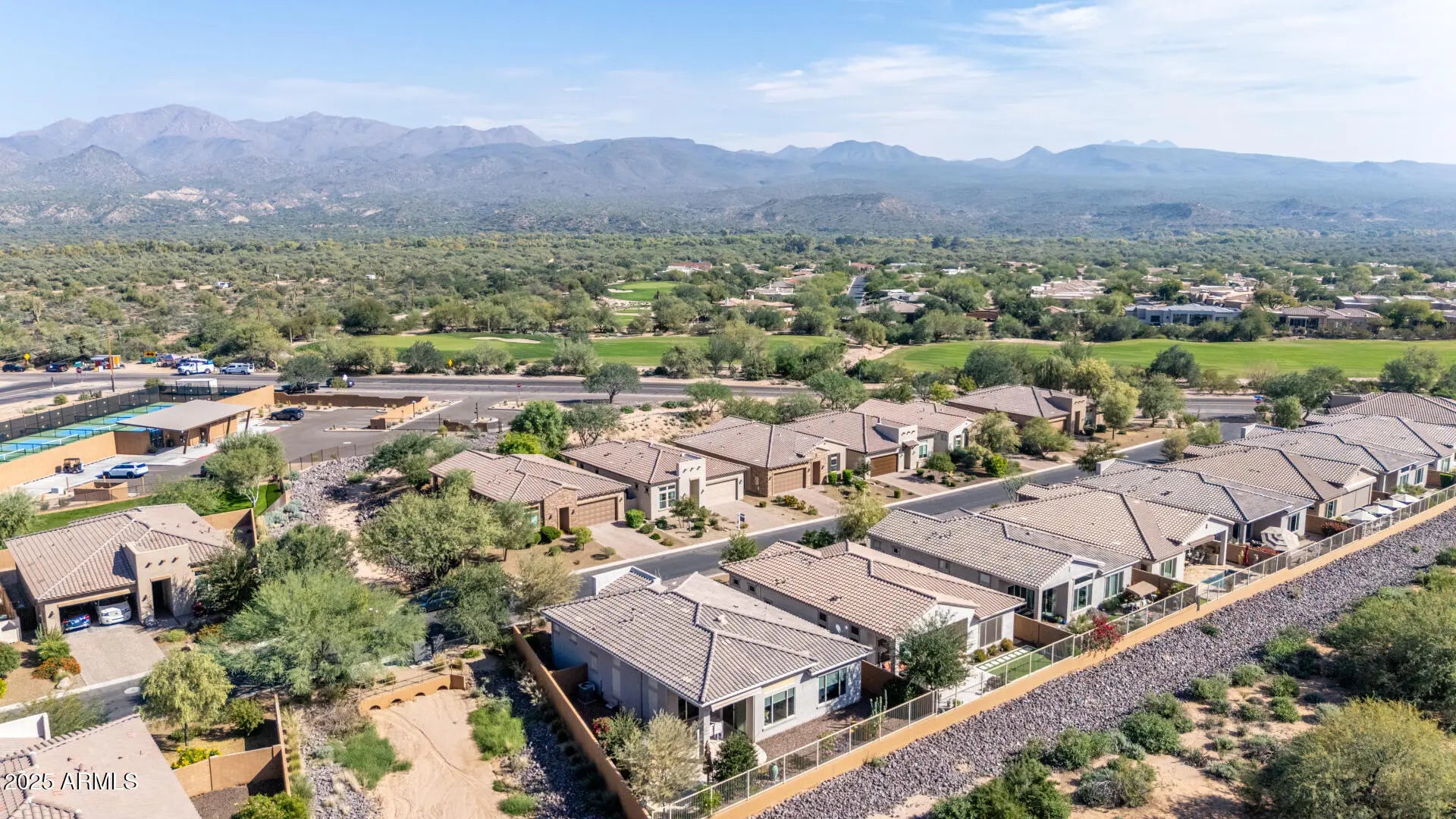 Full furnished turnkey home with high end Coppenhagen dining table & chairs, Hancock recliners, huge Sony 8K TV, custom electric fireplace by Arizona Fireplace, Hunter Douglas Roman shades, adjustable king size bed, power screen on the covered patio creates a private outdoor room, misters, water feature , firepit, retractable awning, BBQ island , snake proof fence, custom made table & chairs to view the golf course, landscape lights, Maverick ceiling fan. Find your ideal retirement haven in the 55+ gated Blue Sky subdivision, nestled within the vibrant Tonto Verde Golf Club community! Ideally positioned on one of the premium lots, offering golf course frontage & open space to the North for additional privacy. Steps away from the community mailboxes. This beautiful home provides 2 beds, 2 baths, desert landscape, great curb appeal, & a 2-car garage with electric vehicle outlet & paver driveway.The gourmet kitchen boasts high-end SS appliances, honed granite counters, tile backsplash, a pantry, white cabinets, and an island w/breakfast bar. The main bedroom has an ensuite with dual granite sinks, huge walk-in shower & a walk-in closet. Laundry room with a sink & cabinetry. The backyard is made for outdoor living! Featuring an extended travertine-covered patio for gatherings, a cozy fire pit for cool evenings, and a built-in BBQ island ready for weekend cookouts. All of this is set against stunning golf course and mountain views that elevate every moment spent outside. PLUS! Enjoy the club lifestyle with access to on-site dining, a heated pool & spa, a fully equipped fitness center, and a variety of social clubs that can be accessed by golf cart path. Within walking distance to the new pickleball courts & dog park. See it! Love it! Live it!