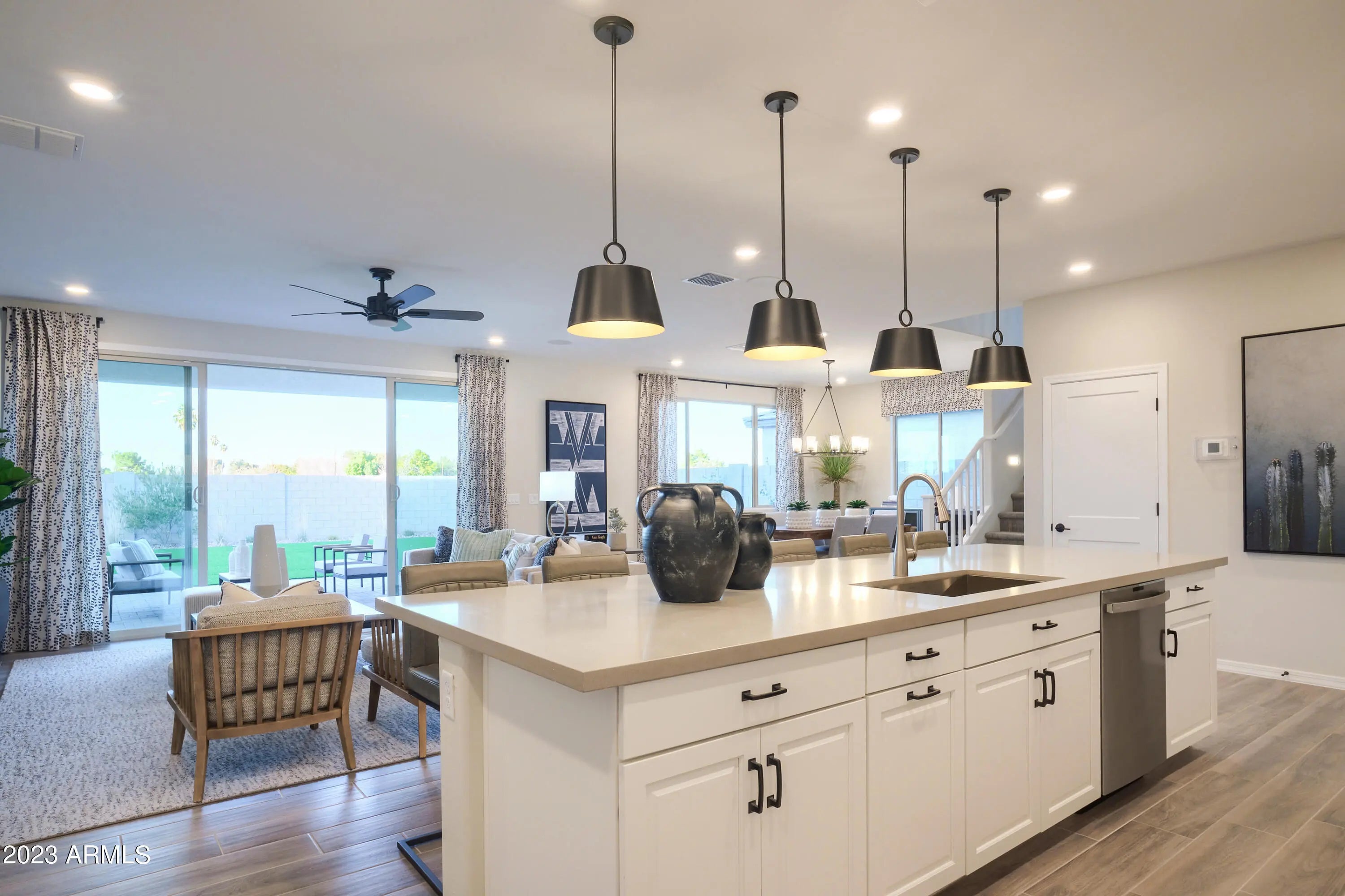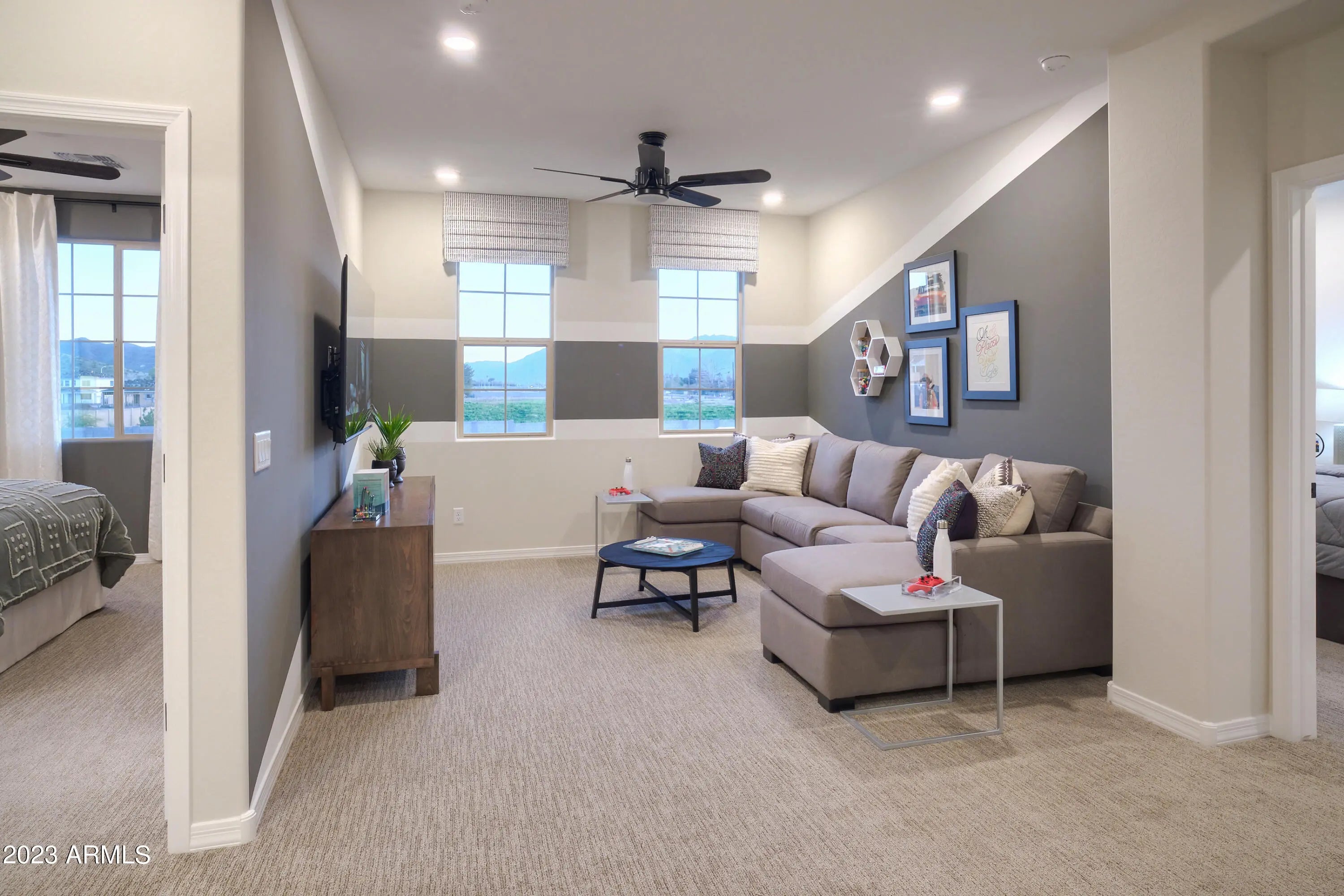 Welcome to your dream home—ready for quick move-in and perfectly suited for RV or toy owners seeking space and style on a generous lot! This stunning two-story residence features 4 spacious bedrooms, 3 full bathrooms, and a versatile upstairs loft. The first floor includes a private guest suite ideal for visitors or multi-generational living. At the heart of the home is a chef's kitchen equipped with gourmet appliances, double ovens, a gas cooktop, an oversized island, elegant linen cabinetry, and gleaming quartz countertops. The open-concept layout flows seamlessly into the expansive great room and dining area, perfect for entertaining. Step through the impressive 12' sliding glass door to a large backyard with mountain views—your personal oasis for gatherings and relaxation. The lower level boasts stylish wood plank tile throughout, with plush carpet reserved for the guest suite. Upstairs, the owner's suite and additional bedrooms all feature walk-in closets and abundant storage. This beautifully finished home is move-in ready, and the seller is offering closing cost assistance and interest rate buydown incentives. Photos shown are of the model homedon't miss your chance to make this one yours!