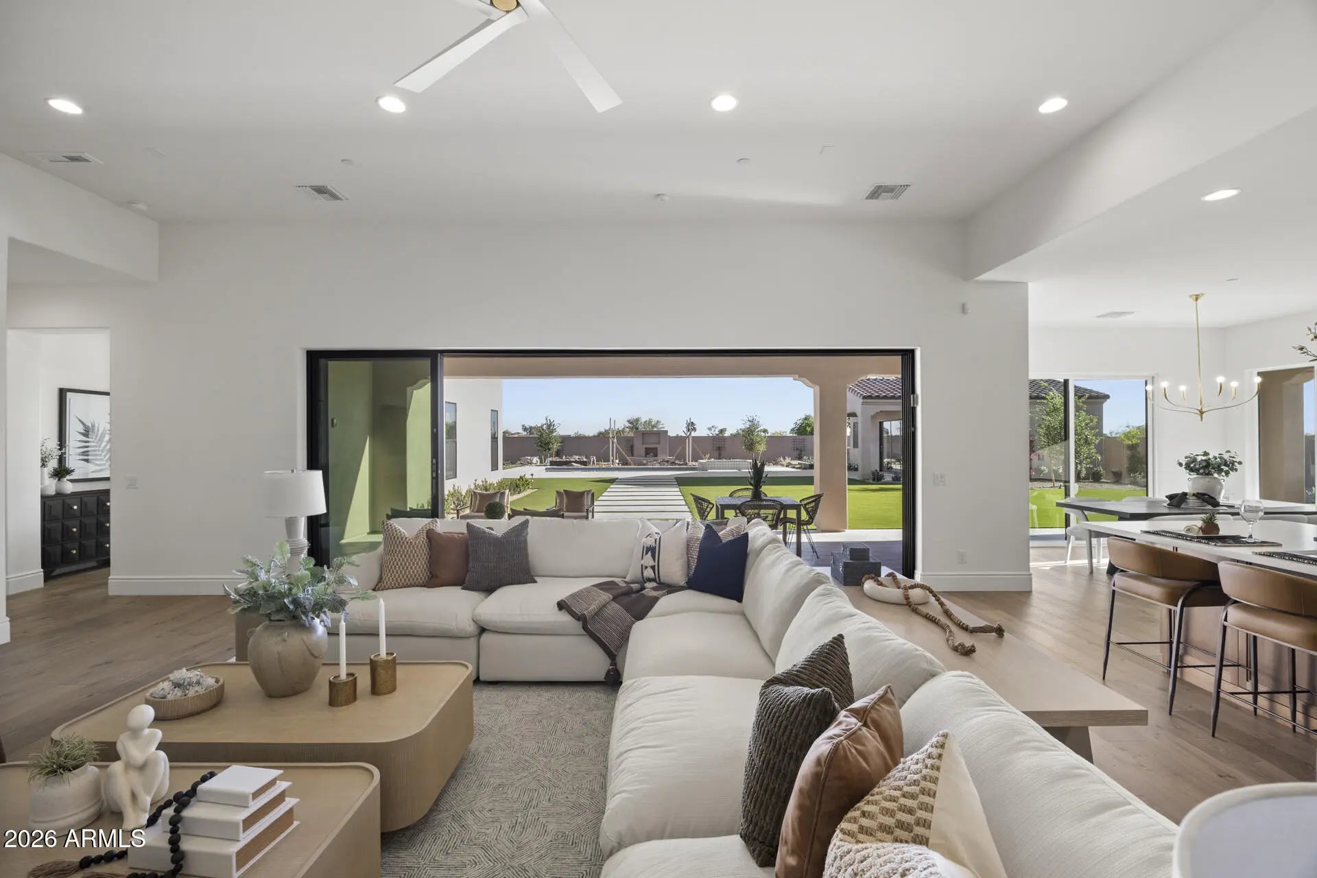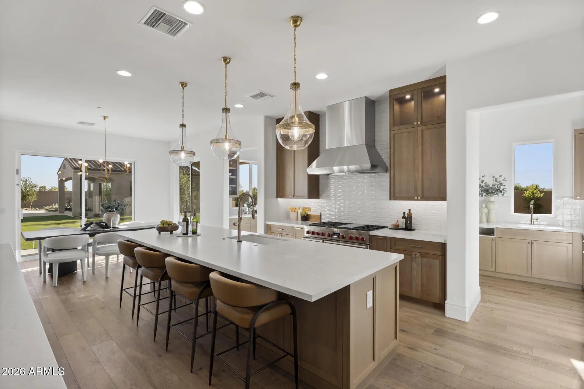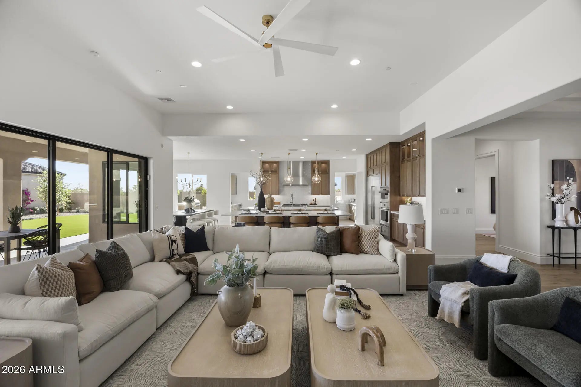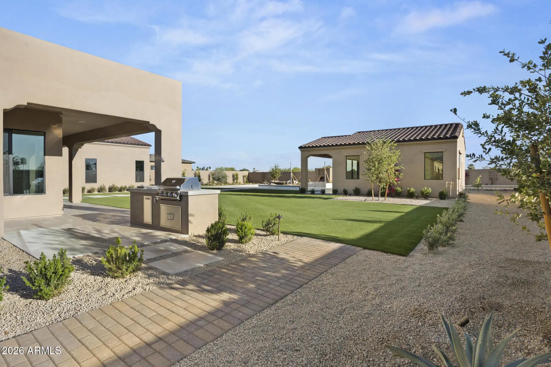 One of the final opportunities to own new construction in the prestigious Shea Corridor at Emerald Hills by Cachet Homes. This exclusive enclave features only seven expansive ¾-acre homesites, each showcasing a thoughtfully crafted, custom-designed residence. Enter through a dramatic foyer into a stunning great room highlighted by 20-foot stacking glass doors that seamlessly open to views of the sparkling pool, spa, ramada, and private pool house. The chef's kitchen is a true showpiece, featuring WOLF, SUB-ZERO, and COVE appliances, complemented by a butler's pantry, wet bar, dual islands, and custom cabinetry. The luxurious owner's suite offers a spa-inspired bathroom and an oversized walk-in closet. With three additional ensuite bedrooms, a private casita, and a detached pool house this home provides an abundance of space for living and hosting. Outside, enjoy low-maintenance turf, generous patios, and endless Arizona sunsets an ideal blend of elegance, comfort, and convenience.