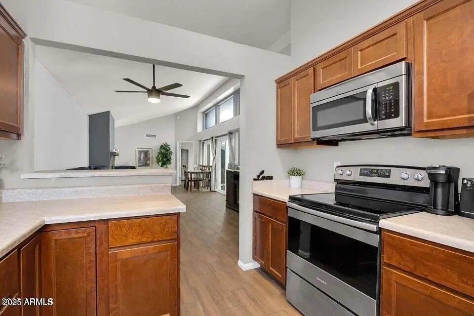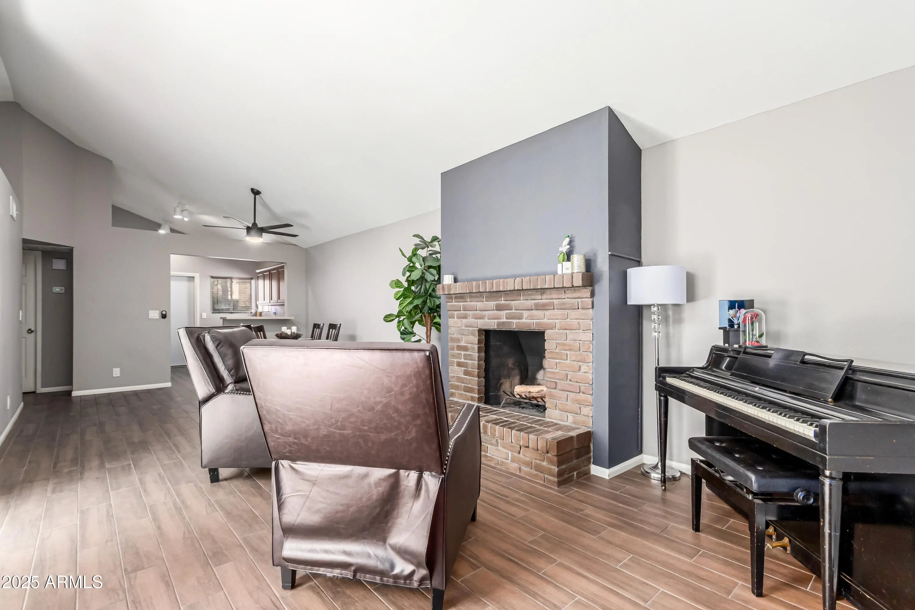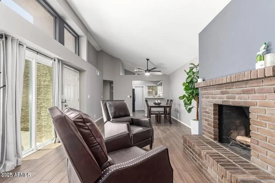 This amazing updated 3 bed, 2 bath home is ideal for anyone craving low-maintenance living with just the right amount of charm. Vaulted ceilings, great natural light, and a cozy wood-burning fireplace make the space feel open and inviting. Step out to your private patio—accessible from both the living room and primary suite—perfect for your morning coffee or winding down under the string lights. Recent updates include a newer roof and patio sliders (both 2020), plus an attached 2-car garage for extra storage. You'll also enjoy access to the community pool and BBQ area. Tucked away but close to it all, you're just minutes from Dana Park, top-rated dining, shopping, and easy freeway access to Mesa, Gilbert, Tempe, and Sky Harbor. This home is move-in ready and made for your lifestyle.