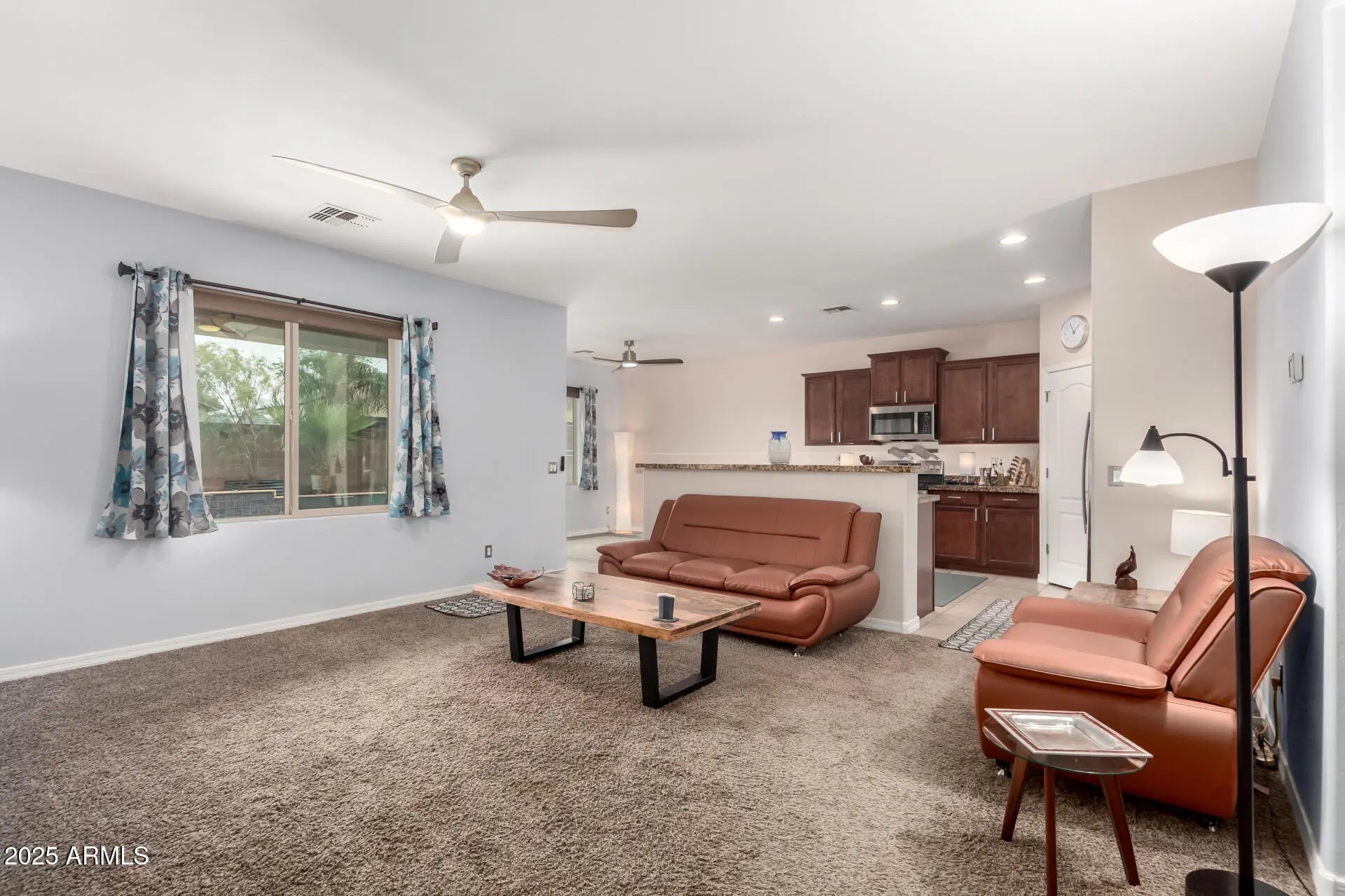 This inviting 4-bedroom, 2-bath home in the Blue Hills neighborhood of Buckeye offers an open, bright layout designed for everyday living. The spacious kitchen opens to the main living area and features GE stainless steel appliances, rich dark cabinetry, granite countertops, a cozy breakfast nook, and a generous walk-in pantry. The primary suite includes an ensuite bath and a large walk-in closet. Additional features include a 2-car garage, RV gate, and Eufy Bluetooth security cameras that convey with the sale. The backyard includes a pool—currently drained for winter but fully functional when filled—and borders a common area, providing added privacy with no neighbor to the west. A fantastic property with comfort and convenience in every room!