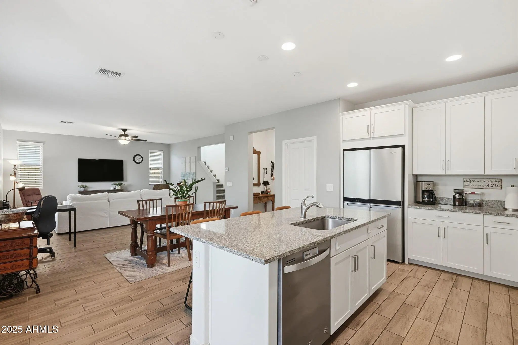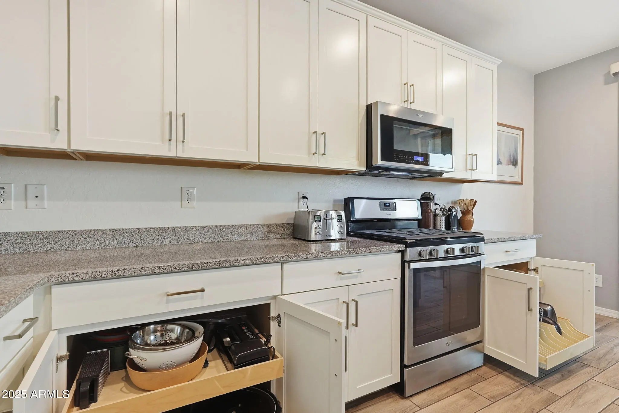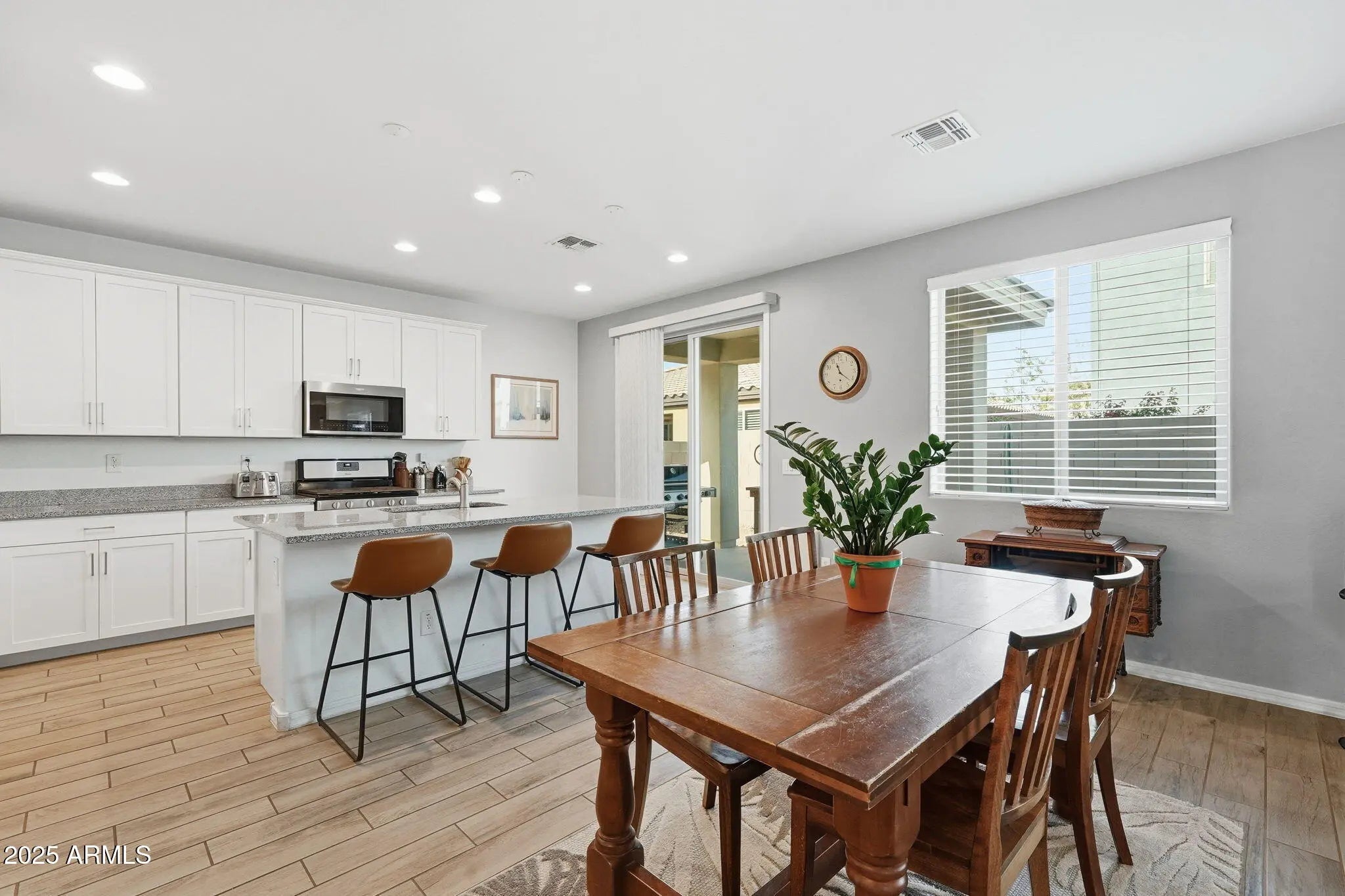 Welcome to Inspirian Park at Eastmark—just minutes from the community clubhouse, resort-style pool, fitness center, splash pads, parks, playgrounds, Steadfast Diner, and top-rated schools. This beautifully upgraded 4-bed, 3-bath, 2,503 sq ft home offers a bright, open layout with granite kitchen counters, upgraded white linen cabinets, stainless-steel Whirlpool appliances, a gas range, and convenient rollout shelves in the kitchen and throughout the home. Added features include wood-plank tile flooring, upgraded carpet and pad, custom paint, enhanced lighting, and multiple electrical upgrades. Upstairs, you'll find a large loft, generous storage, and a spacious primary suite with a separate tub and shower plus a large walk-in closet. Explore a wide variety of dining options just minutes— away from a variety of dining options, including a local favorite, Craft Culture, along with convenient access to shopping, entertainment, and major freeways for an easy commute across the East Valley. This is Eastmark living at its finest.