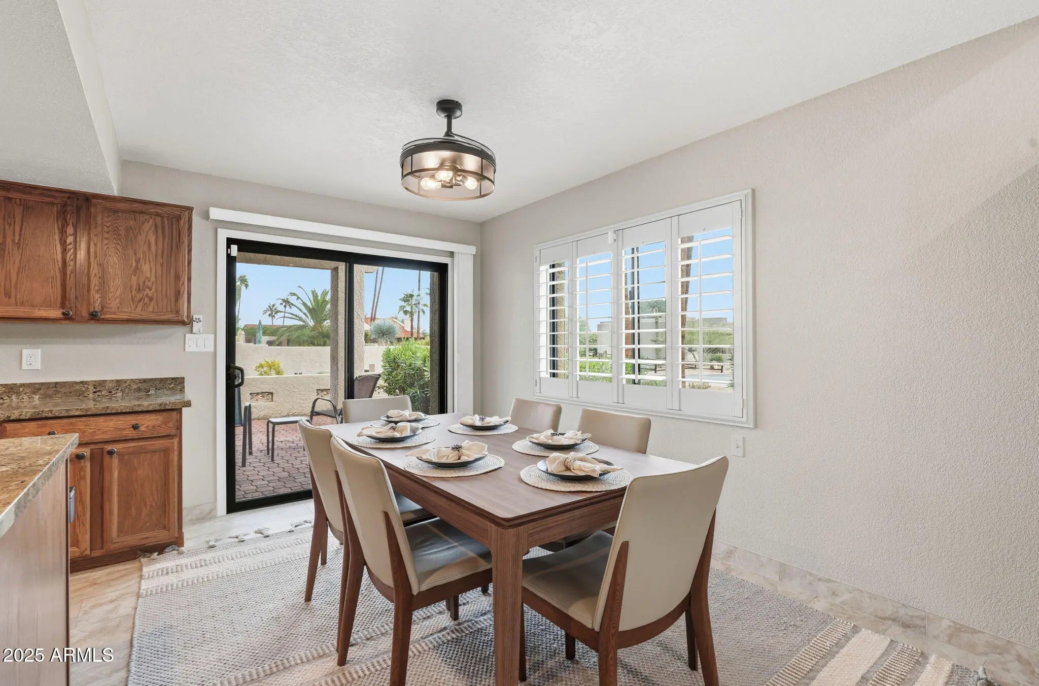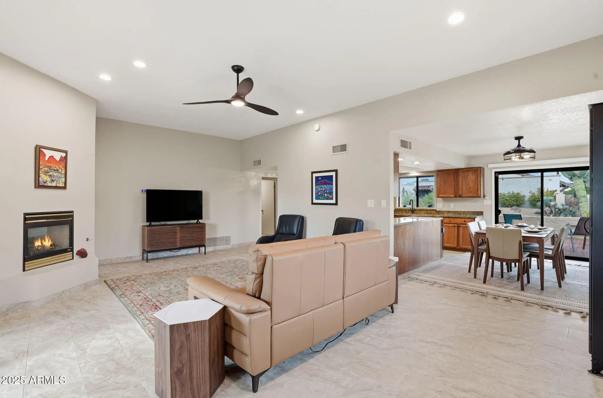 Turnkey sale, all furniture and accessories convey! This upscale 3 bed, 3 bath home with a split plan Mother-in-Law Suite sits on a desirable corner lot in the 55+ Rio Verde Golf Community and has many recent upgrades! Gorgeous desert landscaping and a custom wrought iron door welcome you into a bright, elegant interior featuring stylish shutters, exquisite tile flooring, and a cozy fireplace. The gourmet kitchen boasts stainless steel appliances, granite counters, and abundant cabinetry. The new modern master bath offers dual sinks and a large walk-in tiled shower. Enjoy new patio doors, serene outdoor spaces with courtyard mountain views and an intimate backyard fire pit with lots of privacy. Move-in ready. Enjoy Rio Verde's golf, dining, fitness, and resort amenities! Welcome home!