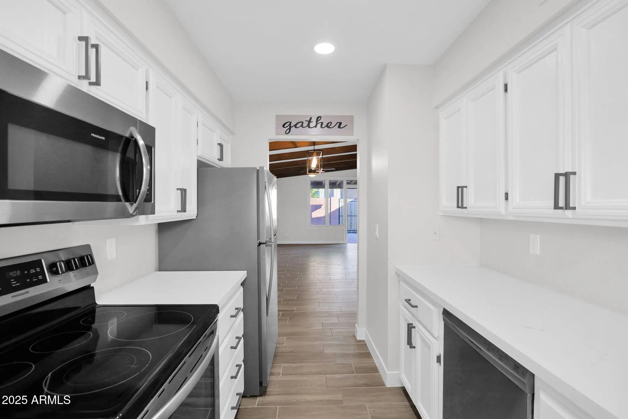 Stacked Washer/Dryer, Refrigerator, Dishwasher, Disposal, Electric Cooktop