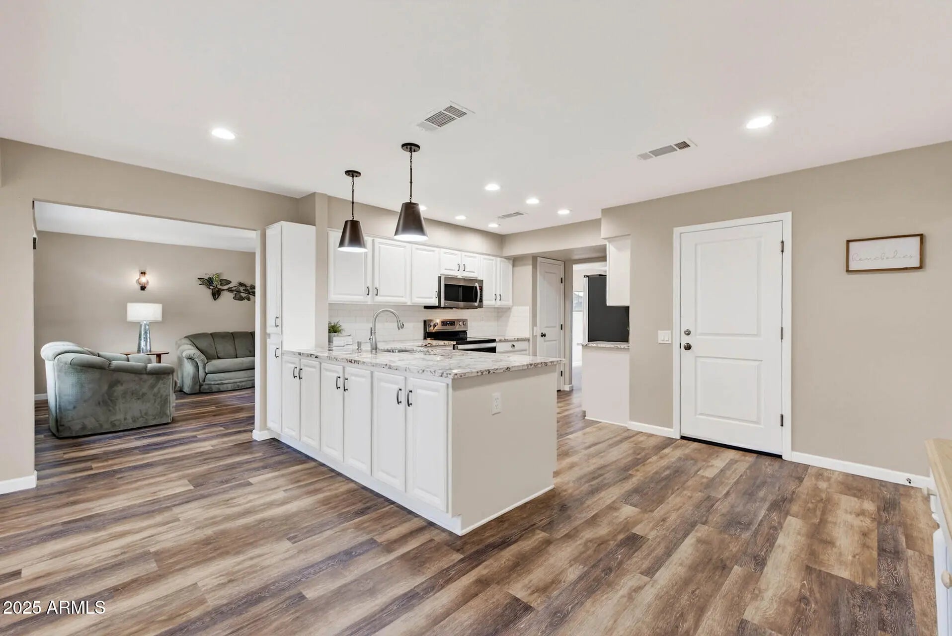 Welcome to this BEAUTIFULLY REMODELED & lovely, FURNISHED Wilmington-plan with 2 beds/2 baths & a versatile BONUS ROOM for crafts/office or utility. Between 2020-2023 this home received a FULL REFRESH including a stunning NEW KITCHEN with cabinets, granite counters & appliances, updated BATH VANITIES, SMOOTH CEILINGS, newer WINDOWS, interior DOORS, expanded primary closet, EXPANDED BREAKFAST AREA w/ FRENCH DOORS--to a lovely covered patio & open backyard--all new LIGHTING, LVP FLOORING, bedroom carpeting, interior paint & fixtures. At that same time, curb appeal blossomed with updated LANDSCAPING, new ROOF, exterior paint, patio cover, new GARAGE CABINETRY with EPOXY FLOOR & a 30-AMP RV PLUG. Enjoy it all in this award winning Active Adult Community, Sun City West.