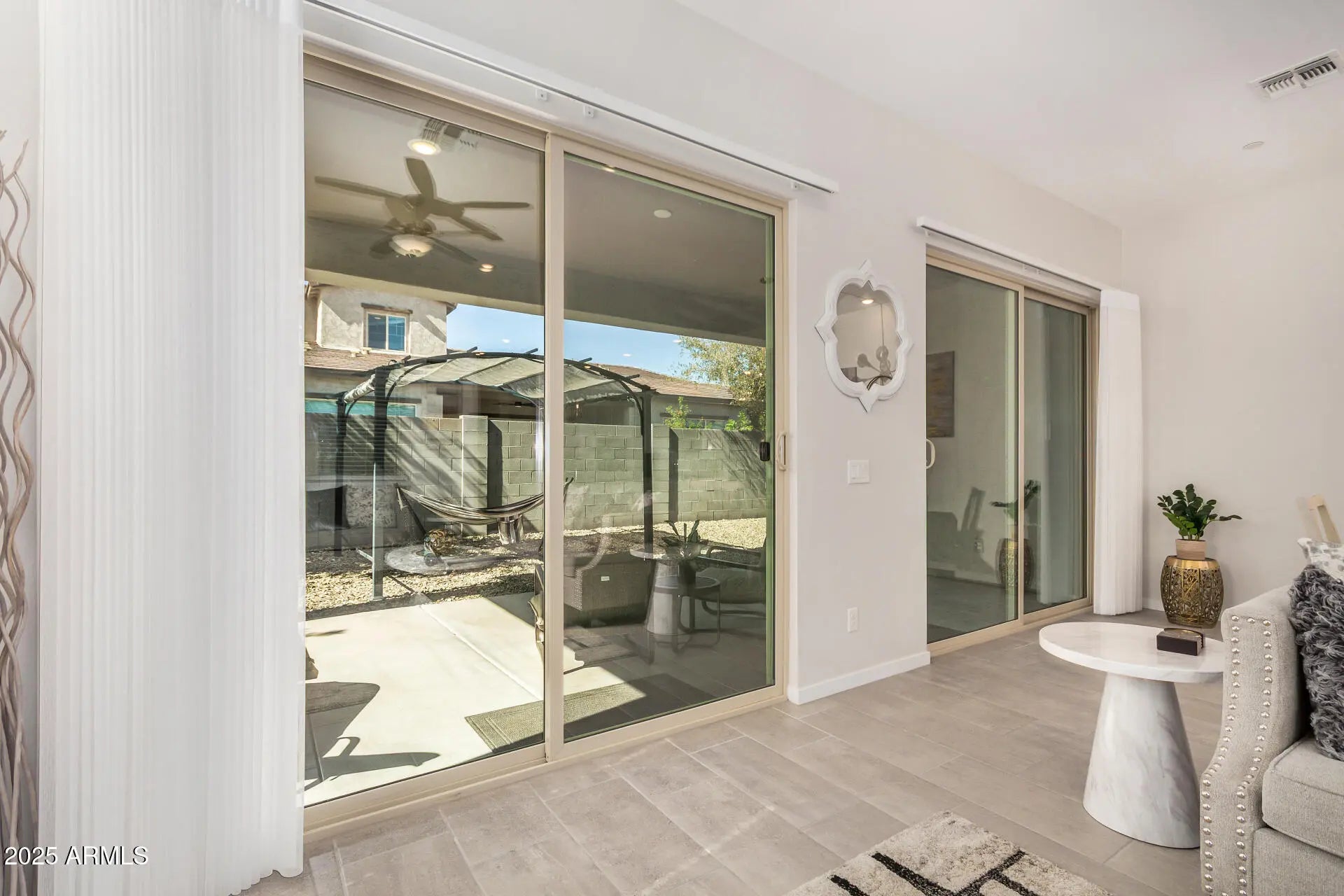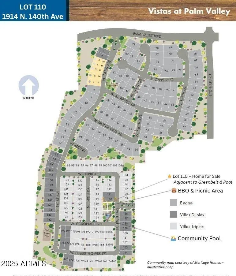 Palm Vista Retreat - 6-month furnished seasonal lease in gated The Vistas at Palm Valley, Goodyear. Fully turn-key single-level 3-bed, 2.5-bath with 10-ft ceilings and FOUR 8-ft sliding glass doors delivering seamless indoor-outdoor flow to the extended covered patio and private palm-lined courtyard. Designer-furnished throughout: king primary suite, one queen and bunkbed in guest rooms, smart TV in great room + primary, high-speed Wi-Fi, gourmet kitchen with quartz counters, gas range, Whirlpool stainless appliances, fully stocked pantry, all linens, towels, patio furniture & gas BBQ. Exceptional privacy and abundant natural light. Quiet luxury: plush carpeting in bedrooms only, new custom window treatments. Steps from the resort-style pool, lounge area, and grill pavilion. CLICK MORE Palm Valley is a 9,000-acre master-planned community that has become the West Valley's most desirable residential hub a palm-lined enclave known for its golf courses, open green spaces, and relaxed resort-style feel. Minutes away, Goodyear's new Civic Square at GSQ and City Hall bring a walkable urban energy to the area with outdoor yoga, concerts, food trucks, and seasonal events. Local dining, shopping, and recreation continue to flourish, with easy freeway access and major employers nearby. This home is located in one of Palm Valley's most sought-after micro-communities: Electronic controlled-access gate (resident-only entry). Quiet, low-traffic streets, well-lit at night; the ideal lock-and-leave lifestyle for executives, snowbirds, and Spring Training professionals. FULLY FURNISHED & STOCKED - JUST BRING YOUR SUITCASE - King primary suite + queen guest room + queen/twin bunk (sleeps 6-7 comfortably). GOODYEAR / PALM VALLEY PRIME LOCATION: >>Palm Valley Golf Club - 1.3 mi >>Goodyear Ballpark (Guardians & Reds) - 3.8 mi >>Wigwam Resort - 4.4 mi >>Trader Joe's (new), Sprouts, Target, Starbucks, LifeTime Fitness - 1.8-2.5 mi >>I-10 on-ramp - 1.1 mi (Sky Harbor ~25 minutes) >>Civic Square at GSQ / City Hall - ~5 minutes >>Abrazo West Hospital - ~7 minutes >>Loop 303 - ~10 minutes Palm Valley's combination of security, convenience, and lifestyle paired with this home's premium lot and furnished readiness makes it one of the strongest executive-level rental offerings in Goodyear.