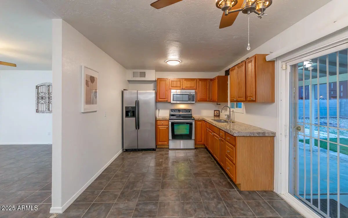 Welcome home to this delightful single-story gem nestled in South Phoenix, where comfort meets opportunity. This move-in ready 3 bed, 2 bath home features a one-car garage and a thoughtful layout for everyday living. Inside, enjoy an indoor laundry room with washer included and a fully equipped kitchen with refrigerator, oven, and microwave. A full block wall surrounds the yard, plus a backyard gate for vehicle access—perfect for parking a car, an RV, a trailer, or any equipment. Located next to the nationally ranked BASIS school - convenient for families seeking top-tier education. This home offers comfort, privacy, and practicality—the ideal place to start your next chapter.