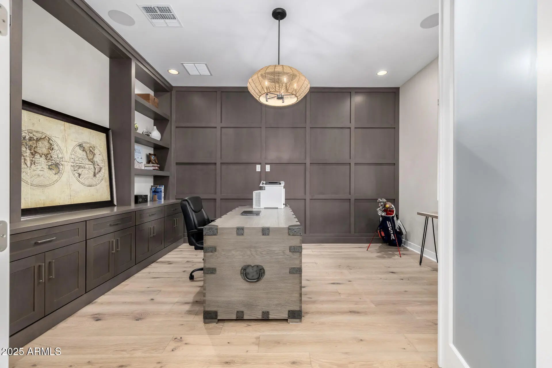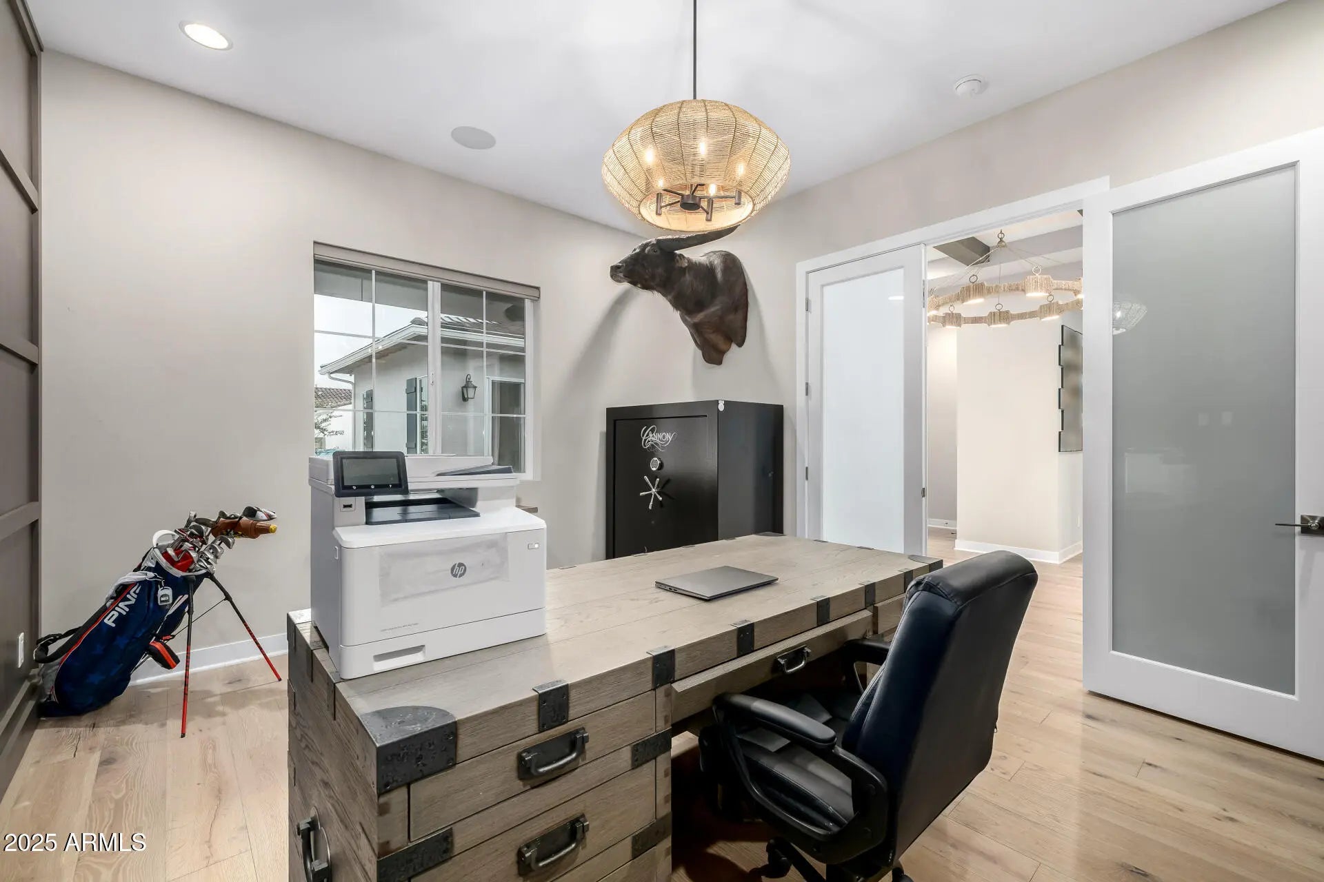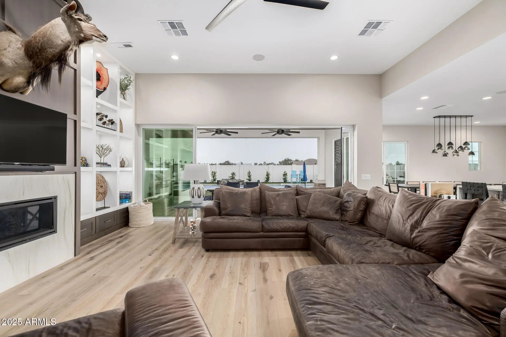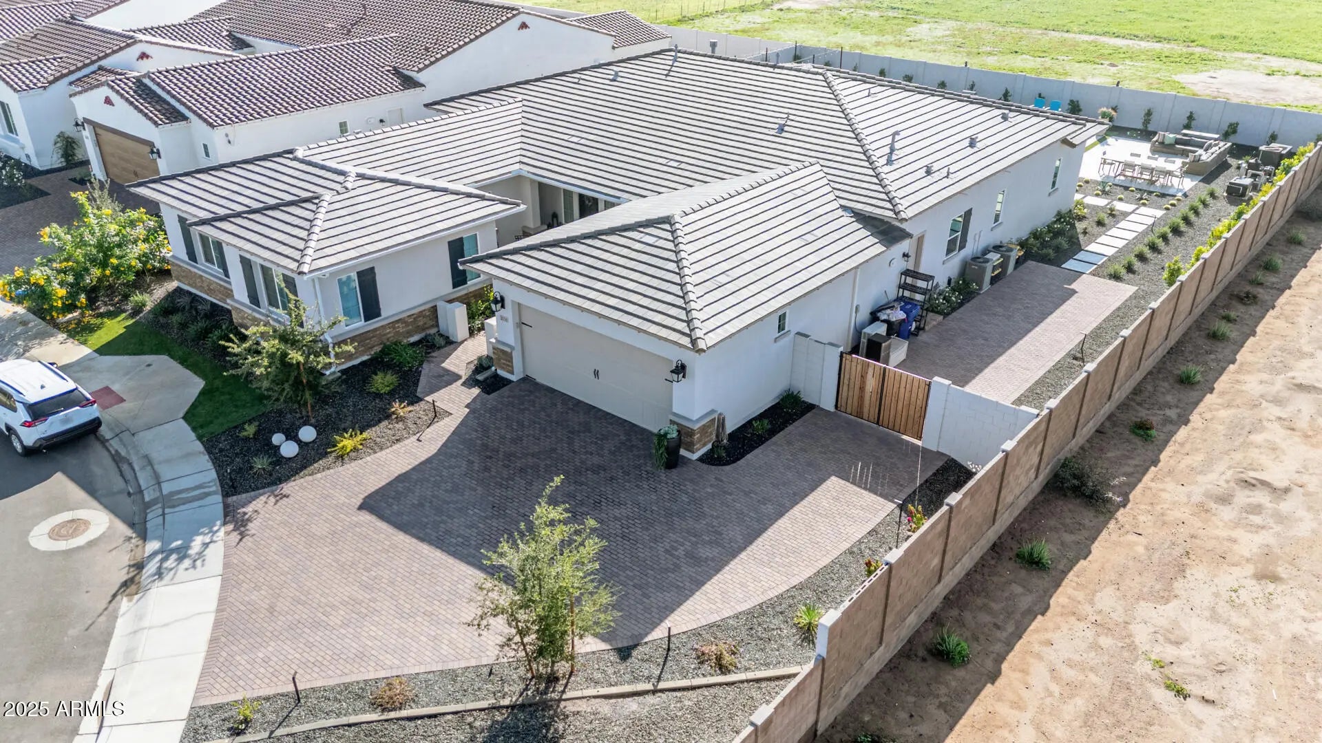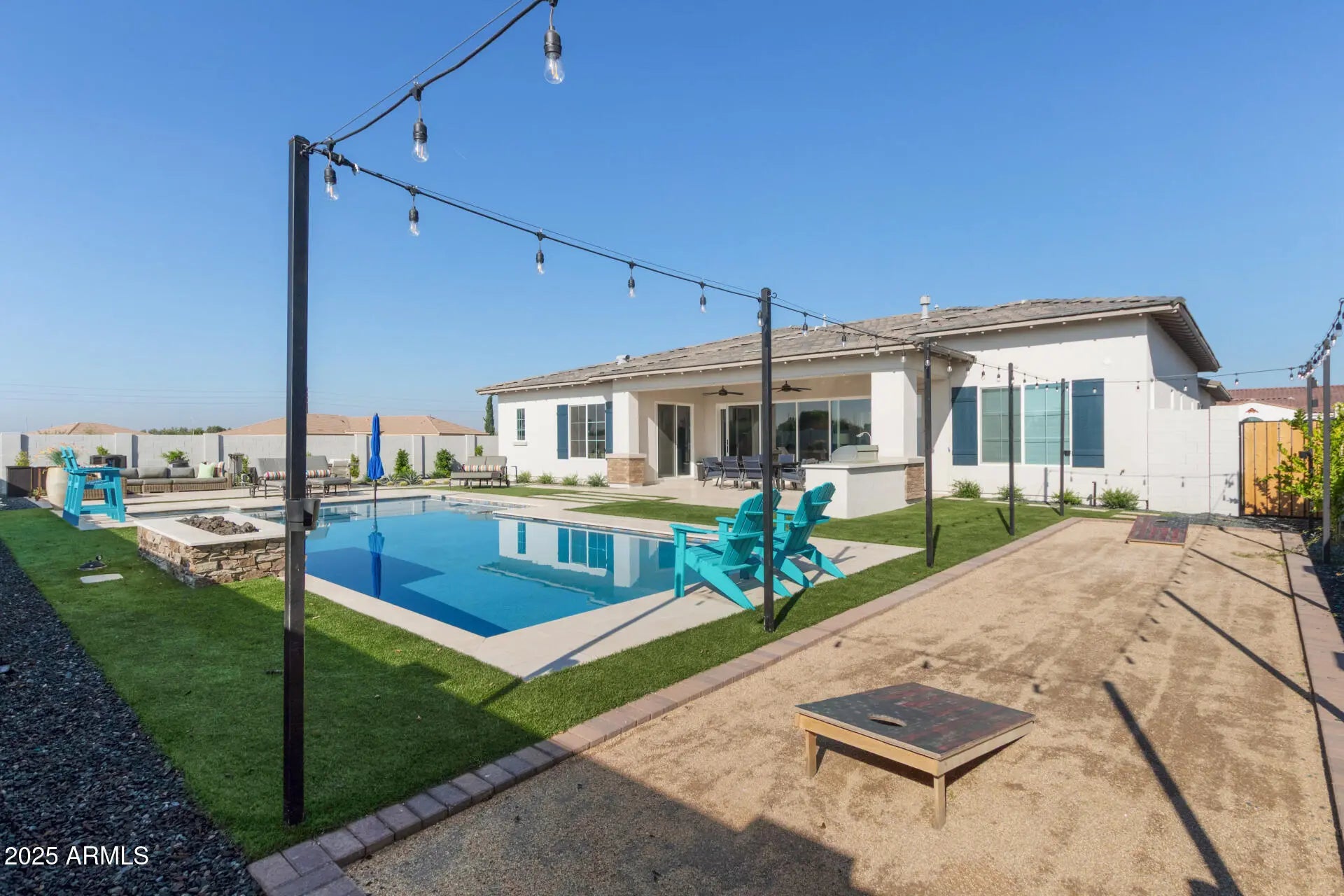 Available as a fully furnished 6-12 month rental, this exceptional home offers true resort-style living with premium finishes and extensive indoor/outdoor upgrades. Enjoy hardwood floors throughout and a luxurious primary suite featuring a custom master closet complete with an island, built-in cabinetry, and abundant storage. All bathrooms include upgraded showers with handheld wands, and the primary bathroom features a stunning walk-in shower with a ceiling-mounted rain head for a spa-like experience. The backyard is a private oasis with a heated and cooled pool, spacious Baja step, in-pool seating with umbrella, and an attached hot spa or cold-plunge spa. Outdoor living is elevated with patio misters, a whole-yard sound system, stylish furniture, and a dramatic water-and-fire feature. A dedicated Bocce Ball and Cornhole area with cooling foggers, plus a real-grass dog run, create an entertainer's paradise. Double gate access leads to an oversized parking area ideal for small trailers or extra vehicles. Inside, the home includes TVs throughout, a dedicated media room, and a large office with custom built-ins and whole-home Wi-Fi hotspot coverage. The garage is climate-controlled with both A/C and heat, offering flexible use options. The chef's kitchen is fully upgraded with Thermador appliances, including a steam oven, large convection oven, built-in coffee/espresso maker, 48" refrigerator/freezer, 20-lb ice maker, six gas burners with built-in griddle, double dishwashers, and an extra-large washer/dryer. For outdoor cooking, enjoy a premium 48" built-in Recteq stainless steel pellet smoker with lighting and storage drawers. Note: Seller requests to activate the listing on MLS today using current photos. Updated outdoor photography will be added next Monday.