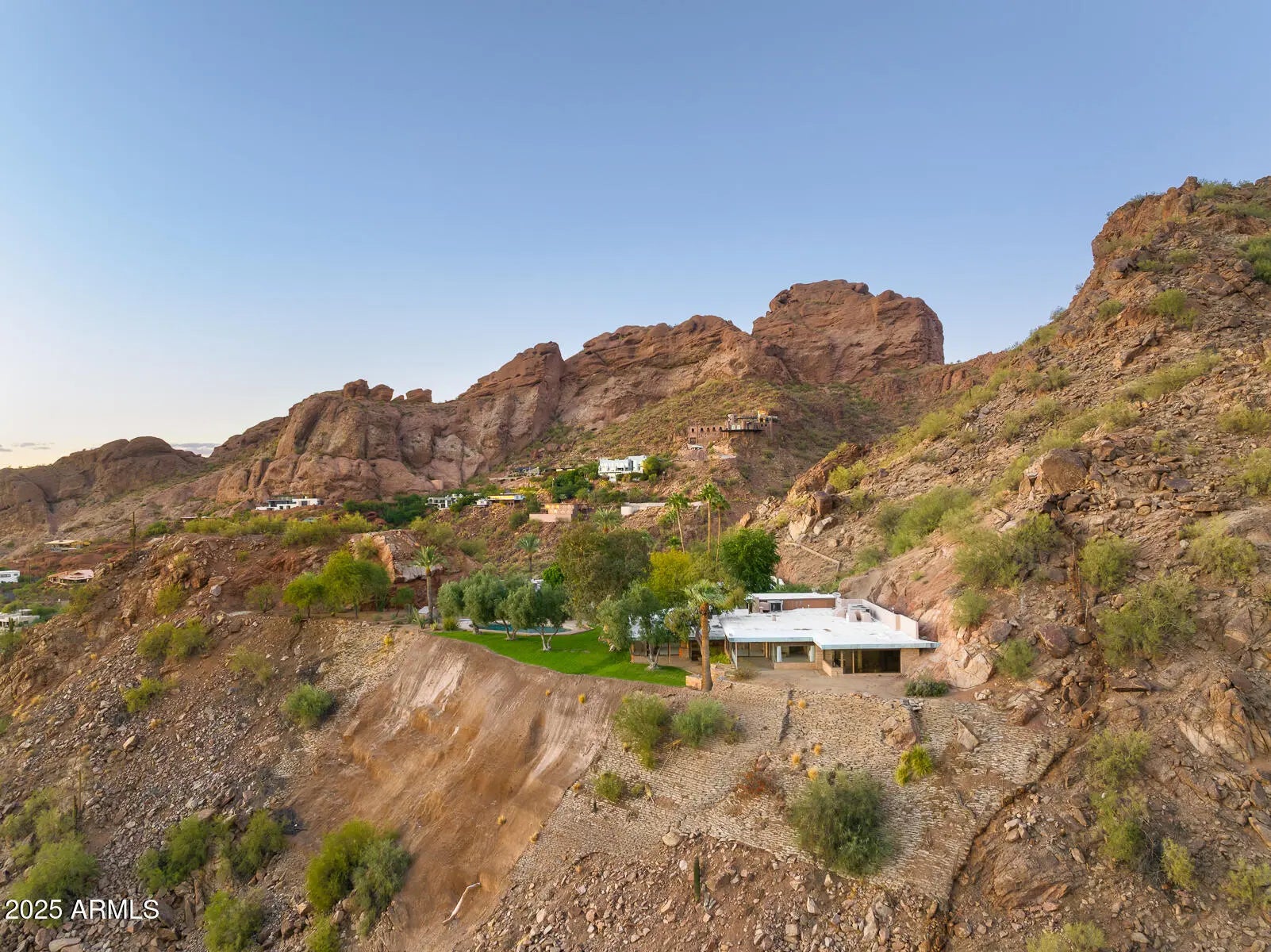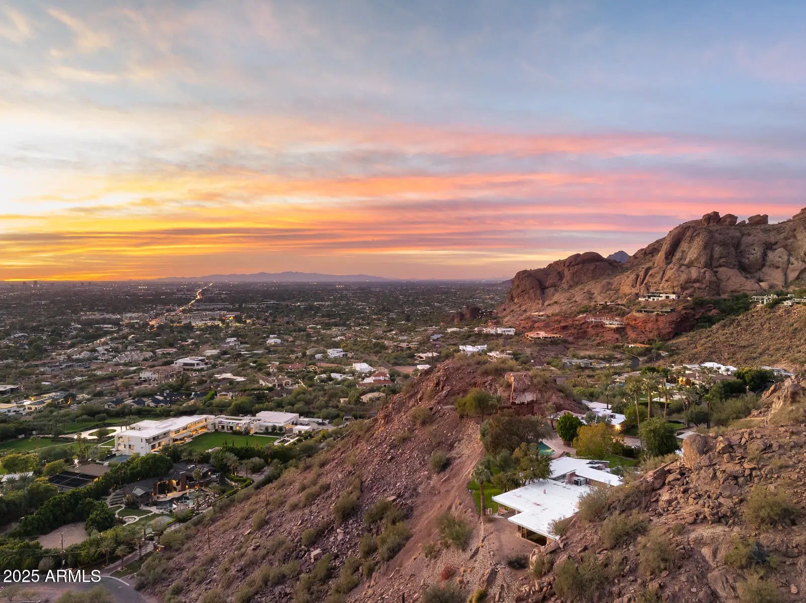 Iconic Camelback Mountain Estate: A Rare, Once-in-a-Lifetime Buildable Opportunity Perched on the slopes of the iconic Camelback Mountain, this extraordinary 23.66-acre estate represents one of the last and most significant buildable properties on the mountain. Offering more than 180 degrees of sweeping valley views—with Camelback's dramatic cliffs rising behind—the property is known throughout the community as the celebrated ''Merry Christmas House.'' Cherished by the same family for decades, it now awaits its next remarkable chapter. Beyond its architectural legacy, the property's 23.66 acres offer exceptional potential for future development, including the opportunity to subdivide into up to four parcels. Whether envisioning a family compound, multiple luxury estates, or reimagining the existing residence, the possibilities are unparalleled. Conceptual floorplan and site plan designs by renowned architect Mark Candelaria are also available to inspire your vision. Privately gated and surrounded by natural desert beauty, this estate combines unmatched privacy, panoramic vistas, and rare development flexibilityall just minutes from the heart of the city. Whether preserved, expanded, or completely transformed, this is a truly once-in-a-lifetime chance to own a piece of Arizona history on one of its most iconic mountain peaks.