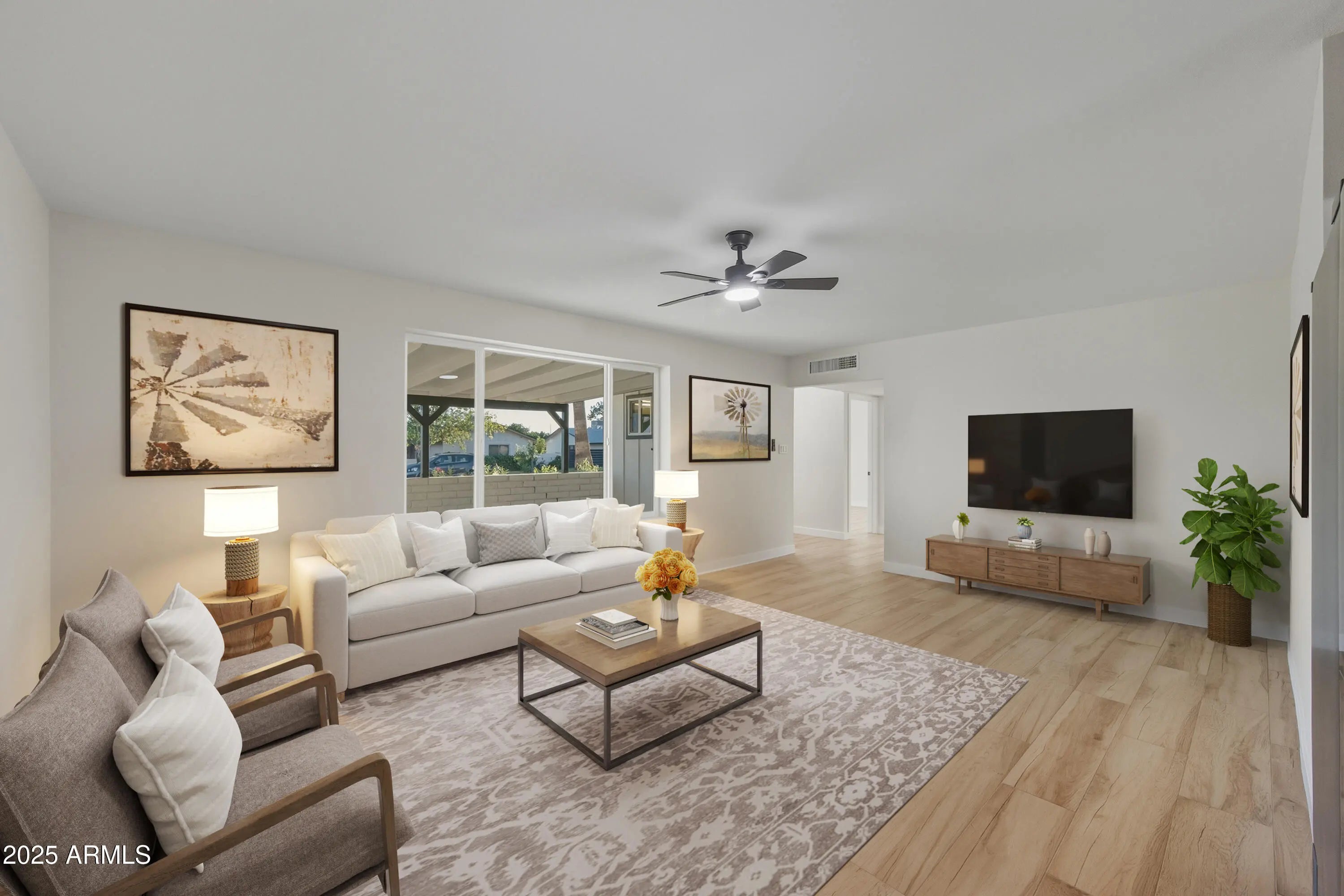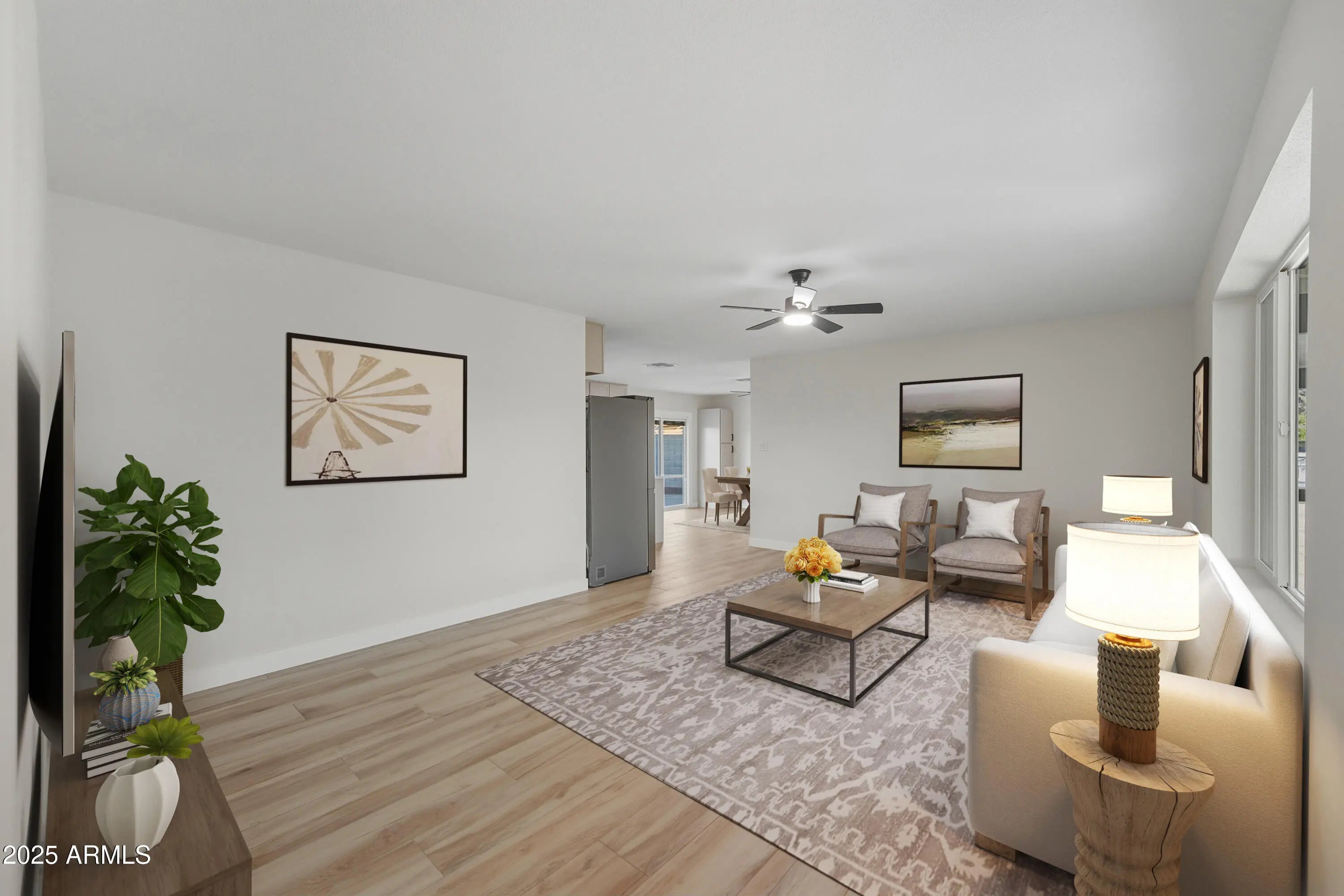 UPDATED SINGLE-LEVEL HOME WITH LARGE YARD & NO HOA! This well-built block home offers generous outdoor space in both front and back, giving you plenty of room to relax and entertain. Enjoy the convenience of an RV gate and extended covered patios perfect for outdoor living. Inside, the kitchen has been thoughtfully refreshed with quartz counters, modern cabinetry, stainless steel appliances, and warm wood-look tile flooring. Fresh interior and exterior paint, updated baseboards, and upgraded lighting create a bright, cohesive feel throughout. Ideally situated close to local schools, shopping, ASU West, and quick access to the I-17, this home combines comfort, functionality, and a fantastic location — all without an HOA!