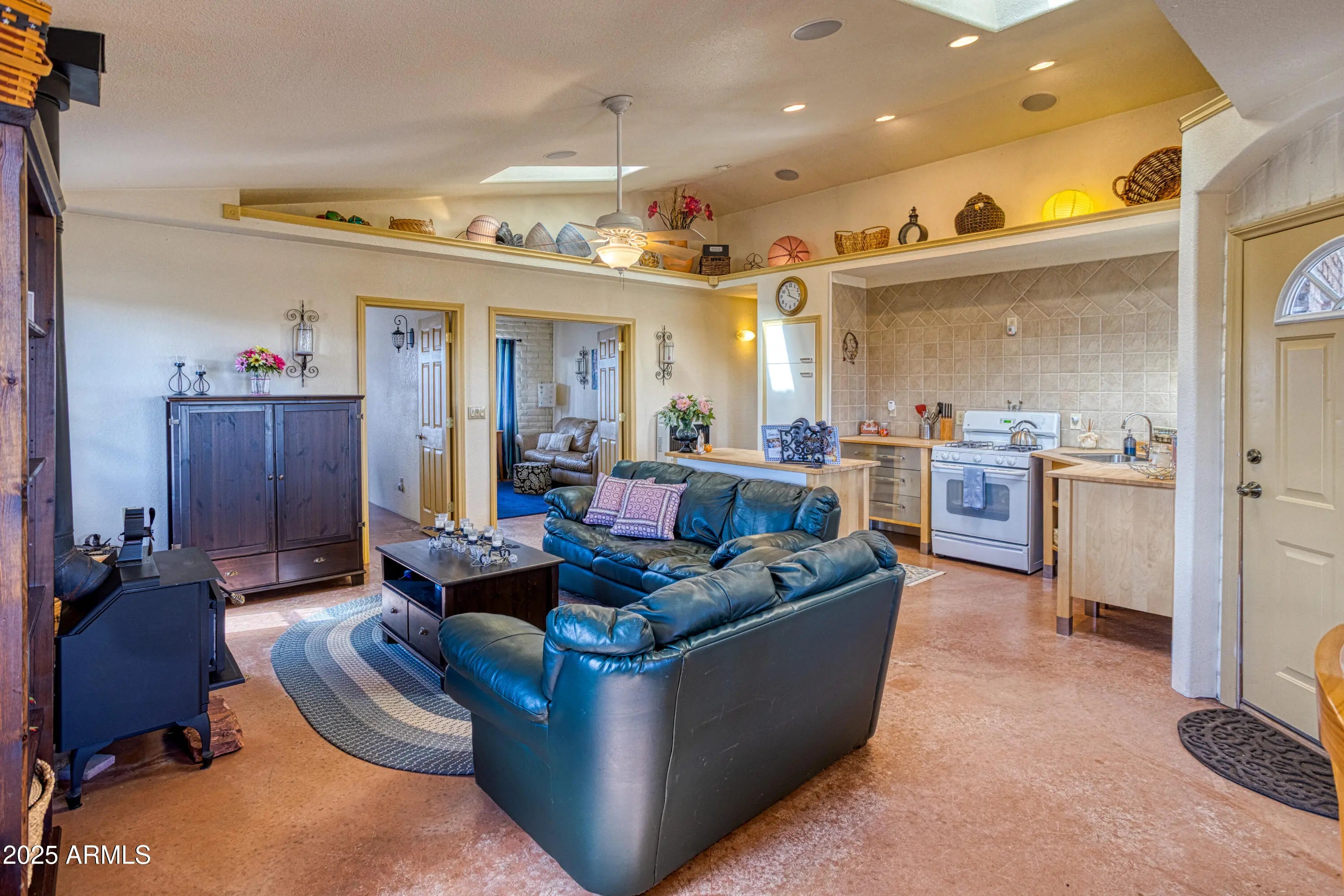 Living off the grid is not what it used to be. This home has all the amenities with almost 9 Acers of panoramic views! Let's start with this! IT'S FULLY FURNISHED. Beds, tables, chairs, down to the forks, knives and spoons! Each bedroom has wonderful natural lighting. The owners suite has an Arcadia door out to the serine porch, where the sunsets are breathtaking. The kids can throw their boots off in the mud/utility room before they enter the house and warm their hands by the wood stove in the living room. Not warm enough? You can rely on the wall heaters for an extra toasty evening. The kitchen has plenty of elbow room for baking or feeding the family, and the living room is great for games and family fun. Internet? We got you covered, Starlink, the connection is as strong as if you lived in the Valley. Electric? We have a 16k watt Diesel generator that will power a 2400sf. home. Shower, Dishes, Laundry? We have (2) 1500 gallon water tanks full of rain water and Hauled water for drinking is very inexpensive... This home is perfect for the one who seek privacy in style.