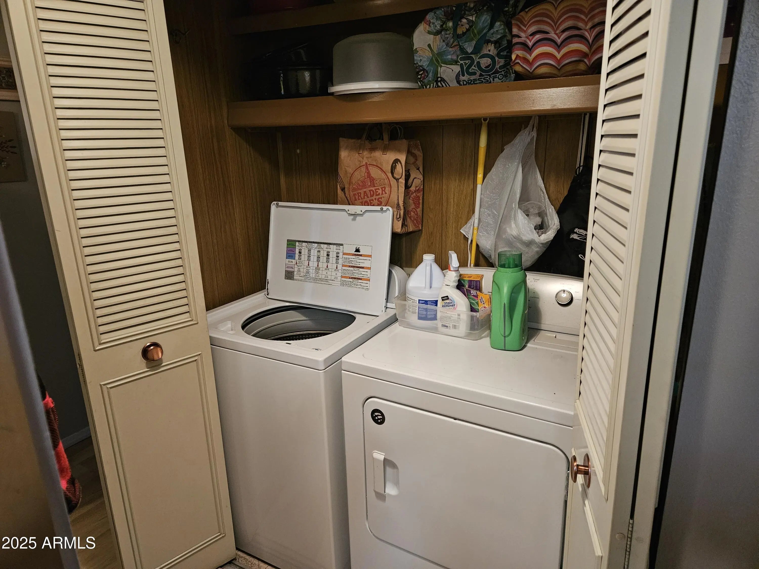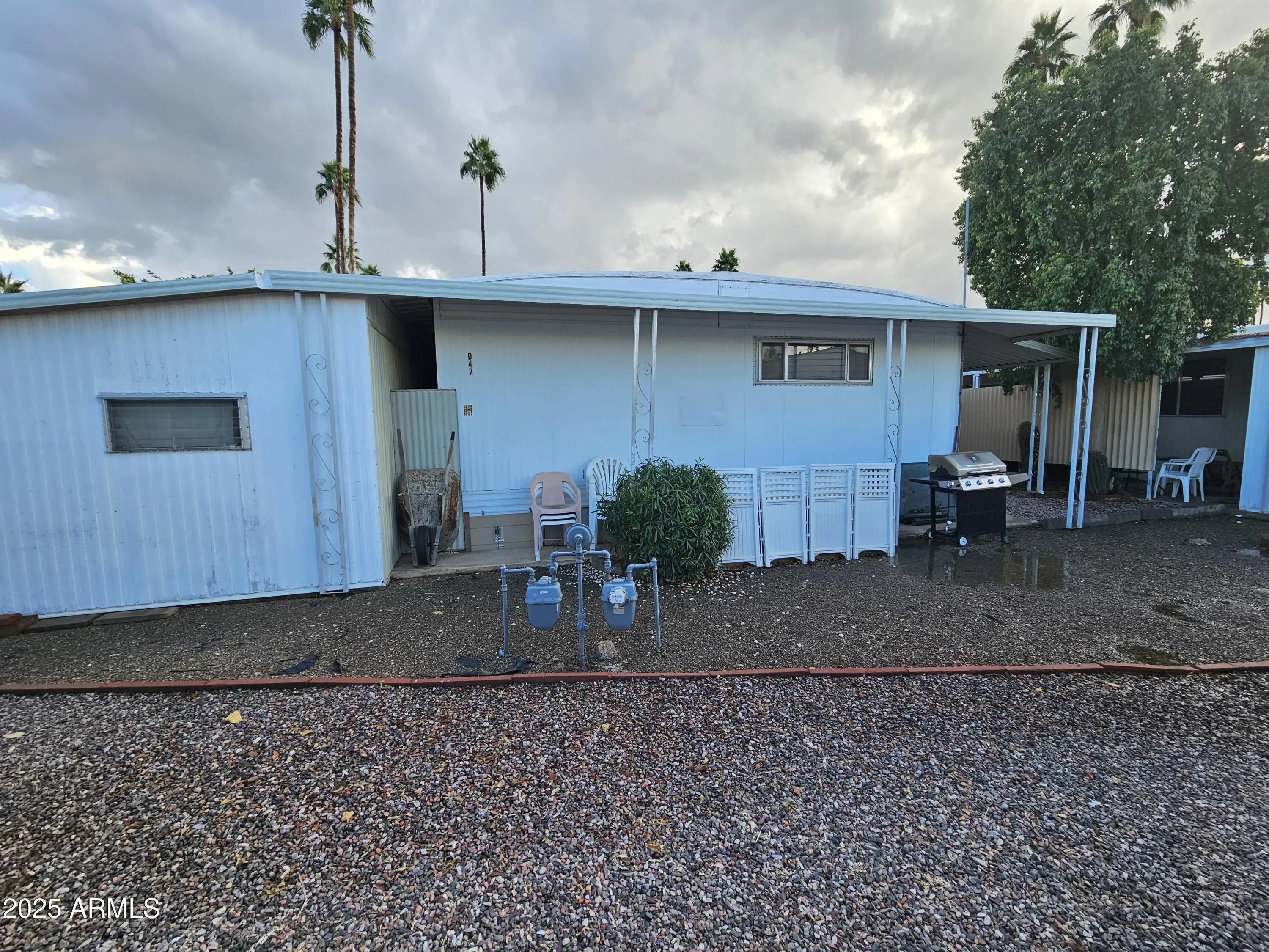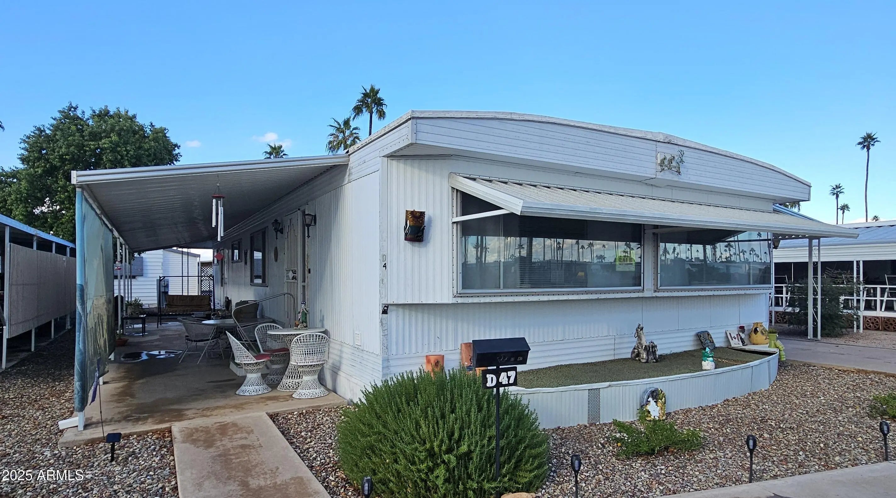 Southwest Delight. This fully furnished home is perfect for any seasonal visitor or for any full-time resident wanting to just simplify. It boasts a spacious and comfortable living space, a well-appointed kitchen with an open peninsula, in home washer and dryer, and an absolutely tremendous amount of storage. The primary bedroom has a full-length wall closet and an additional walk-in closet just off the ensuite bath. There is an attached workshop/storage unit with a utility sink. Situated in a 55+ gated community, this home offers convenience to all the park amenities. Come see compare and grab this bargain.