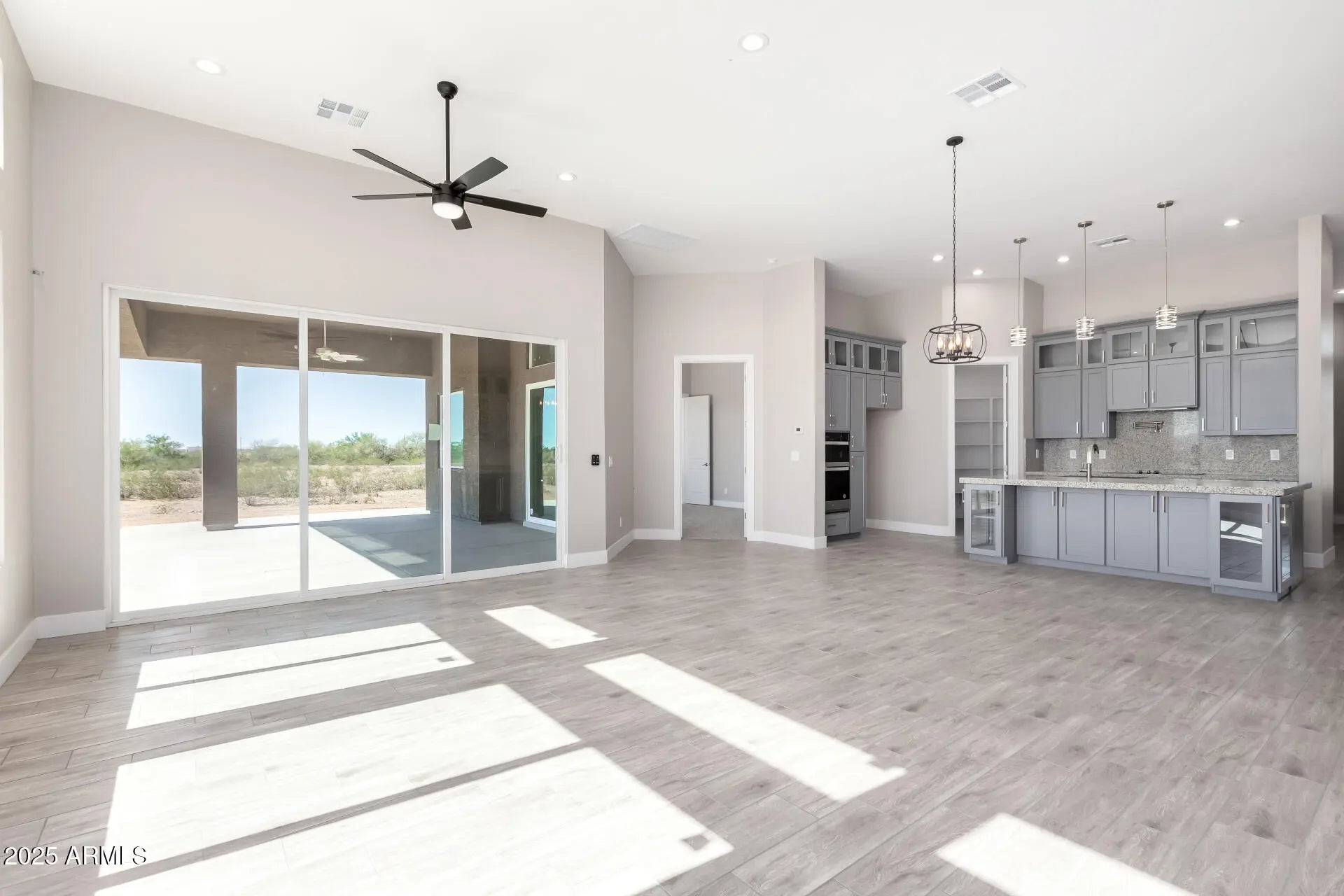 Fantastic opportunity to own this gorgeous new home on a sprawling 1-acre horse property! You're welcomed by a sleek design boasting a 3-car garage & an inviting front patio. Fall in love w/ the stunning open layout w/ soaring ceilings, abundant natural light, & attractive wood-look flooring. The impeccable kitchen comes w/ granite counters w/ a matching backsplash, pendant/recessed lighting, ample shaker cabinets, high-end stainless steel appliances, a walk-in pantry, & a large island w/ a breakfast bar. The tranquil primary suite boasts soft carpeting, convenient sliding door access to the backyard, a private bathroom w/ a soaking tub, & a walk-in closet. Imagine serene evenings in the expansive backyard, offering a covered patio & majestic mountain views. Make this gem yours today!