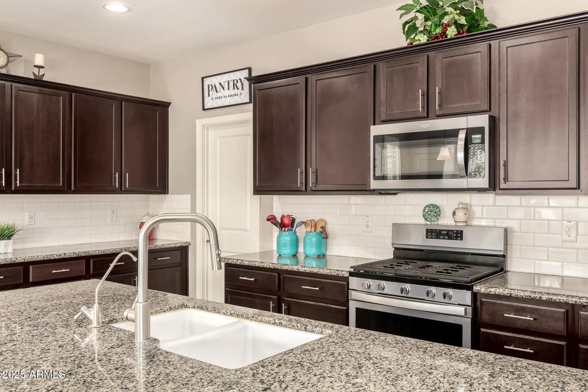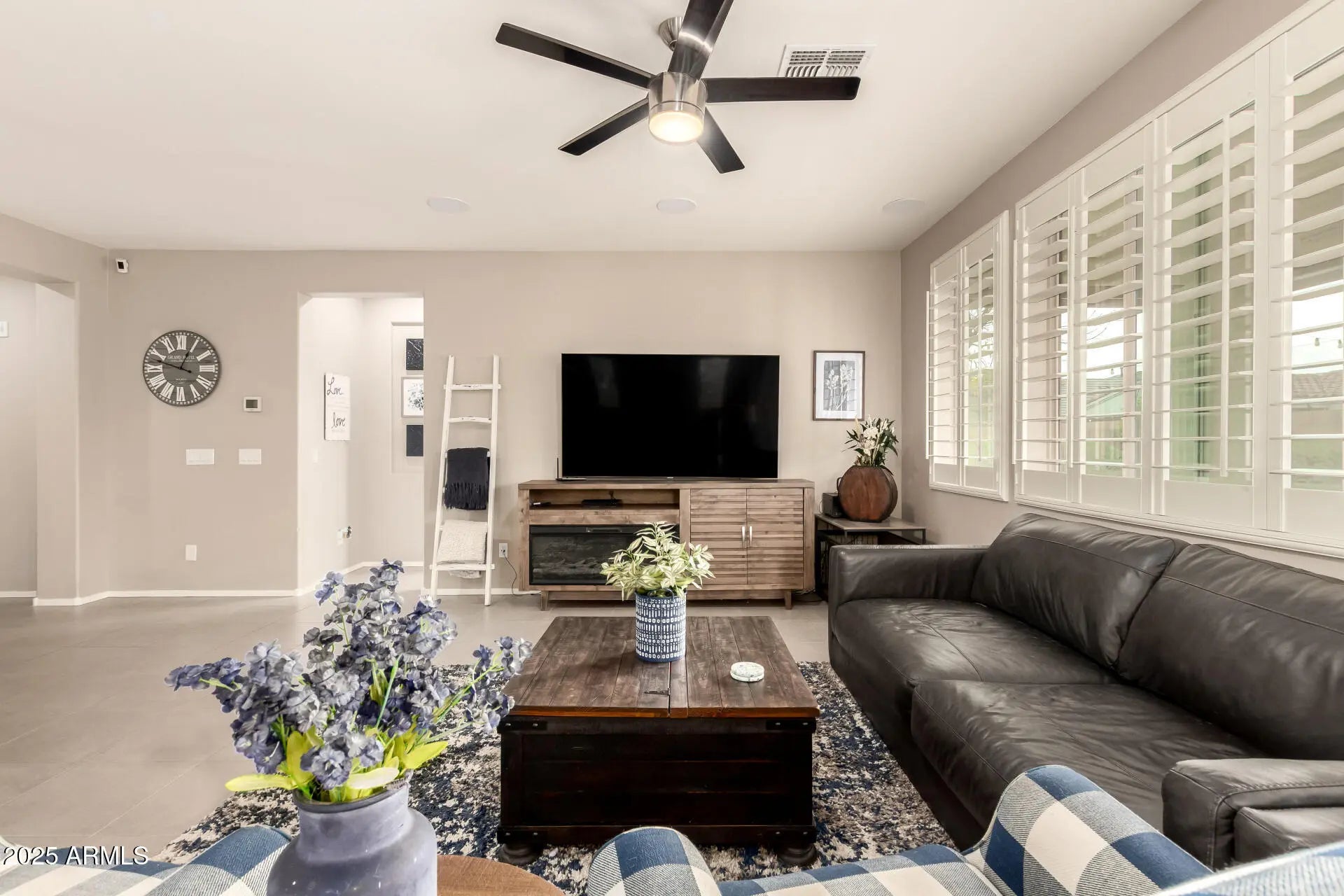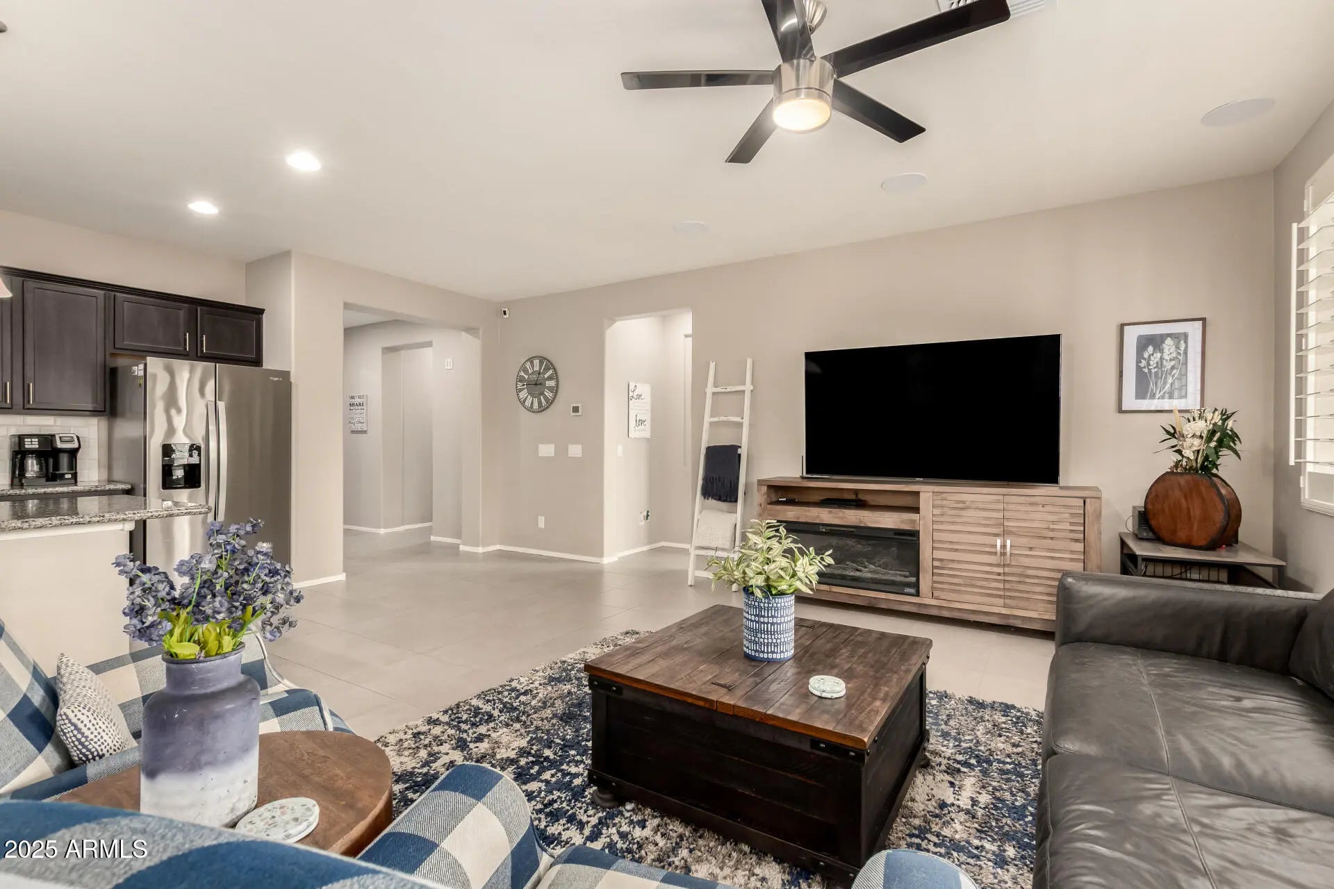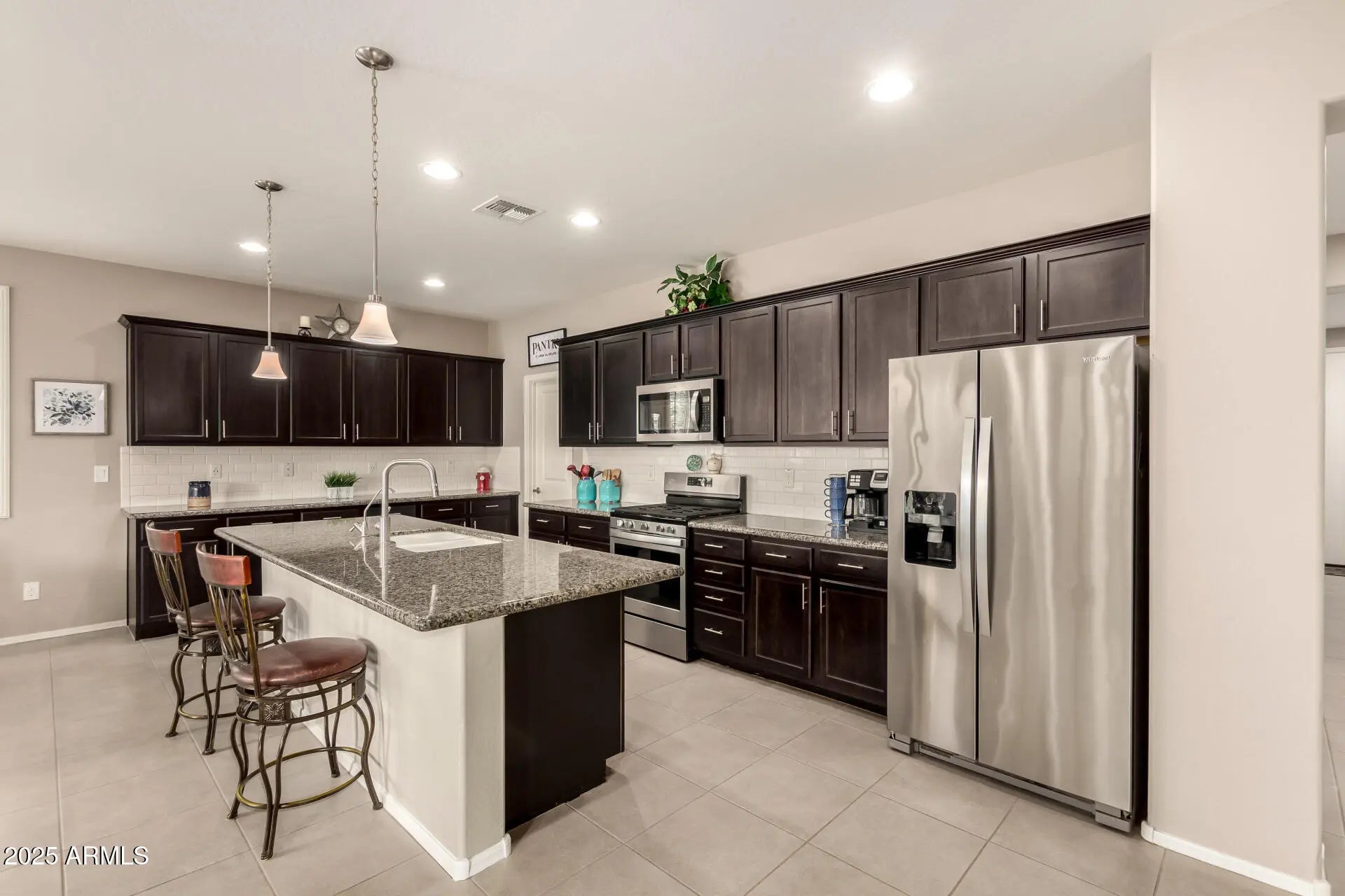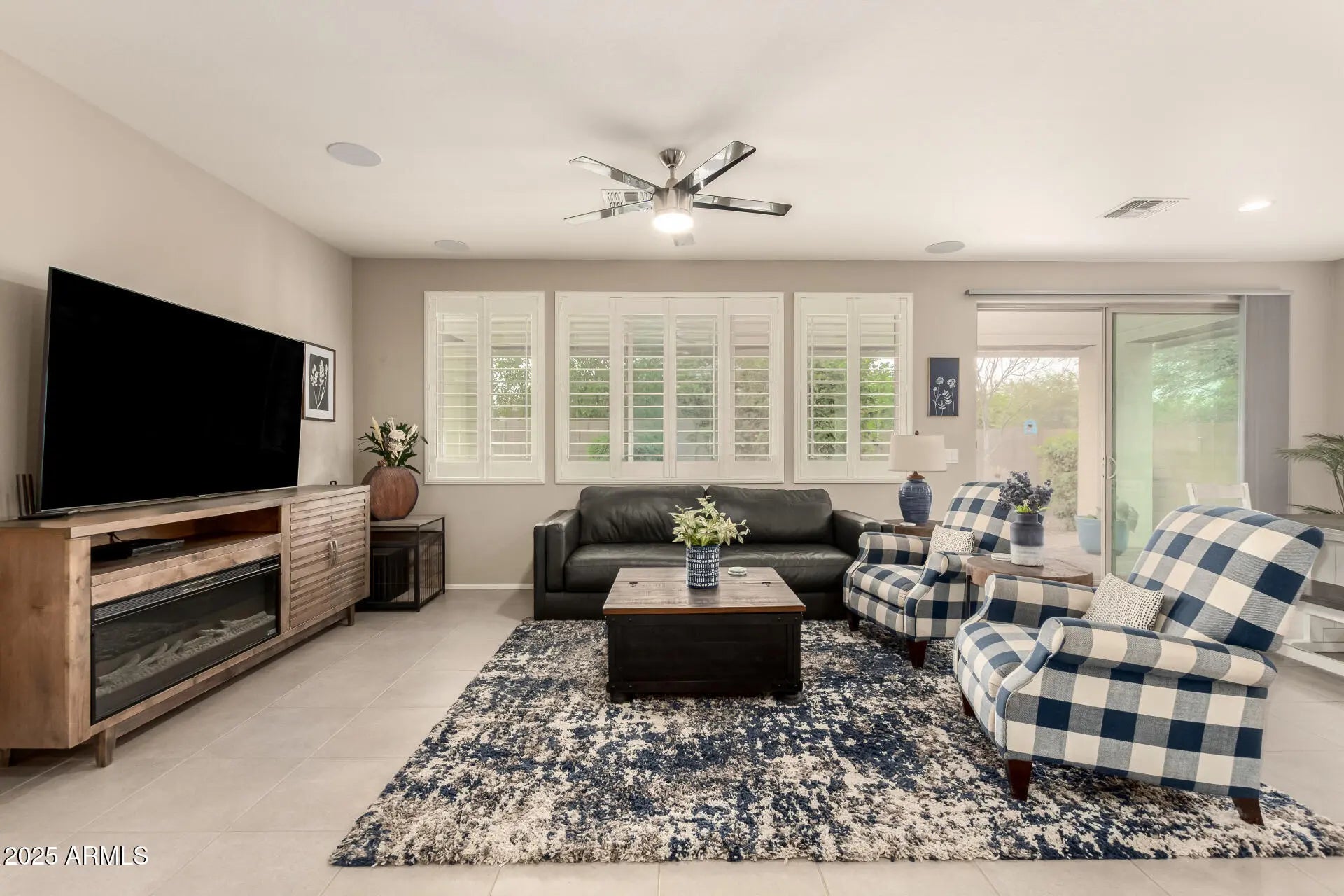 Home, sweet home! Nestled in a desirable corner lot next to a park, and a short walk to the community pool, main park and garden. Step inside to explore the sizable living spaces with tile flooring, high-efficiency windows throughout with plantation shutters, while the surround system in the living room creates the perfect opportunity for entertaining, plus the stereo and base station can convey. The gourmet kitchen boasts ample recessed lighting, cabinetry adorned with crown molding, subway tile backsplash, granite countertops, a large walk-in pantry and an island with a breakfast bar for those quick meals and casual conversations. SS appliances and R/O system at the sink and fridge. The tranquil main bedroom hosts a bathroom with double sinks for convenience and a walk-in closet for easy organization. Both spacious bathrooms feature a porcelain countertop, while every room has a walk-in closet for added storage. High-efficiency A/C and ceiling fans in every room, as well as a gas tankless water heater to keep the temperature just right year-round. The whole home has a water filtration system and a water softener. You'll find several smart wall switches and timers, as well as USB outlets in each room. Let's not forget the 7-camera ring surveillance system for peace of mind (5 outdoors, 2 indoors). The bonus room can be used as a gym, and the flooring can convey. Step outside to your relaxing backyard, complete with a large covered patio with well-laid pavers where you can enjoy your morning brew and dine al fresco with the lovely view of the park, a water feature with refill valve, a full-patio misting system, retractable sunshades, wired landscaping lighting, raised garden beds with irrigation and timers, a fully mature lemon tree, an infant peach tree, and shade trees that create the coziest vibe. The 2-car garage features a 240V hookup for EV charger, metal cabinets, and an overhead rack for extra storage, a work bench, plenty of wall-mounted utility hangers, an overhead kayak storage rack, and a Genie smart garage door opener. SO many features you will just LOVE! Hurry up, this gem won't last!